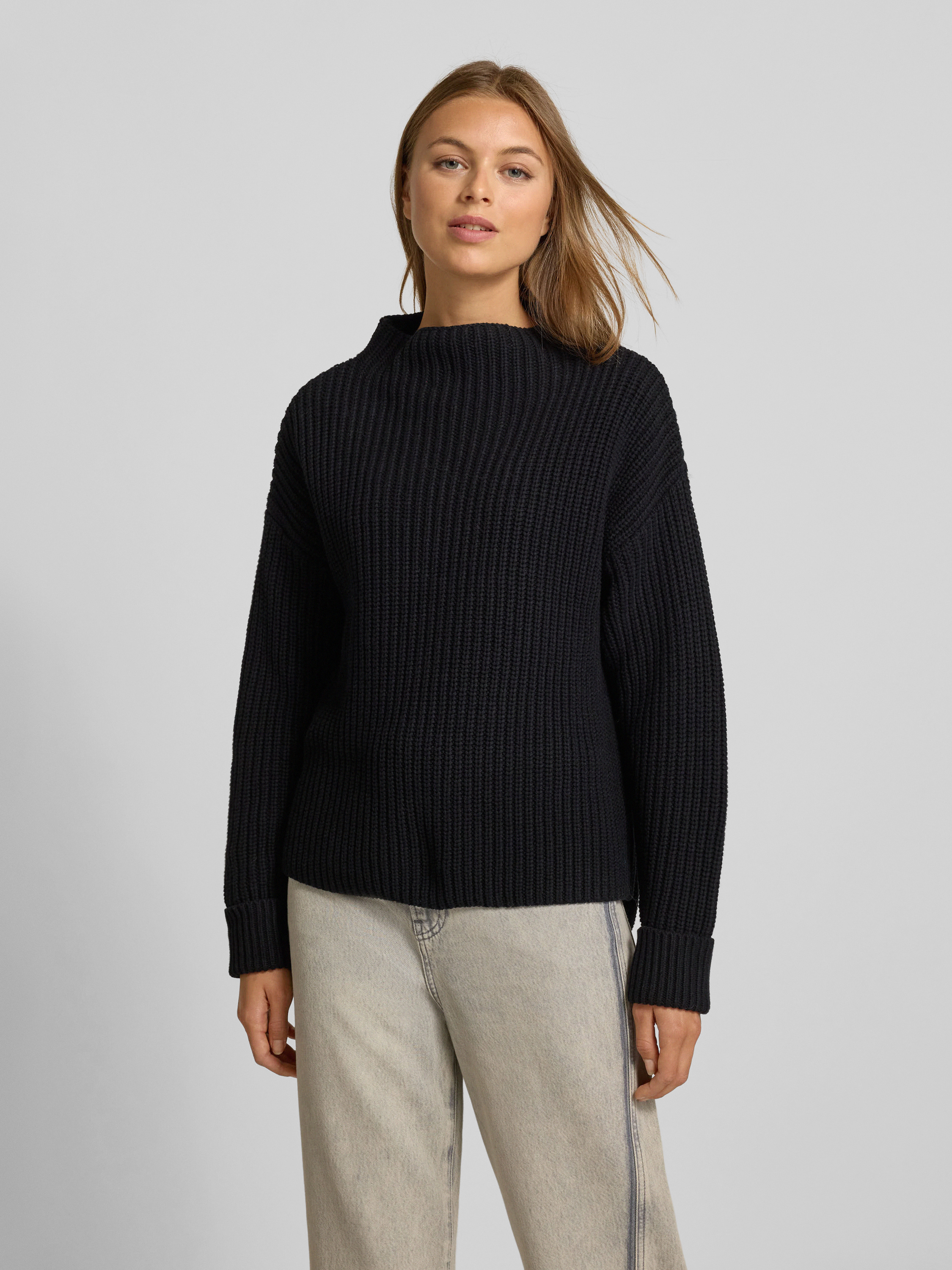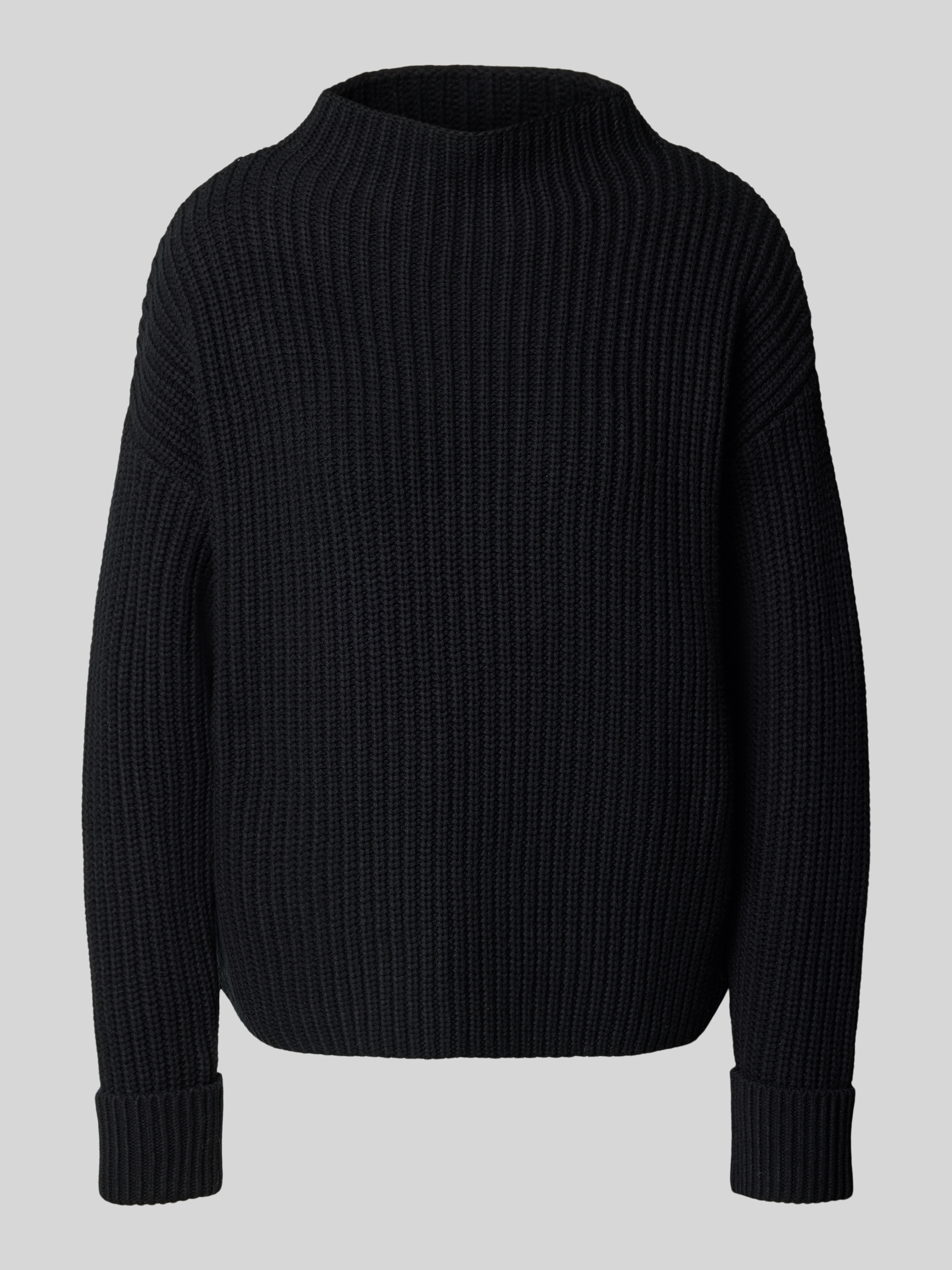 Sweter z dzianiny o kroju regular fit z mieszanki bawełny model ‘SELMA’ - czarny
