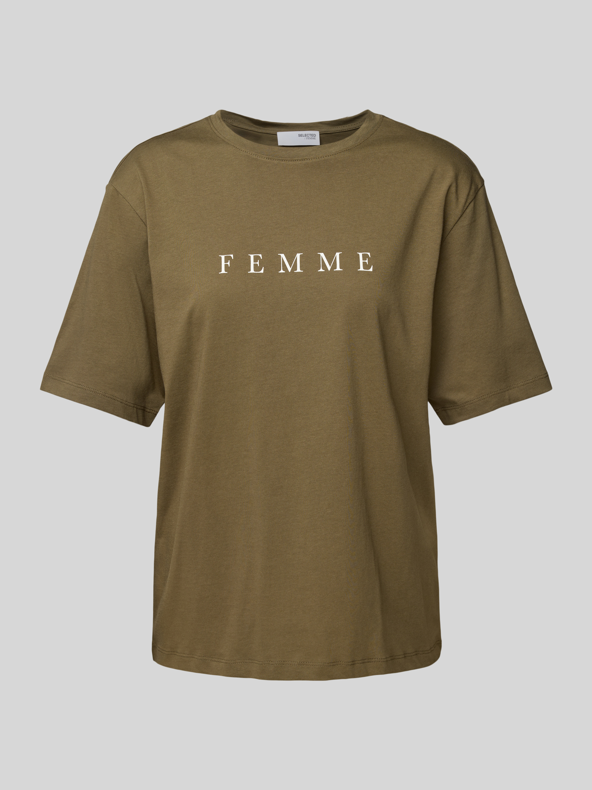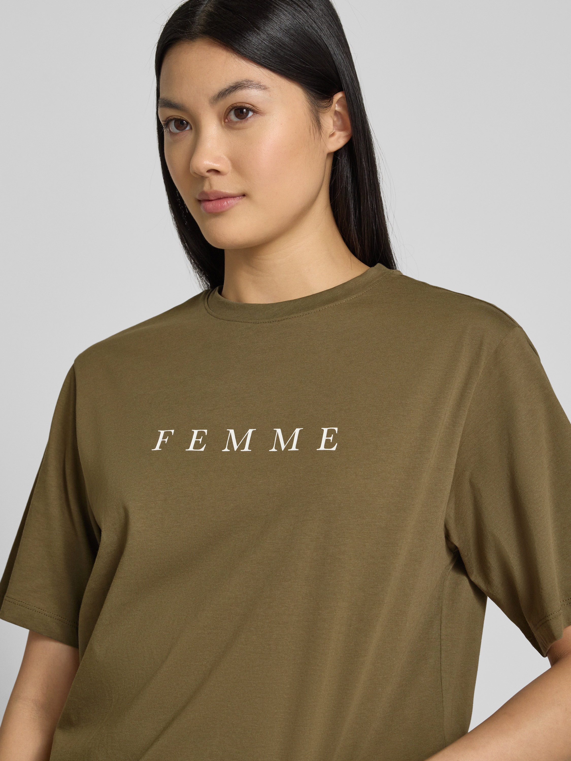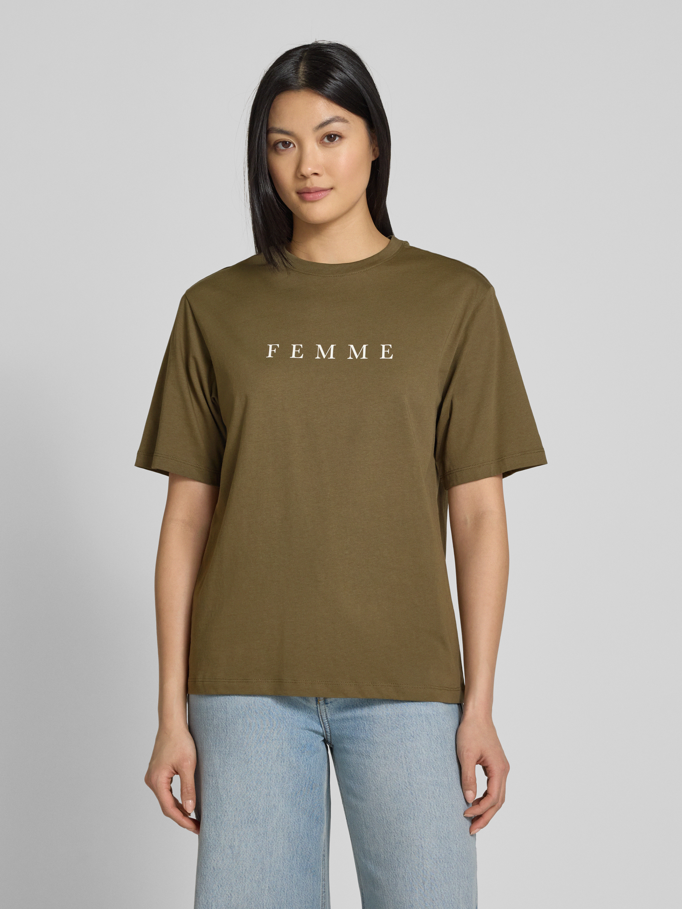 T-shirt o kroju oversized z nadrukiem z logo model ‘VILJA’ - oliwkowy