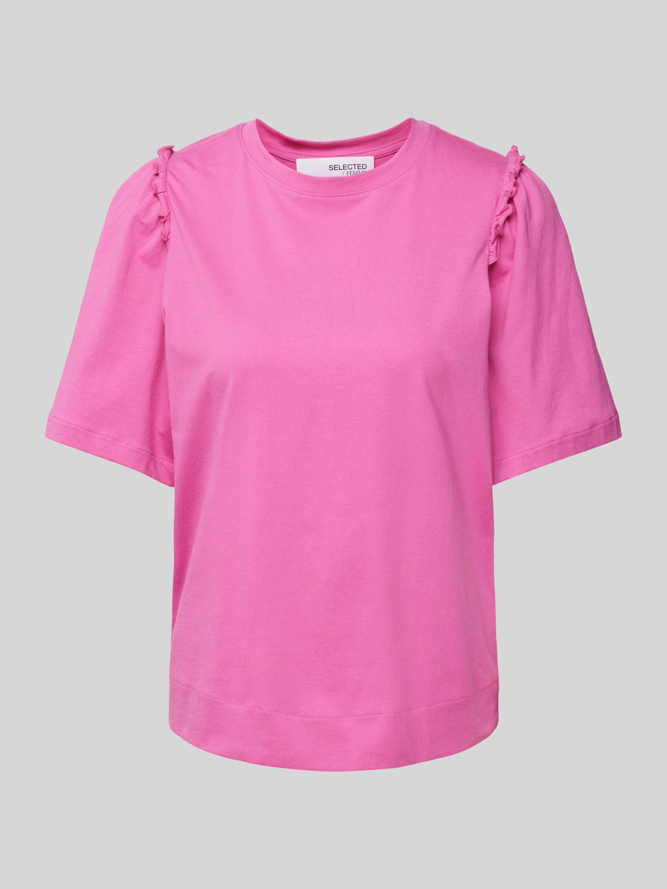 T-shirt w jednolitym kolorze model ‘PENELOPE’ - mocnoróżowy