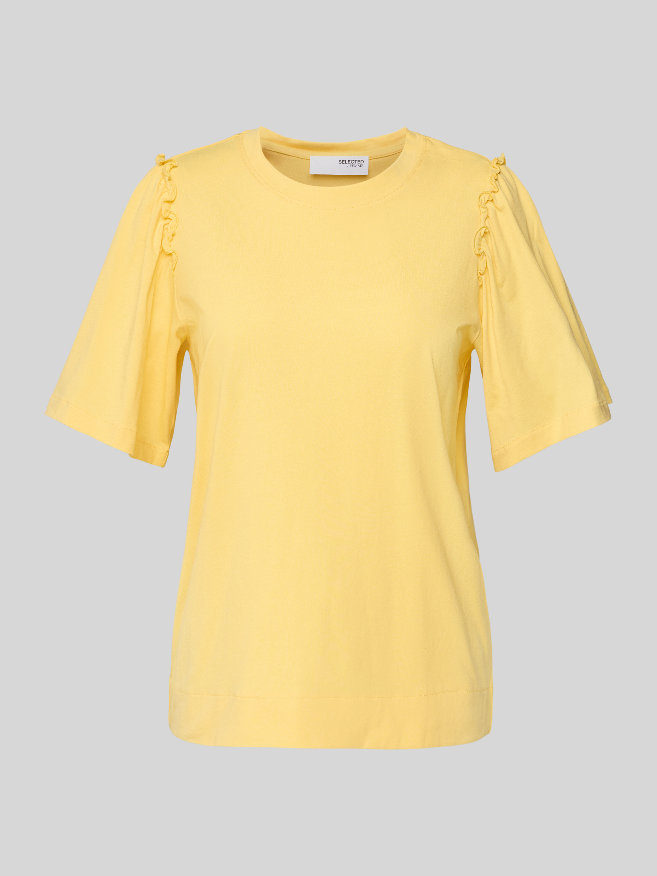 T-shirt z marszczeniami model ‘PENELOPE’ - żółty