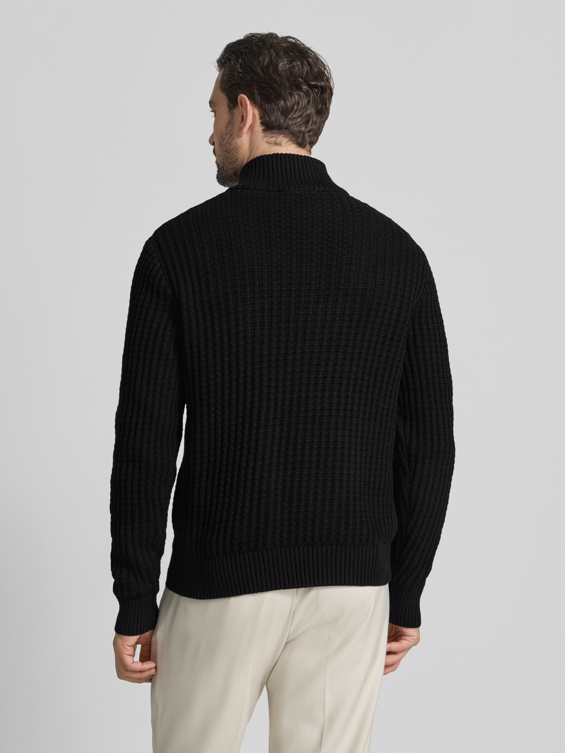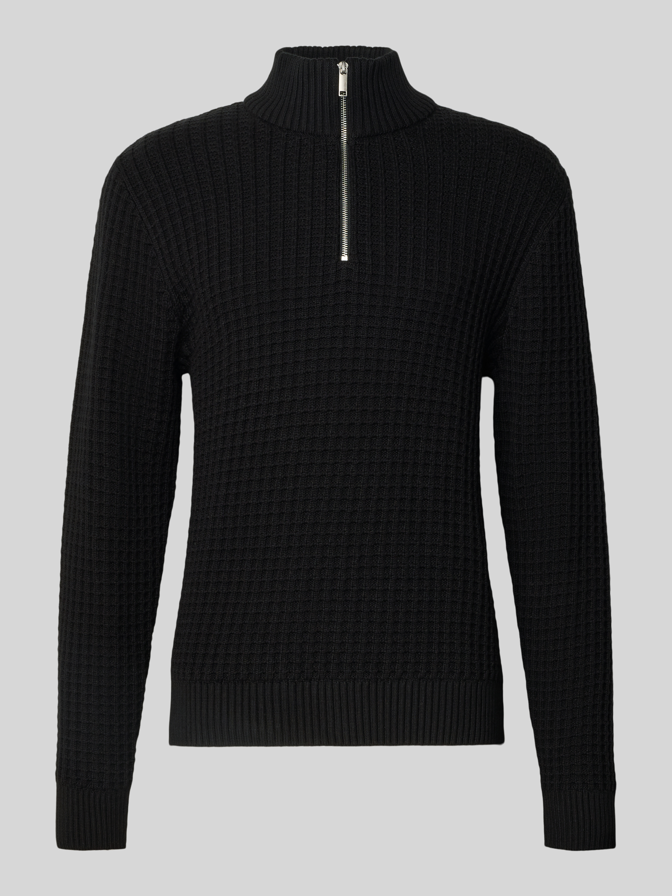 Bluza o kroju regular fit z kołnierzem i fakturą wafla model ‘TOM’ - czarny