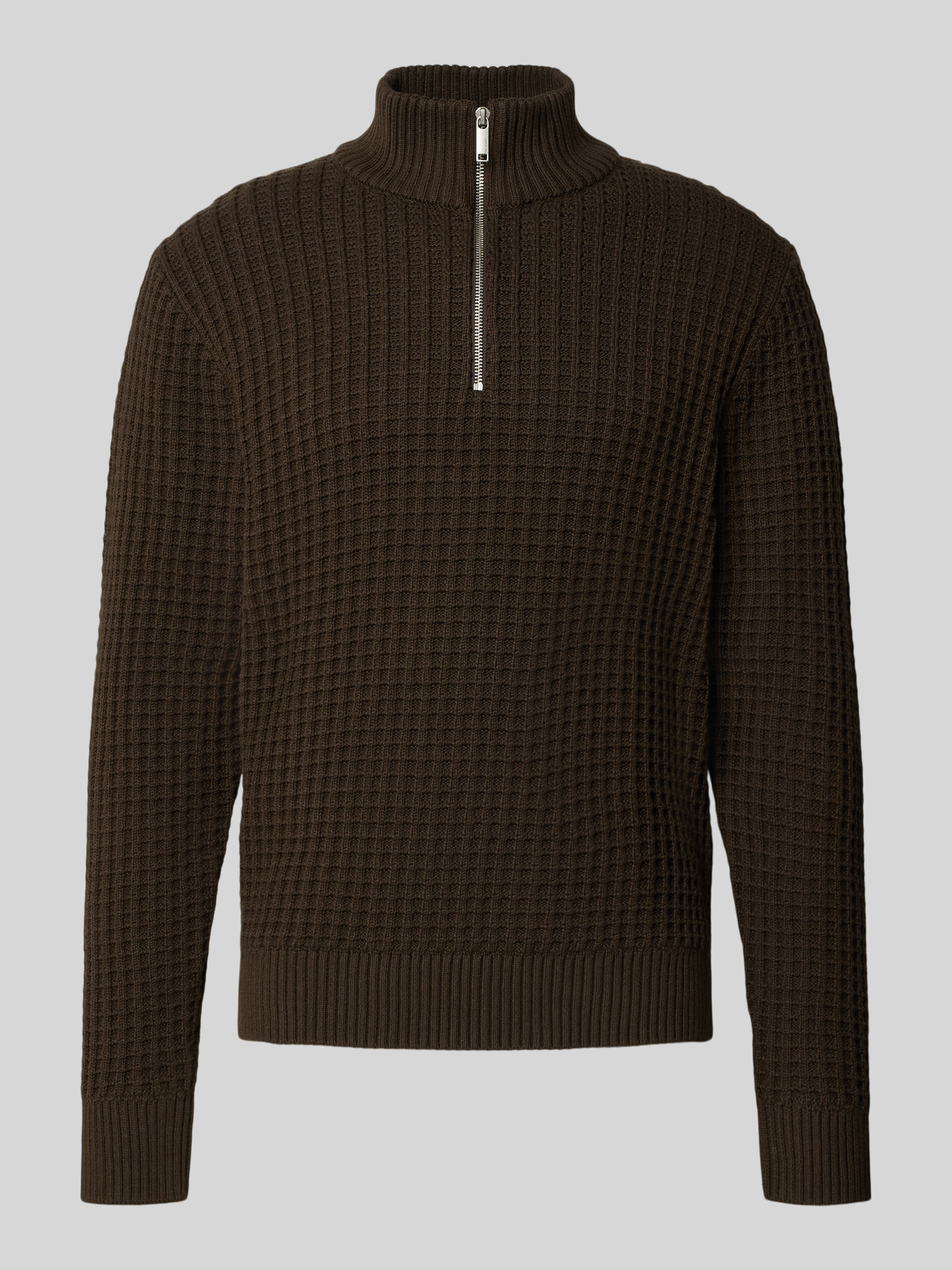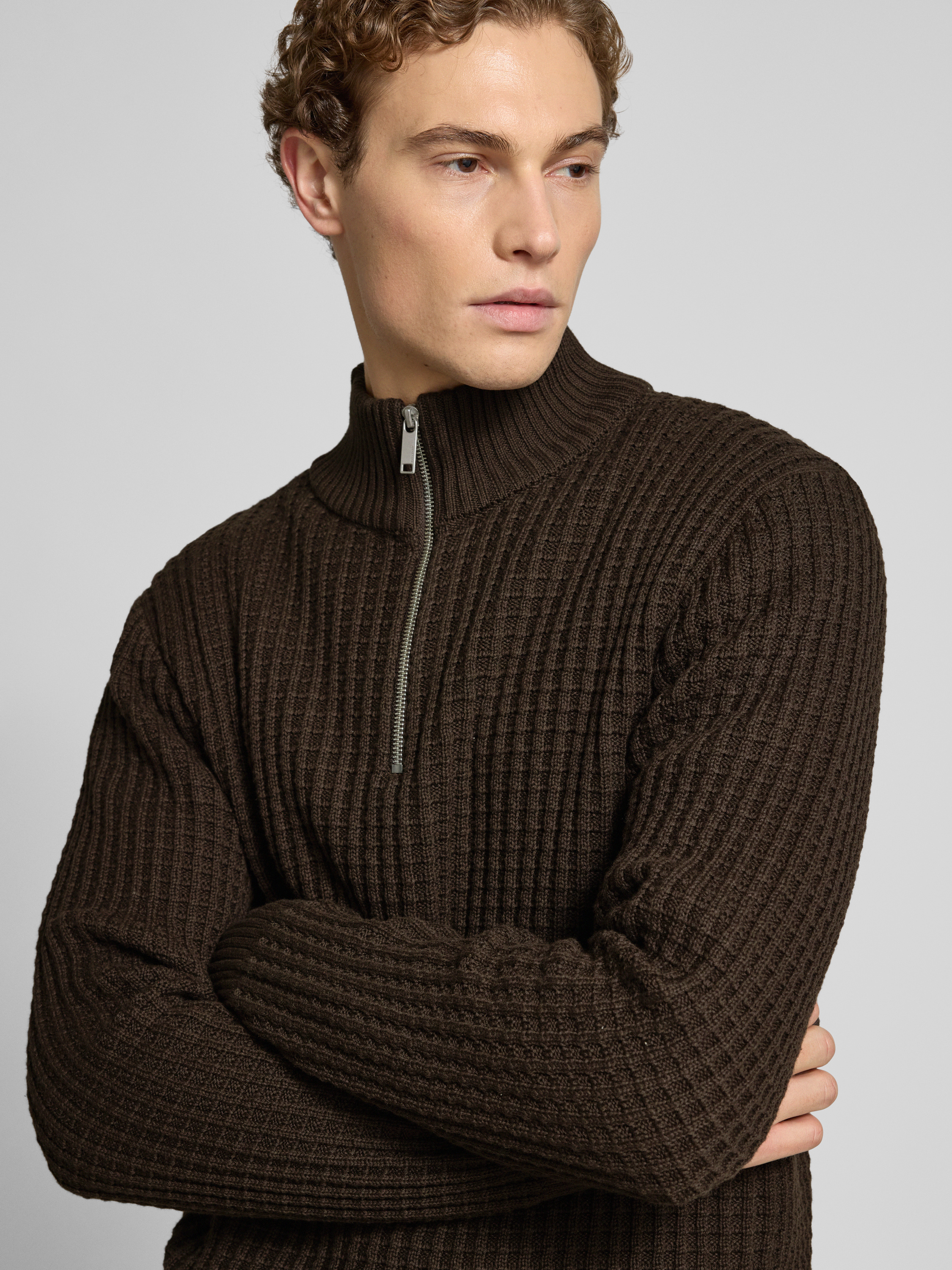 Bluza o kroju regular fit z kołnierzem i fakturą wafla model ‘TOM’ - czekoladowy