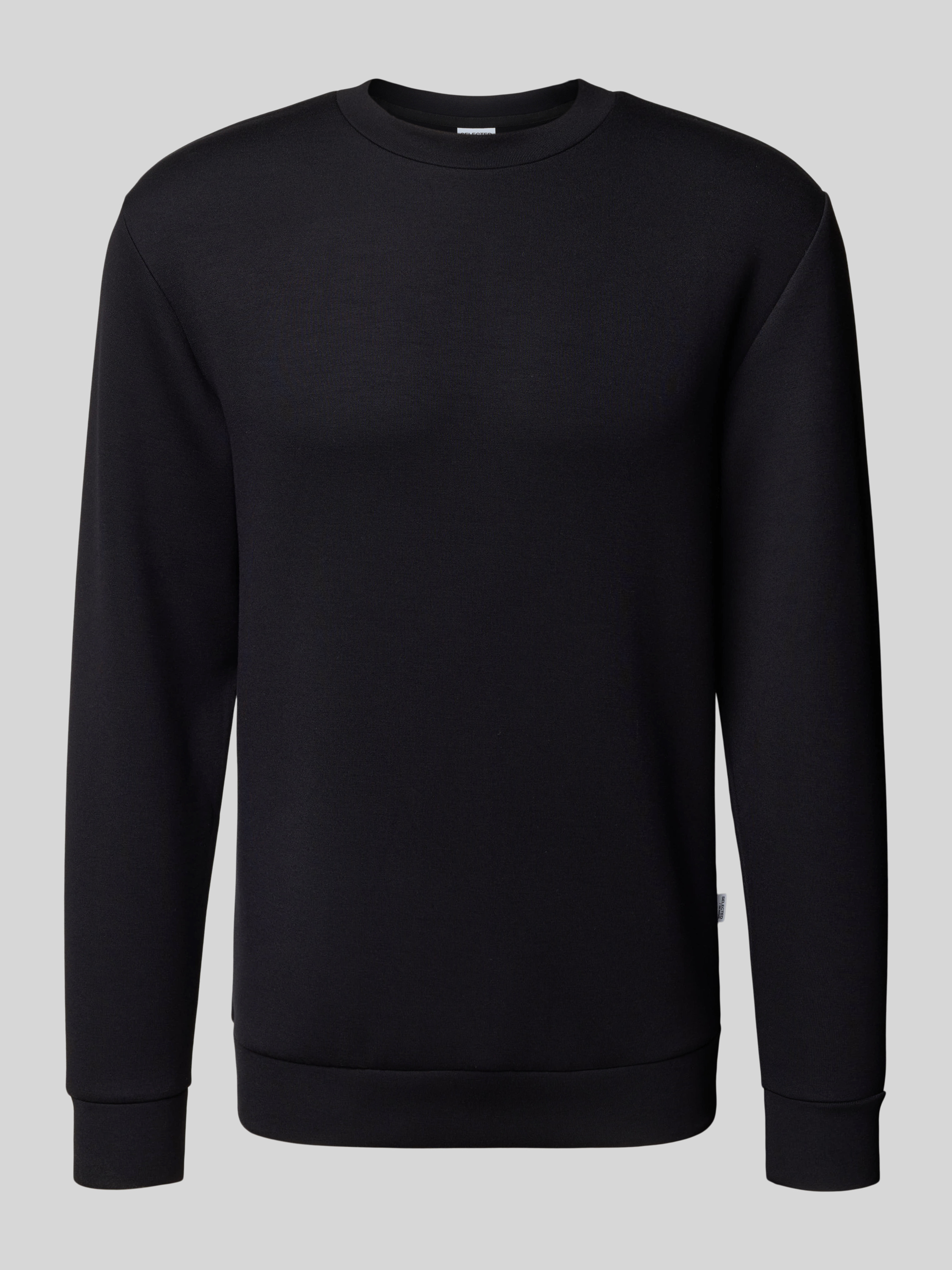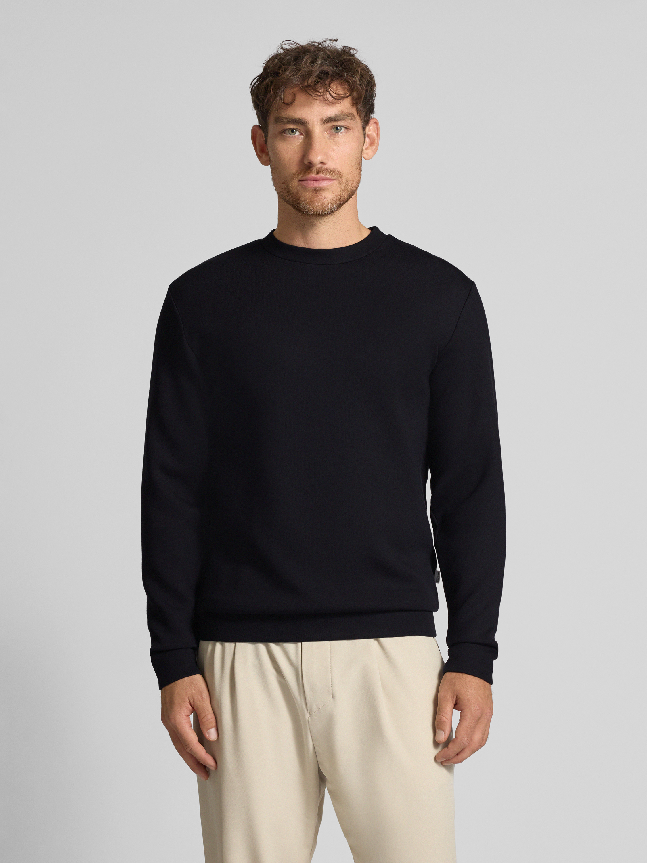 Bluzka z długim rękawem o kroju regular fit z mieszanki wiskozy z długim rękawem i golfem model ‘EMANUEL’ - czarny