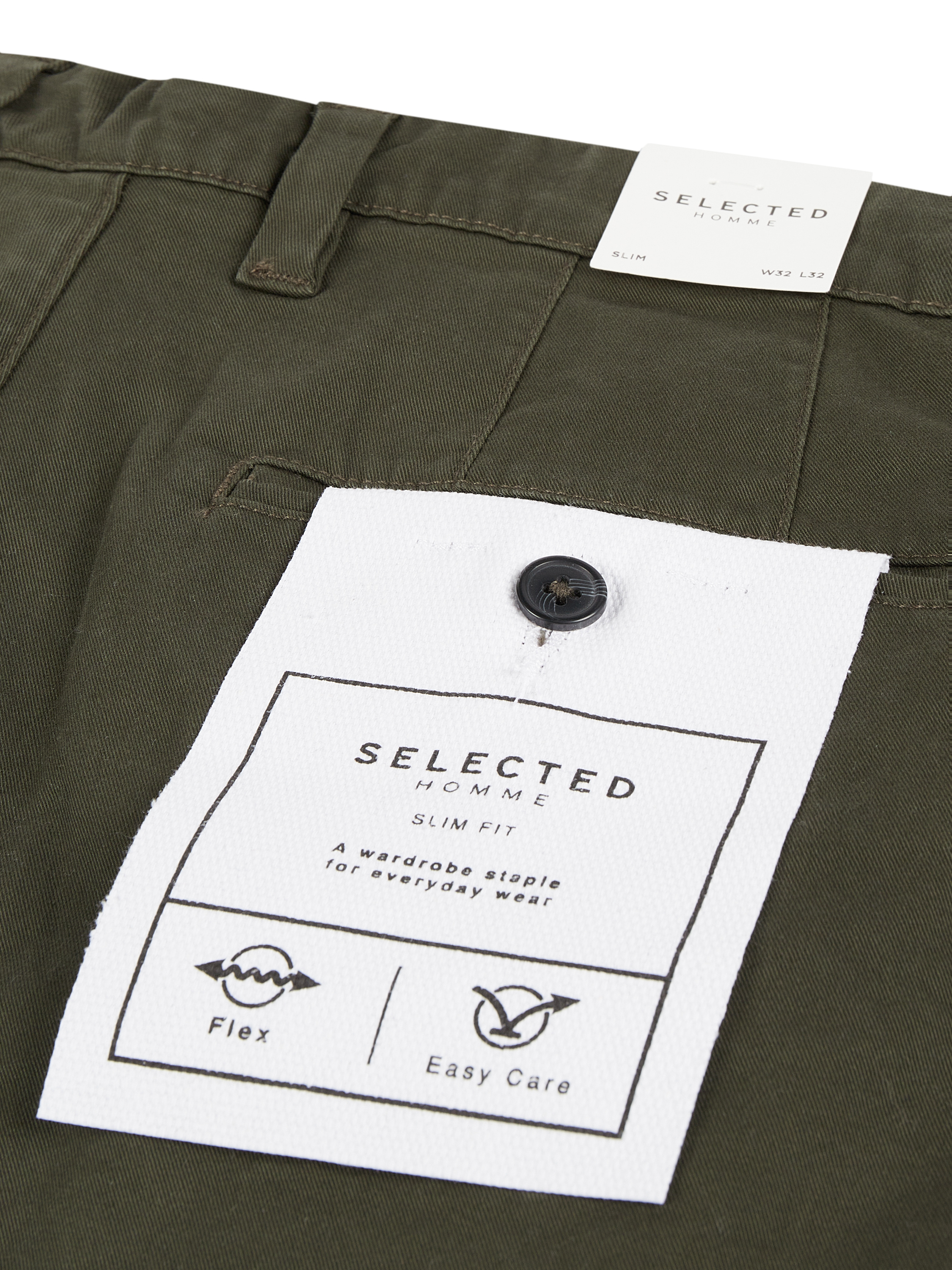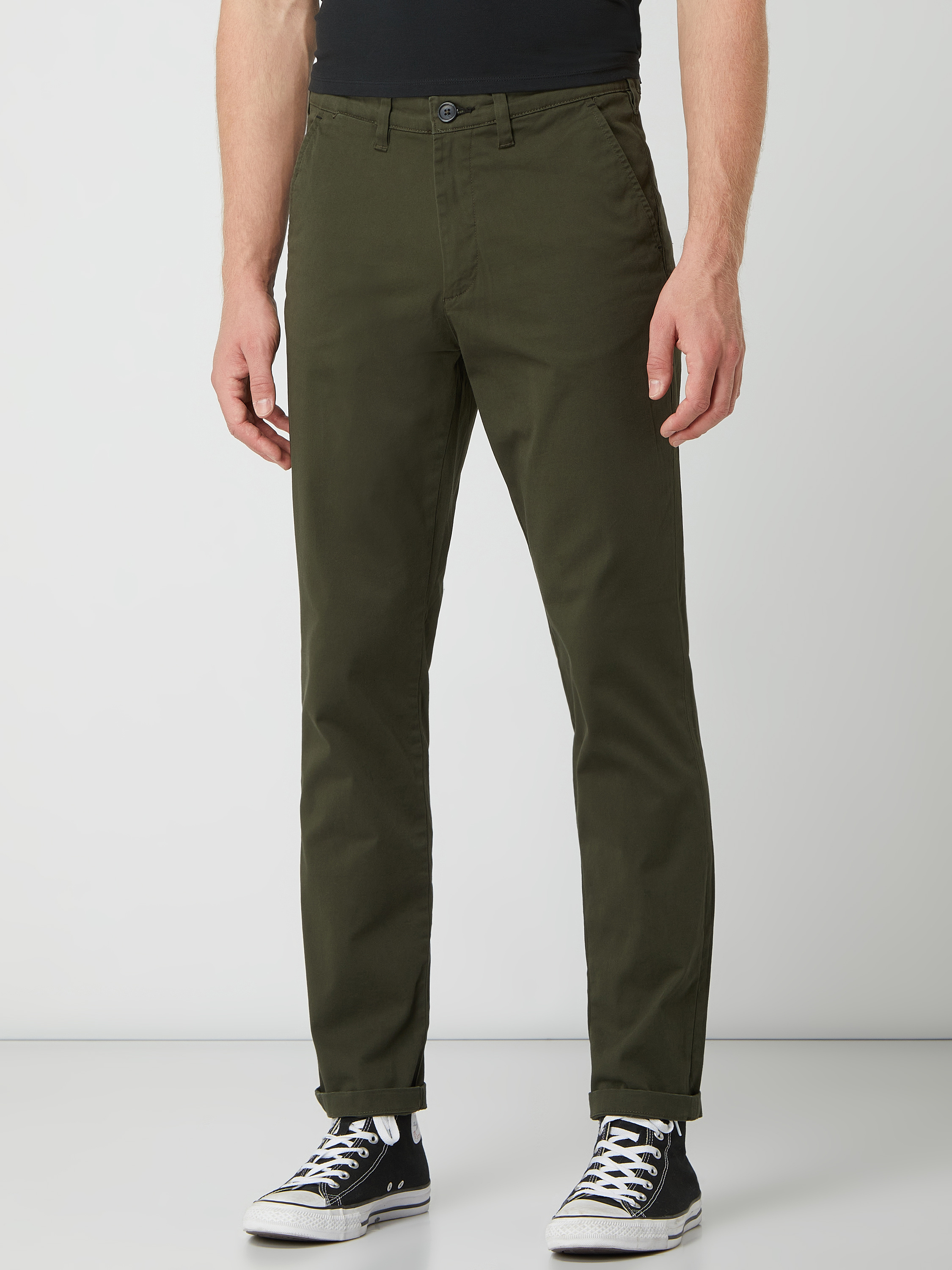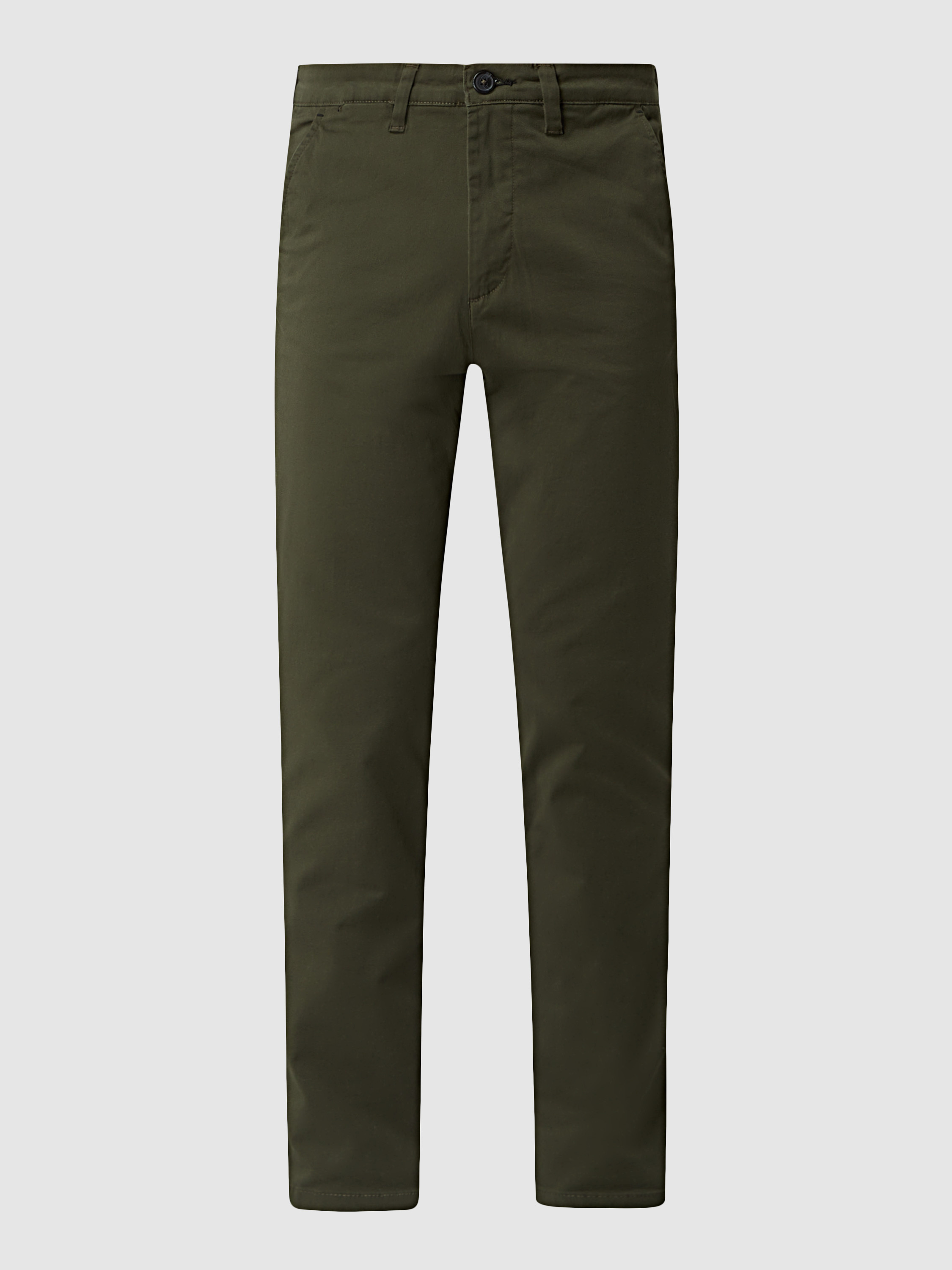Chinosy o kroju slim fit z bawełną ekologiczną model ‘Miles’ - oliwkowy
