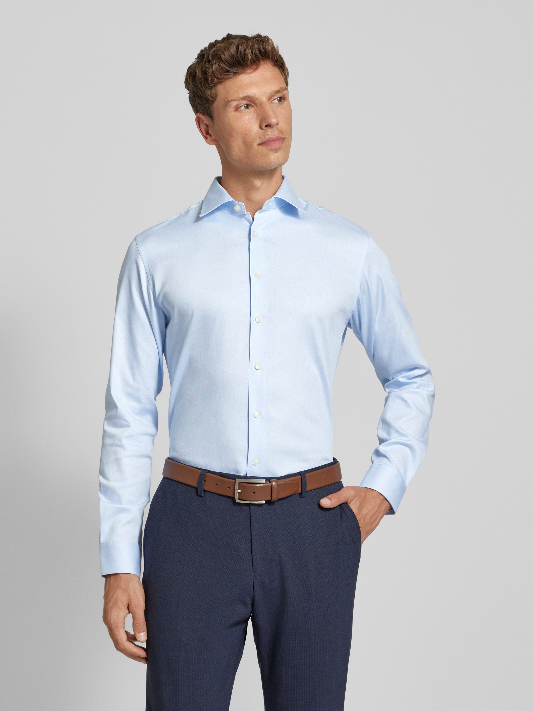 Koszula biznesowa o kroju slim fit z kołnierzykiem typu kent - błękitny
