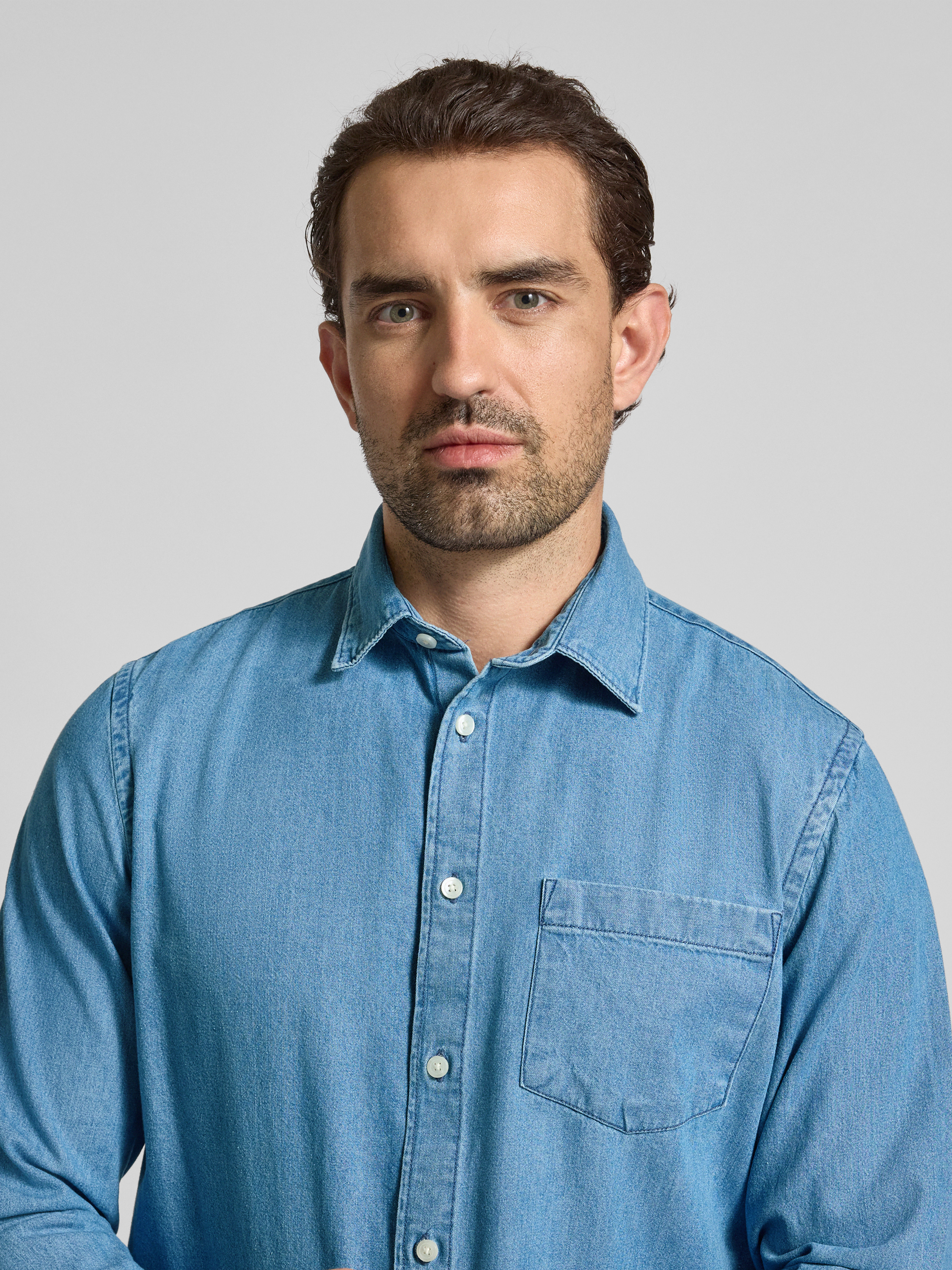 Koszula jeansowa o kroju regular fit z czystej bawełny model ‘REGCARLO’ - jeansowy niebieski