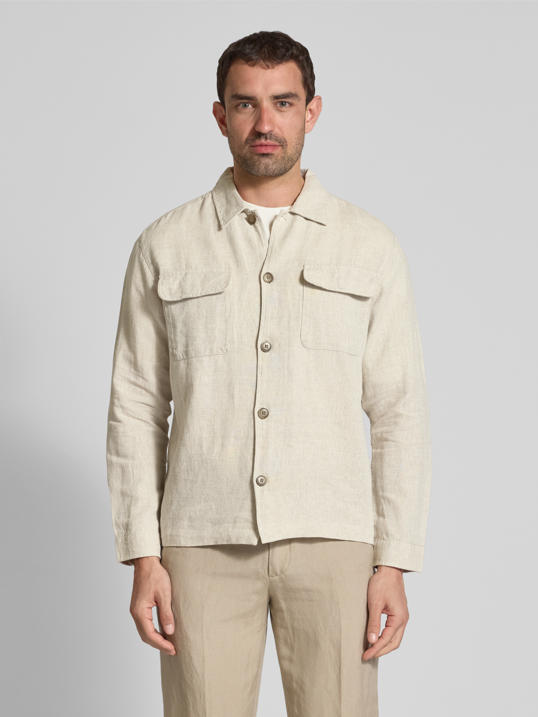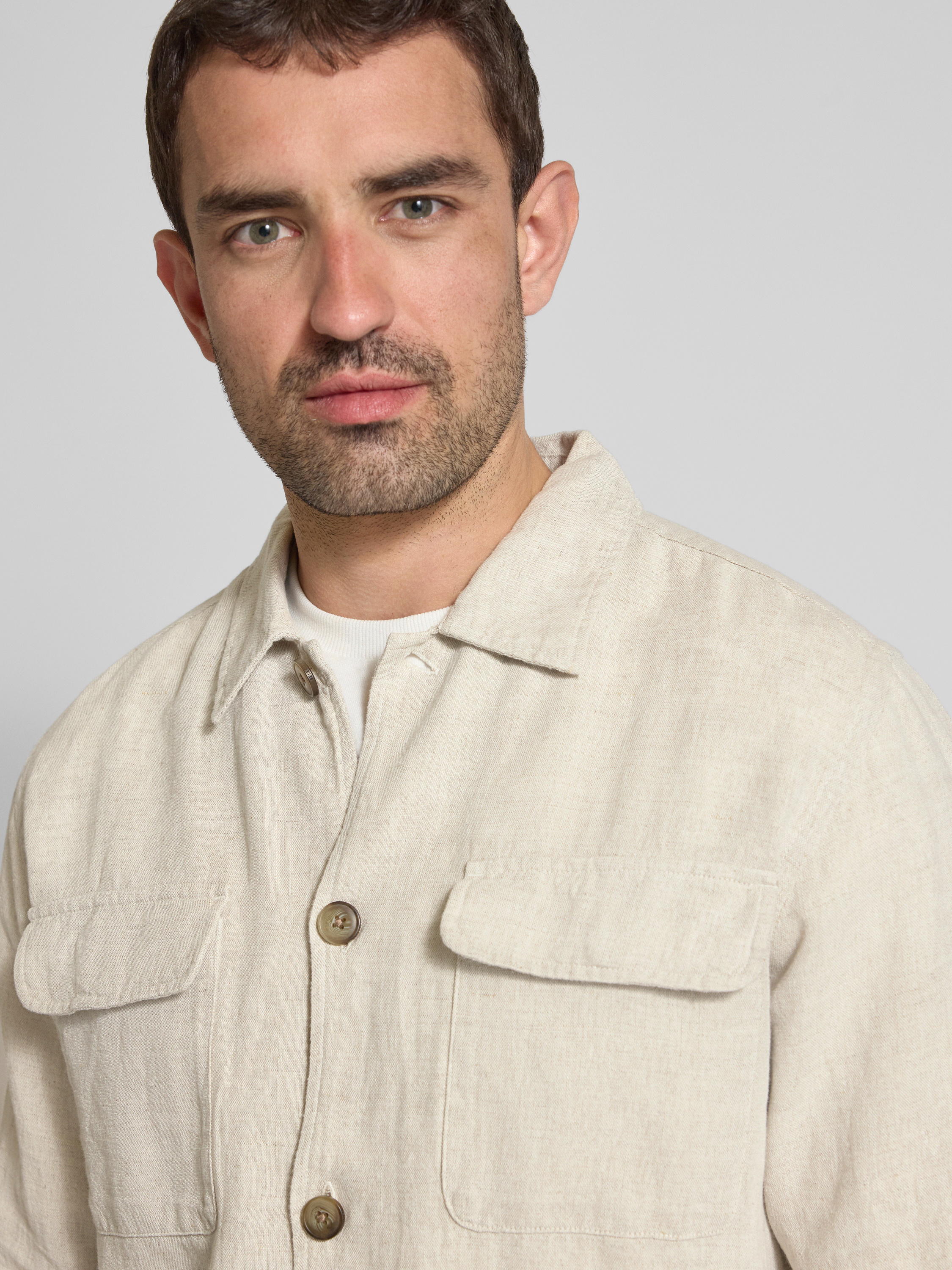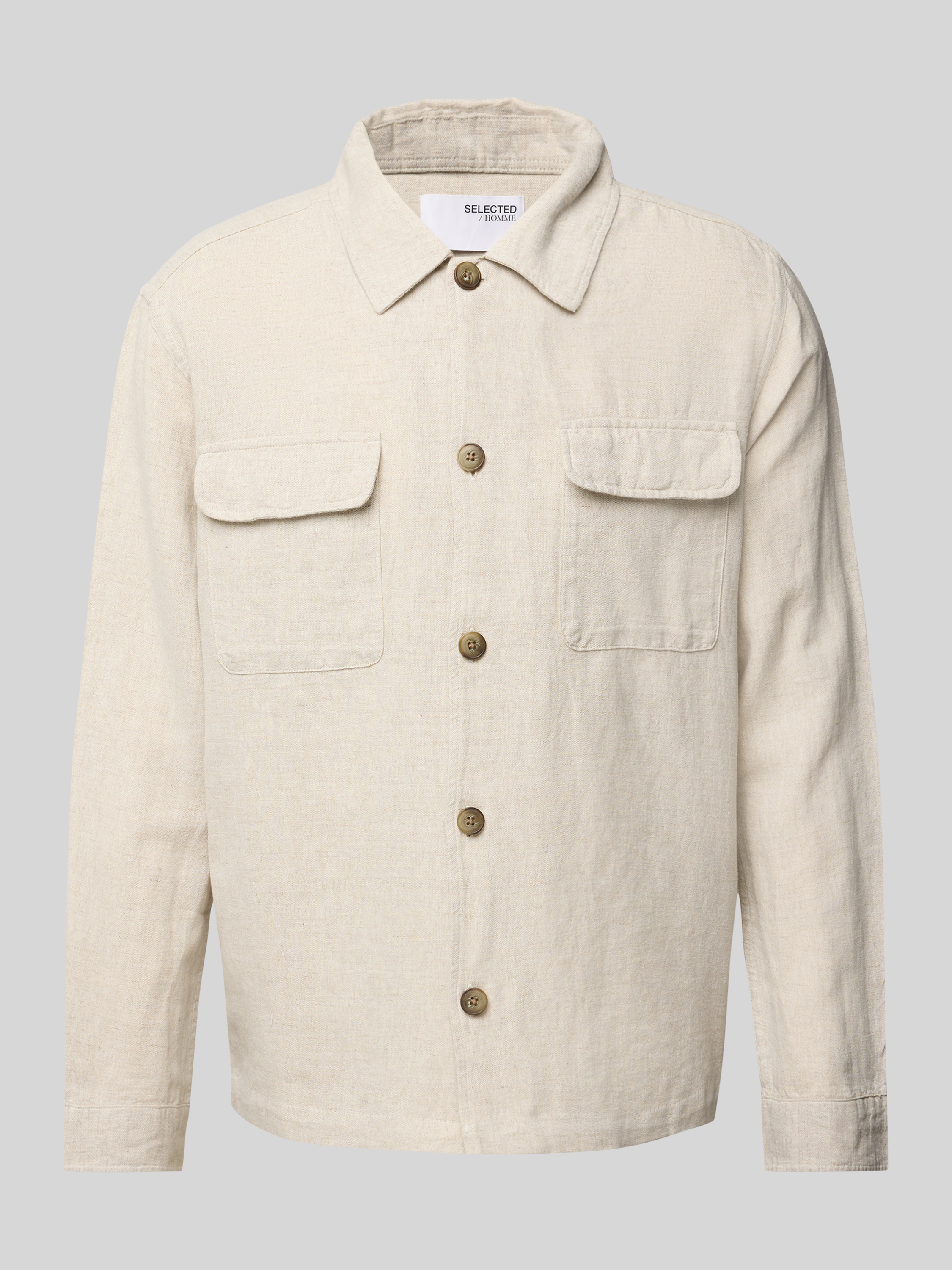 SELECTED HOMMEKurtka koszulowa lniana o kroju regular fit z kołnierzykiem typu kent model ‘LEROY SUN’ - beżowy