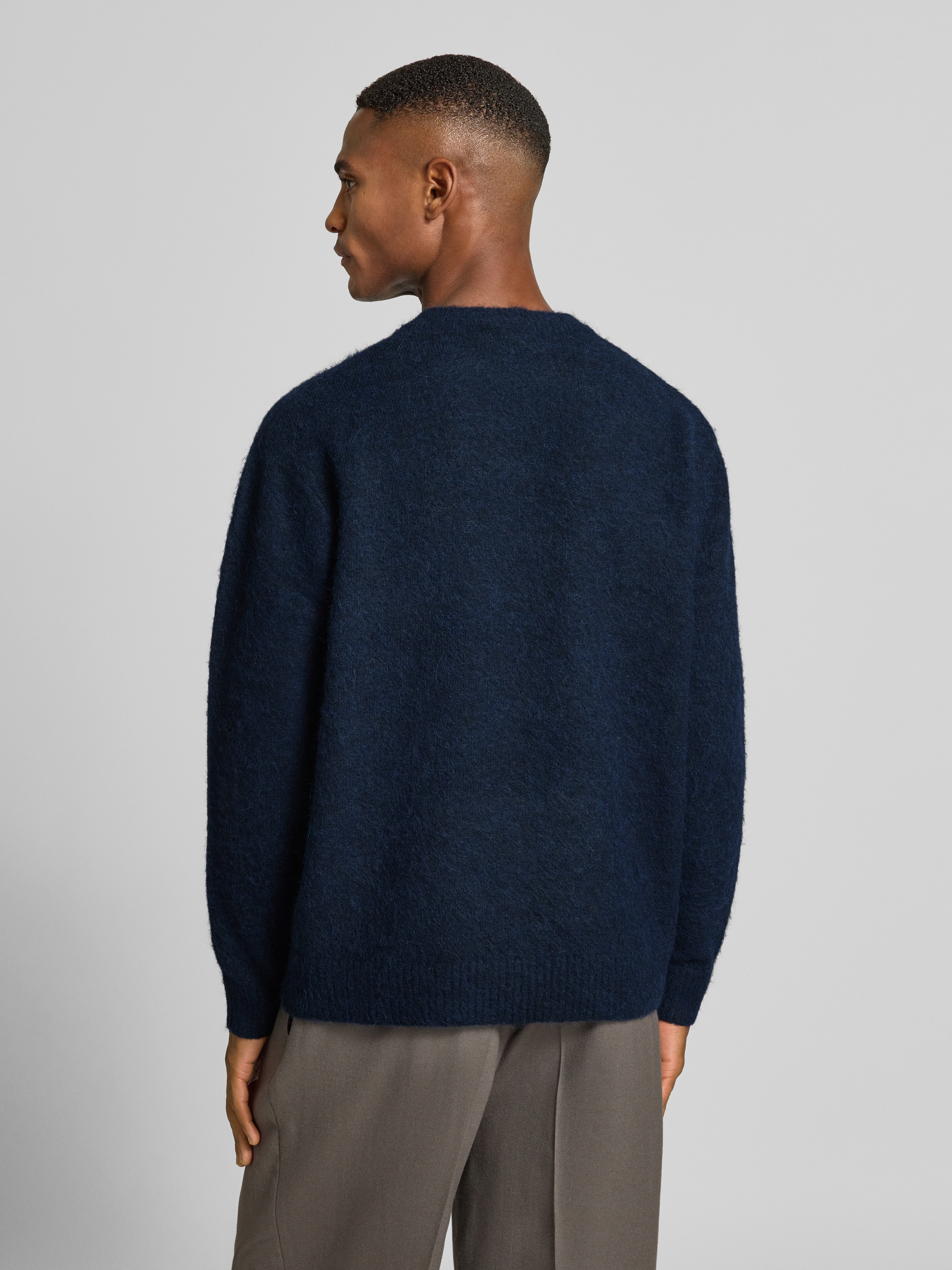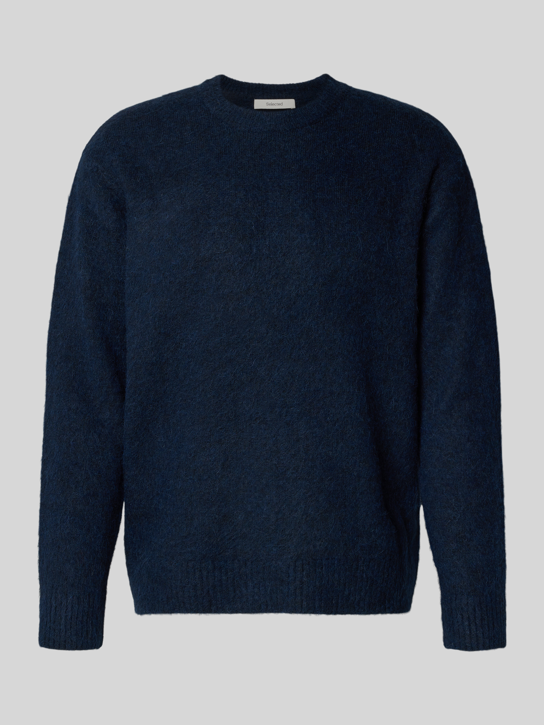 Sweter o kroju relaxed fit z dzianiny z dodatkiem wełny model ‘RAI BRUSHED’ - granatowy