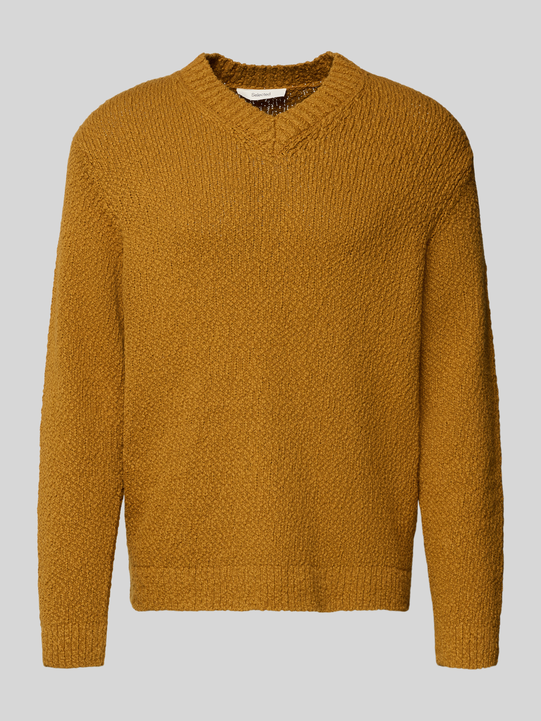 Sweter z dzianiny o kroju regular fit z czystej bawełny ekologicznej model ‘Angus’ - mosiądzowy