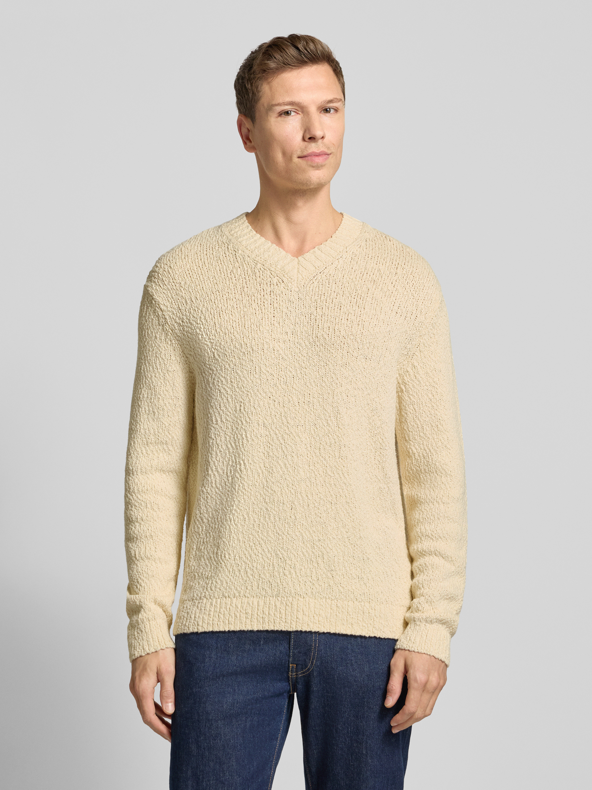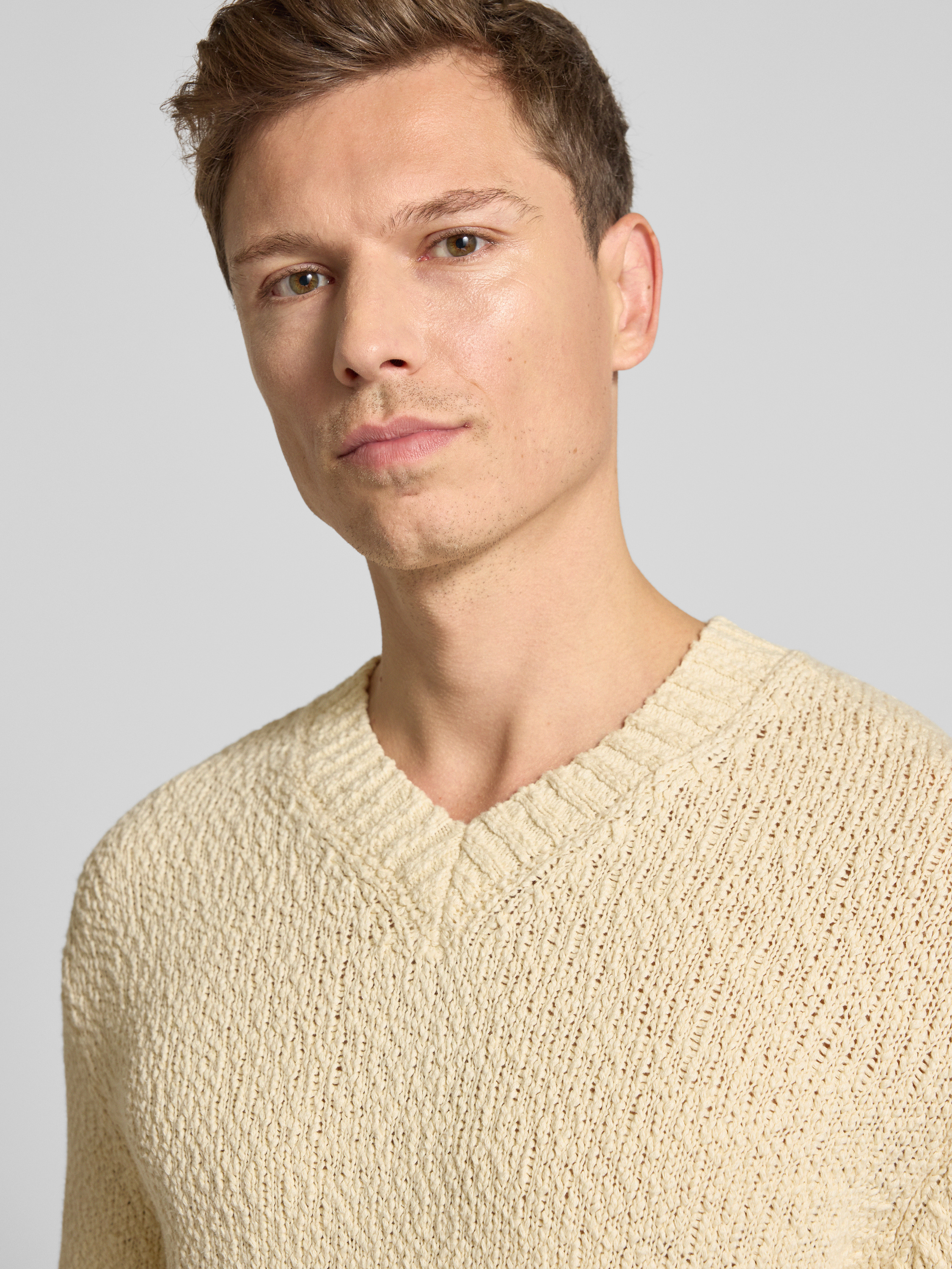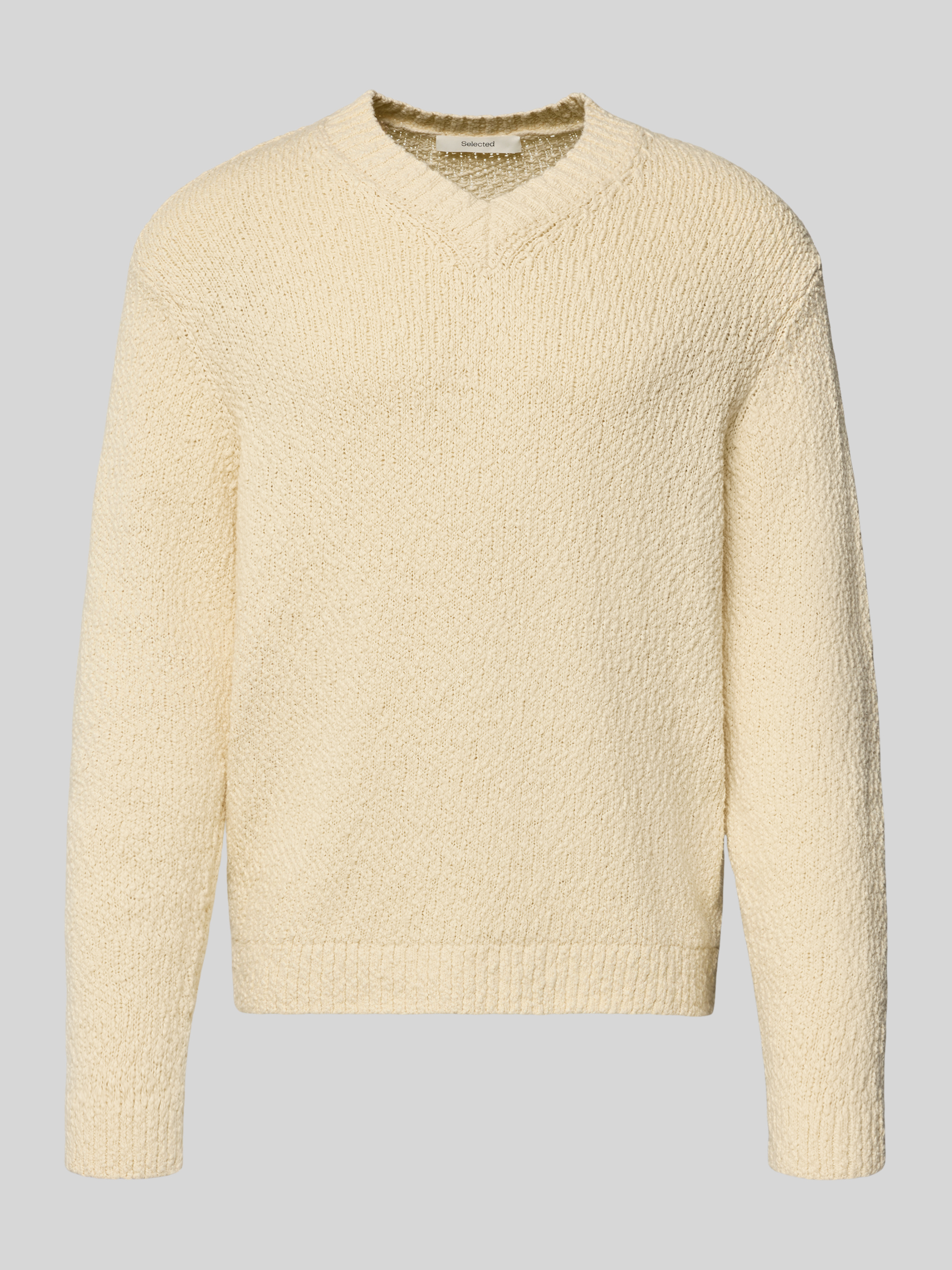 Sweter z dzianiny o kroju regular fit z czystej bawełny ekologicznej model ‘ANGUS’ - złamany biały