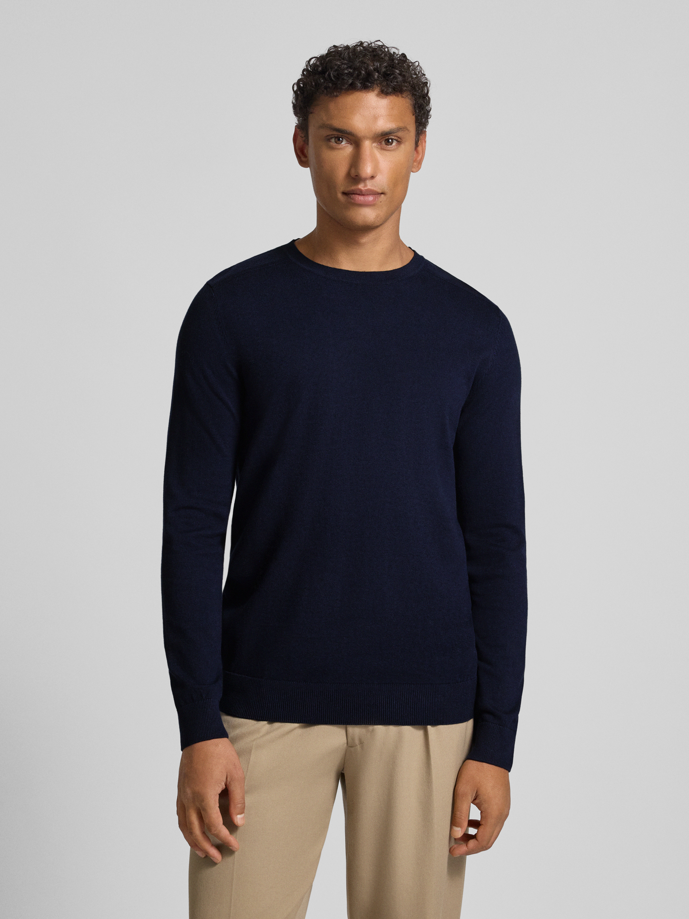 Sweter z dzianiny o kroju regular fit z czystej bawełny model ‘BERG’ - ciemnoniebieski