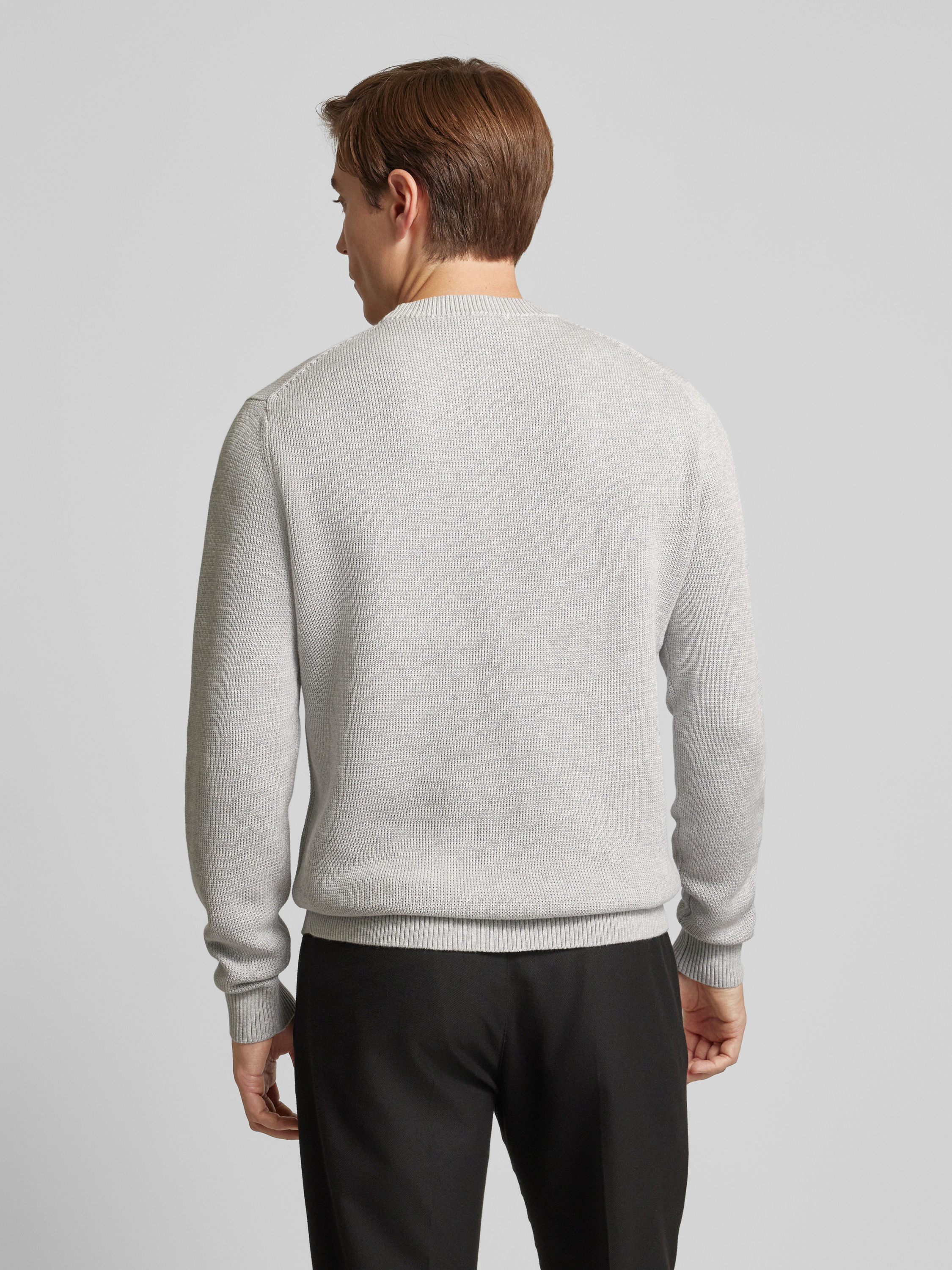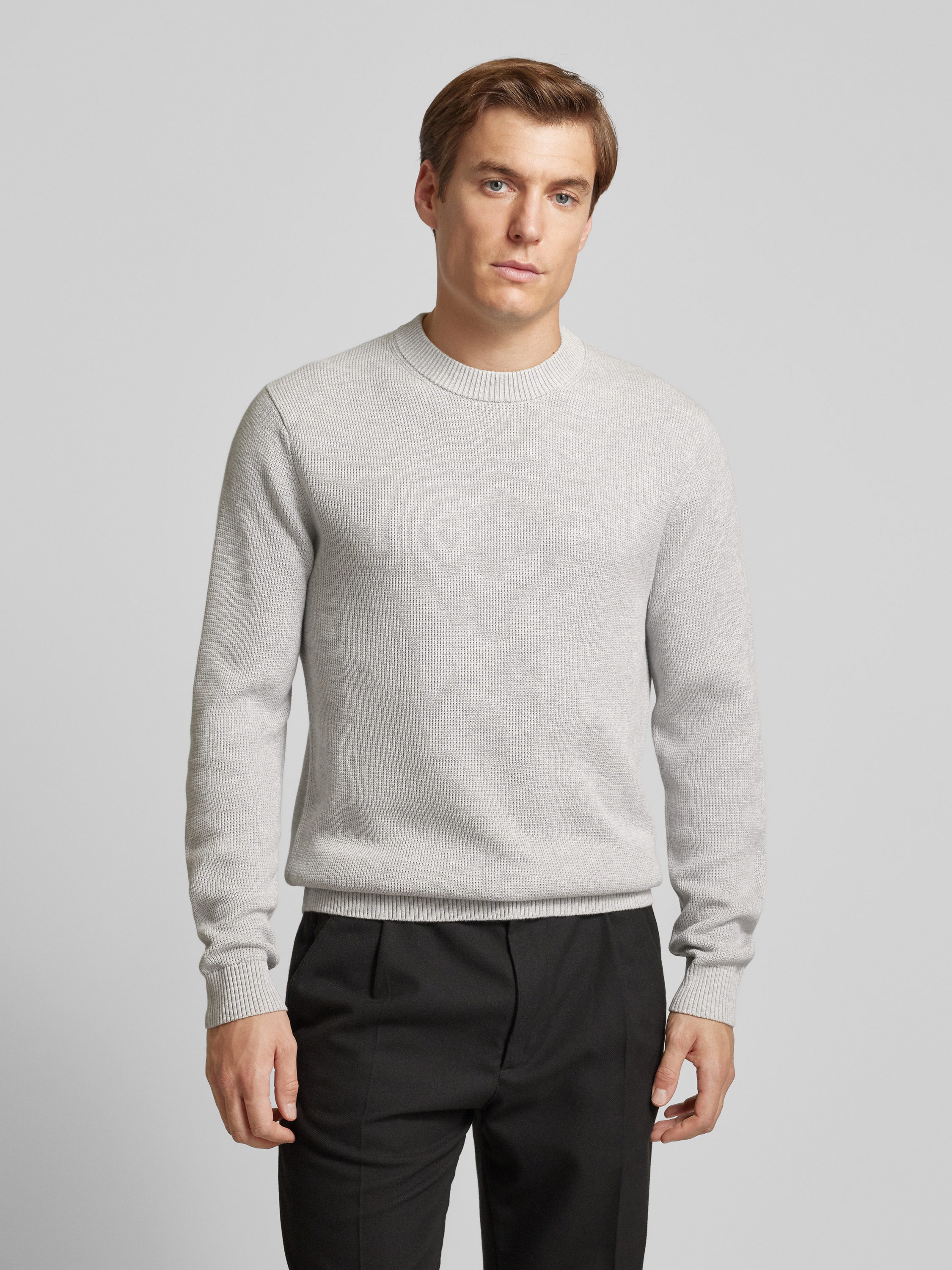 Sweter z dzianiny o kroju regular fit z czystej bawełny model ‘DANE’ - jasnoszary melanż