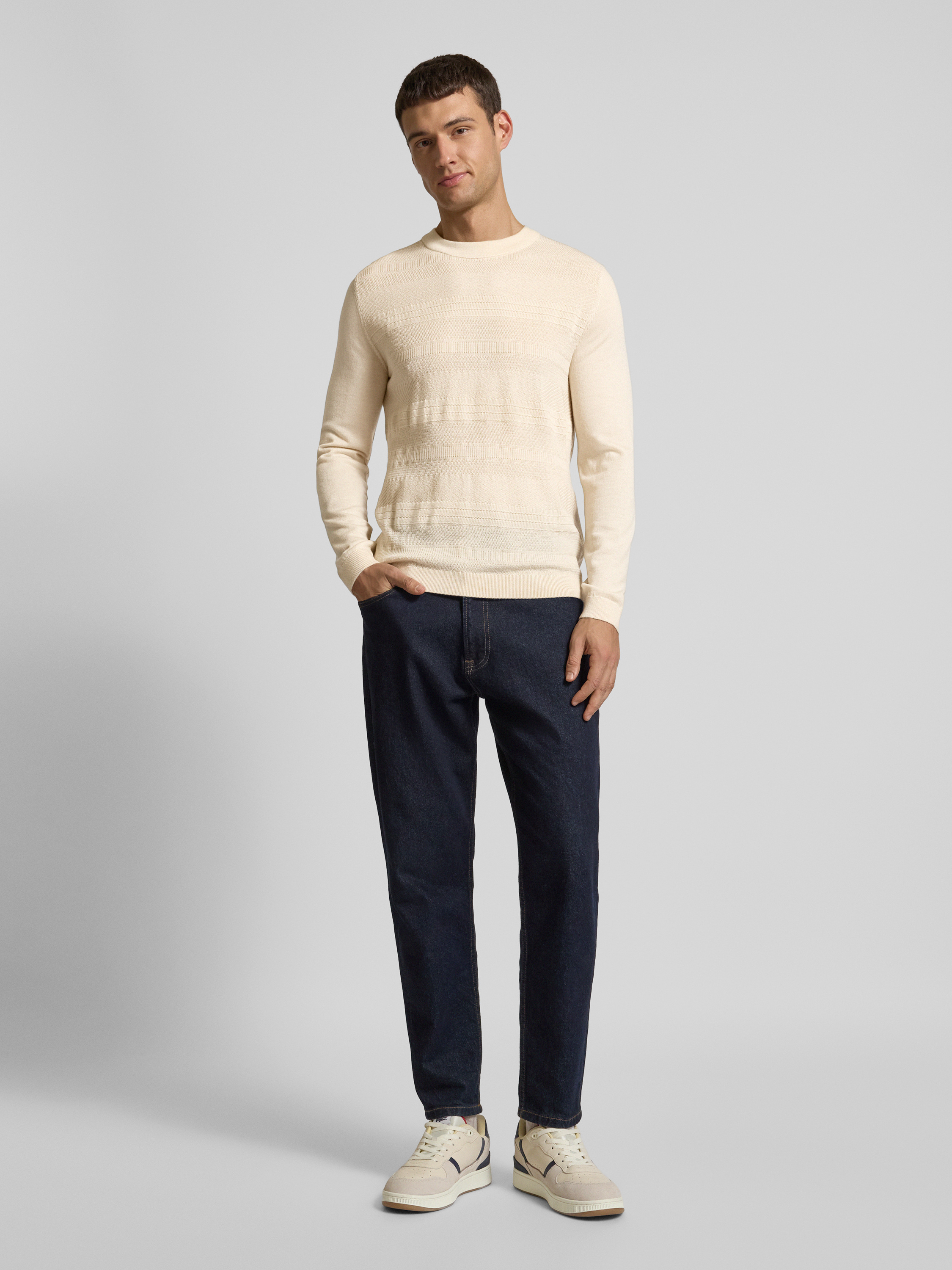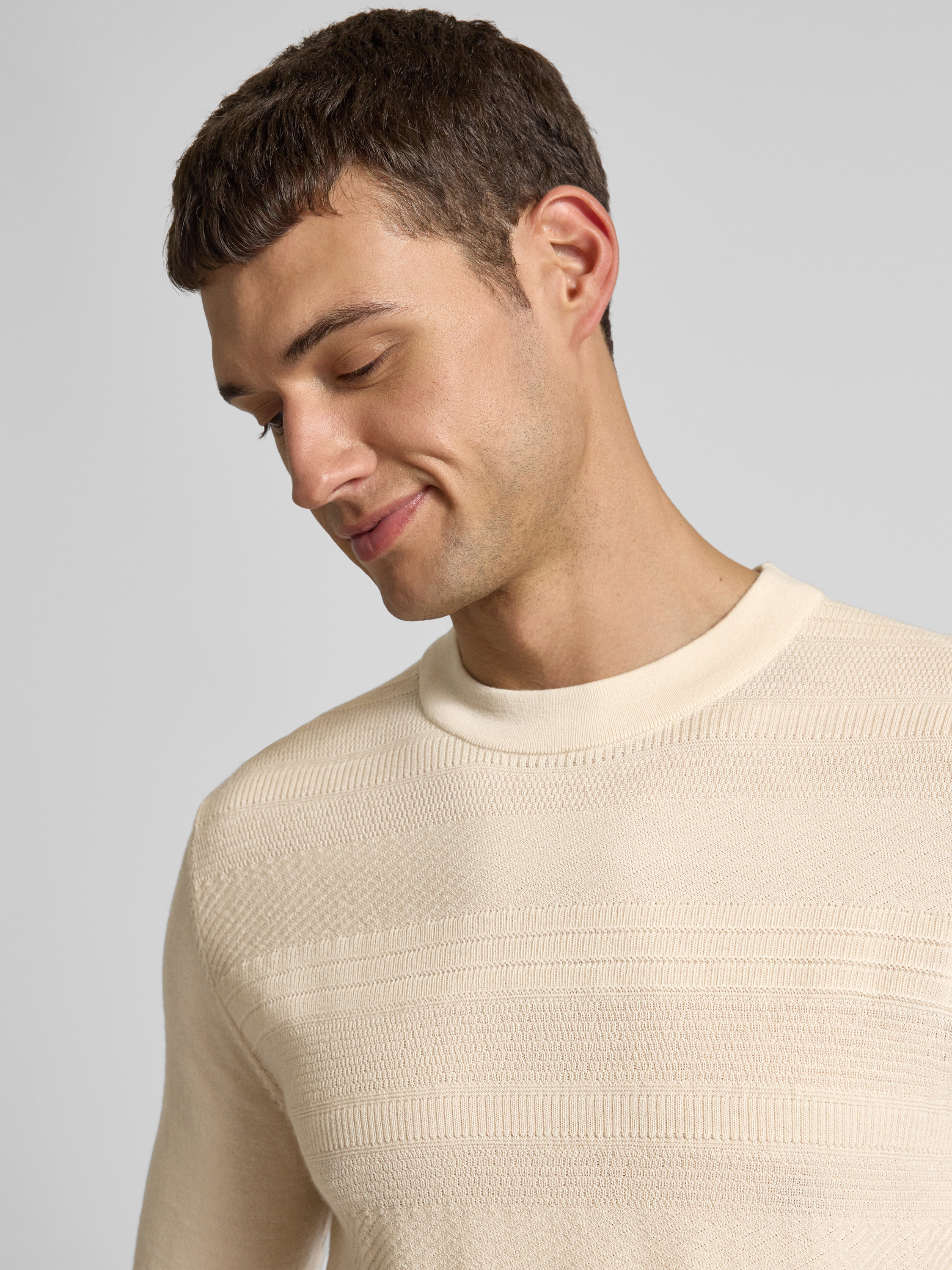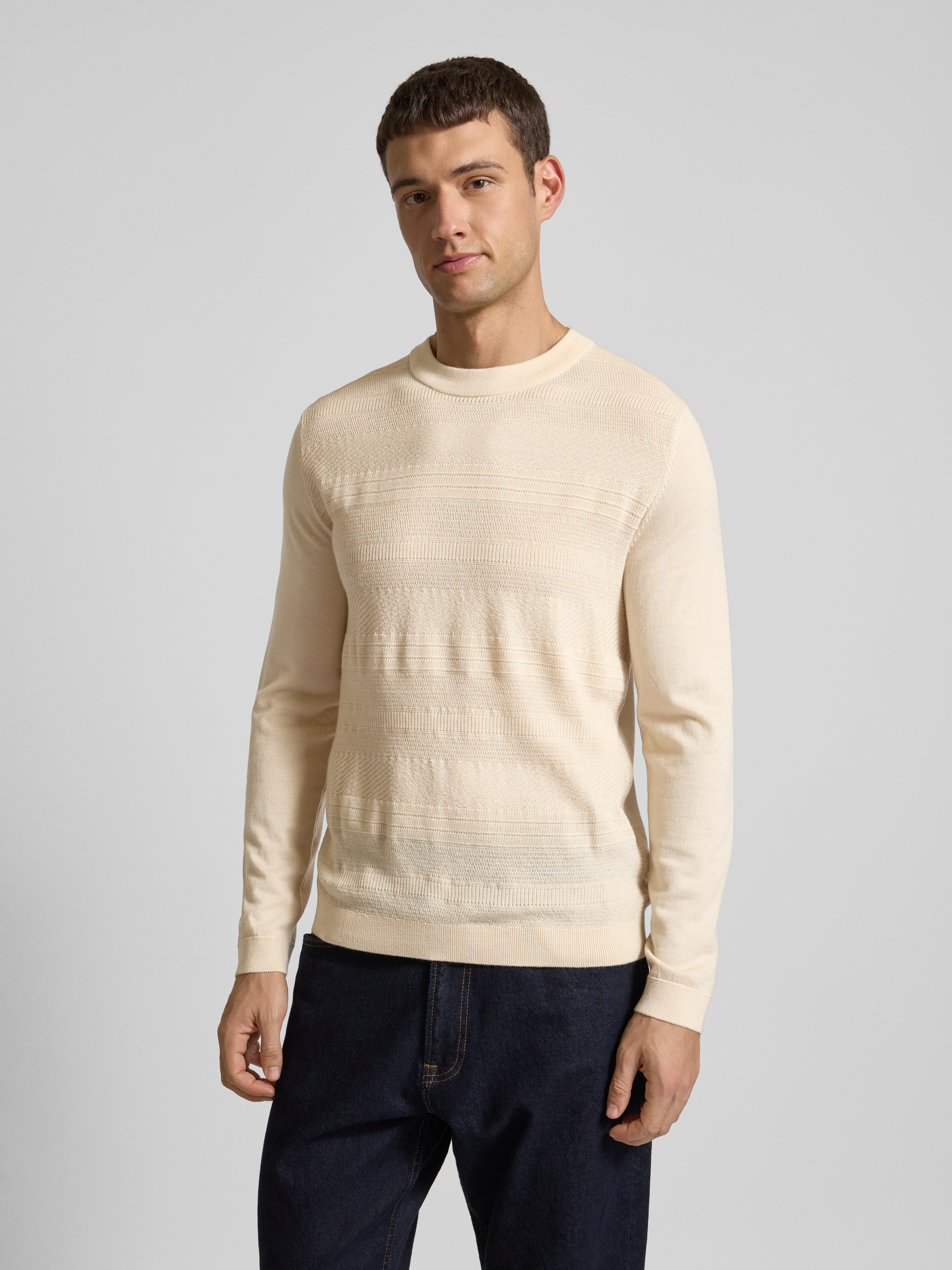 Sweter z wełny z fakturowanym wzorem model ‘TRAY’ - piaskowy