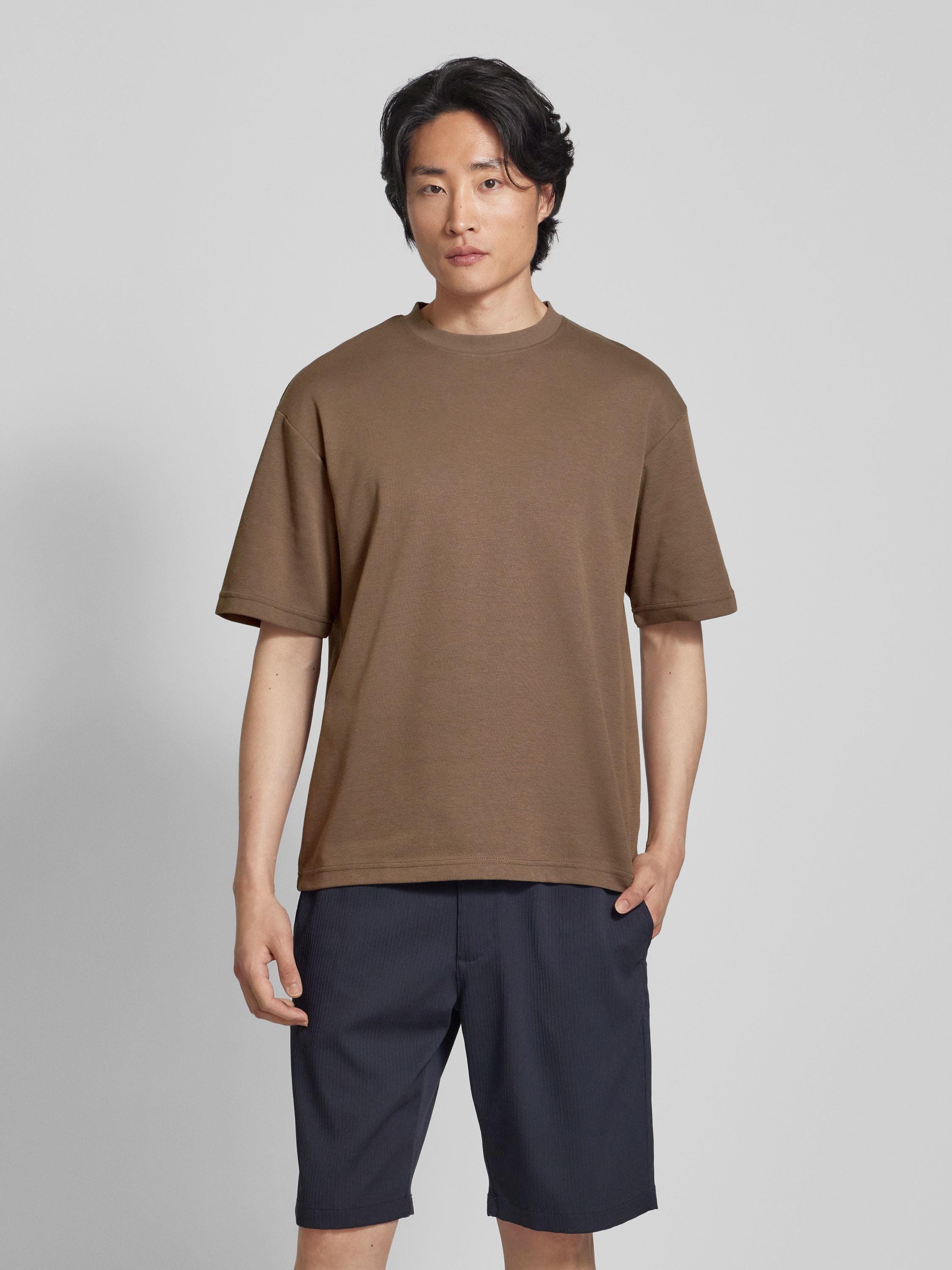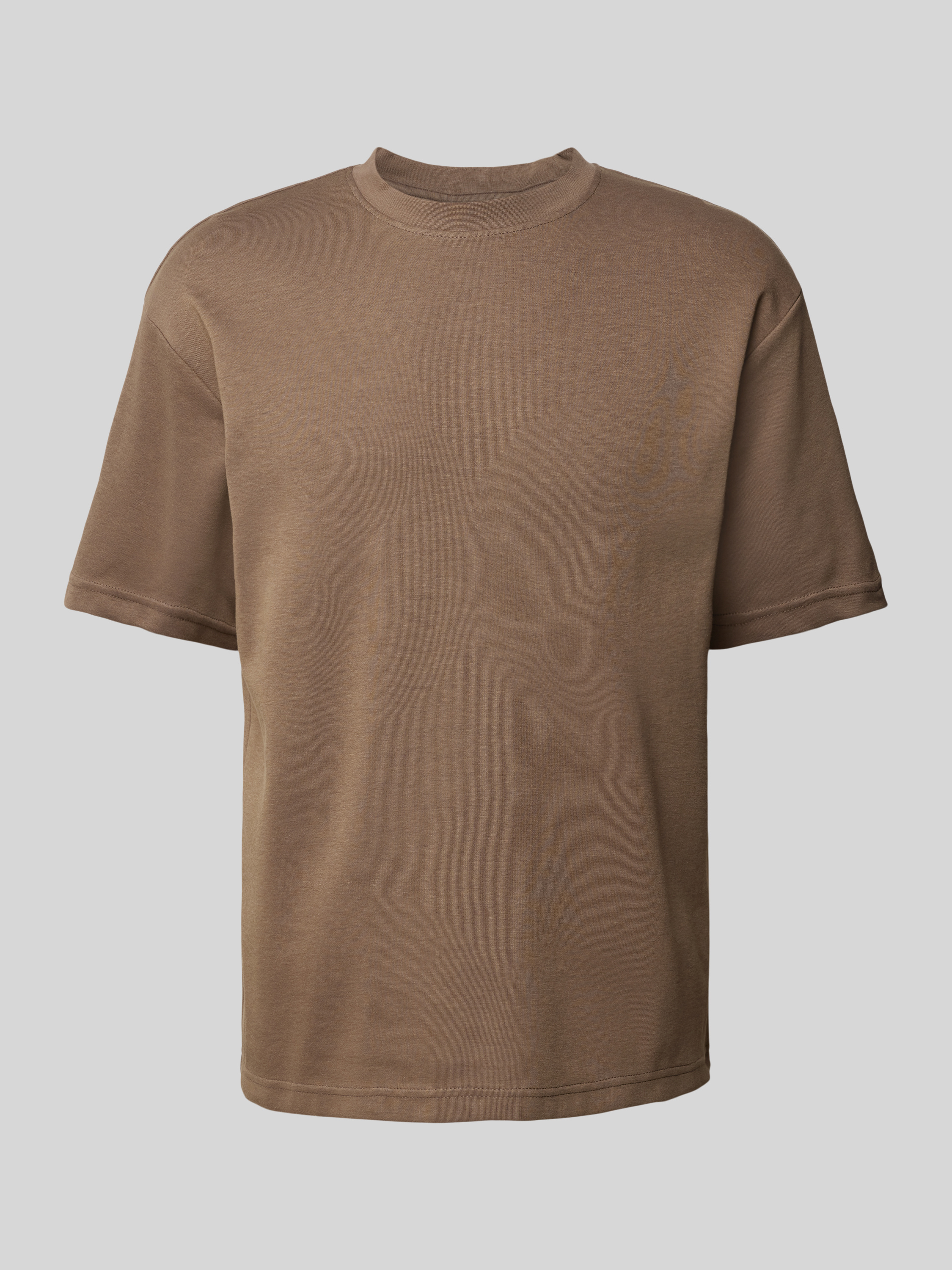 T-shirt o kroju relaxed fit z okrągłym dekoltem model ‘OSCAR’ - orzechowy