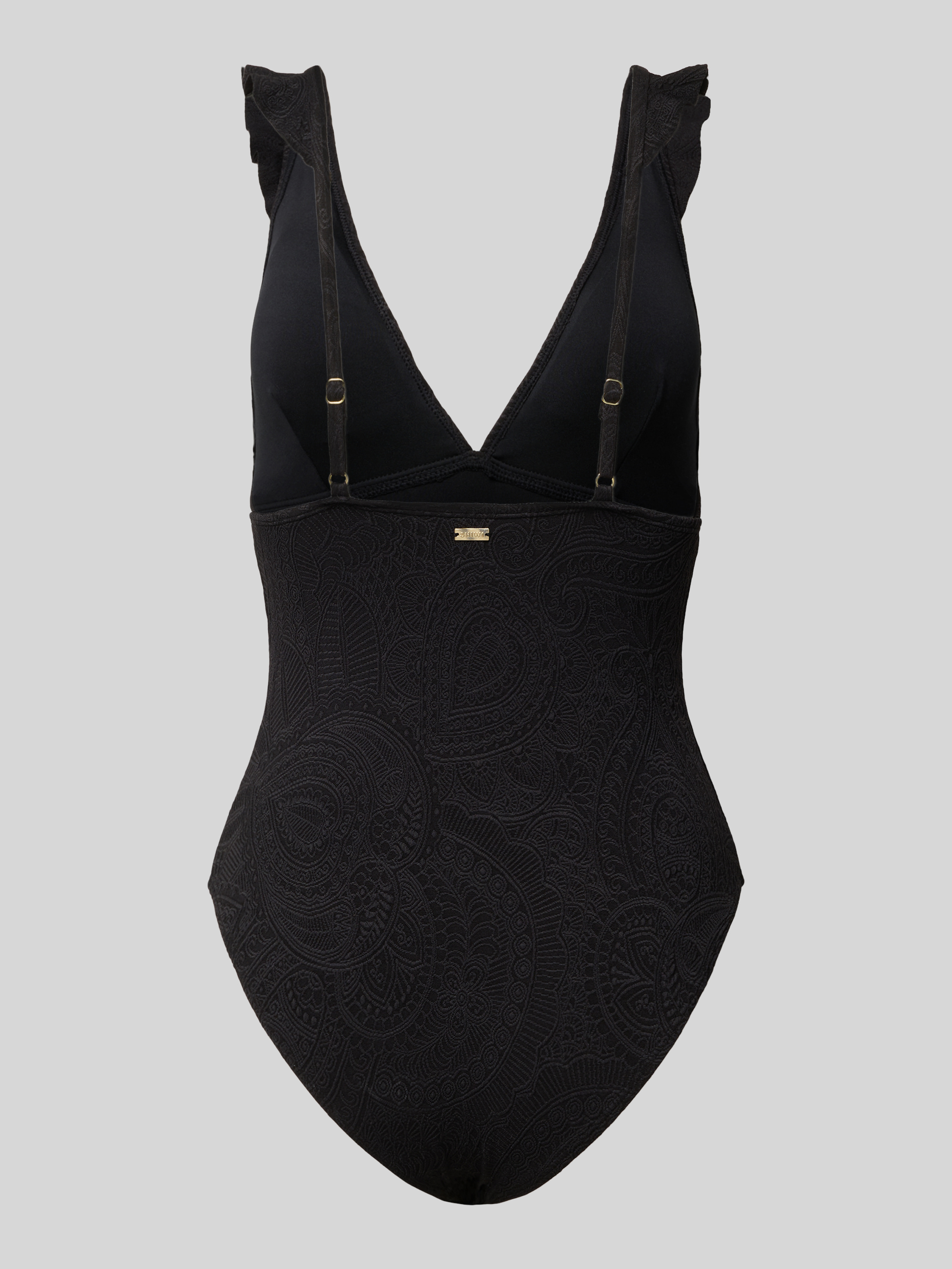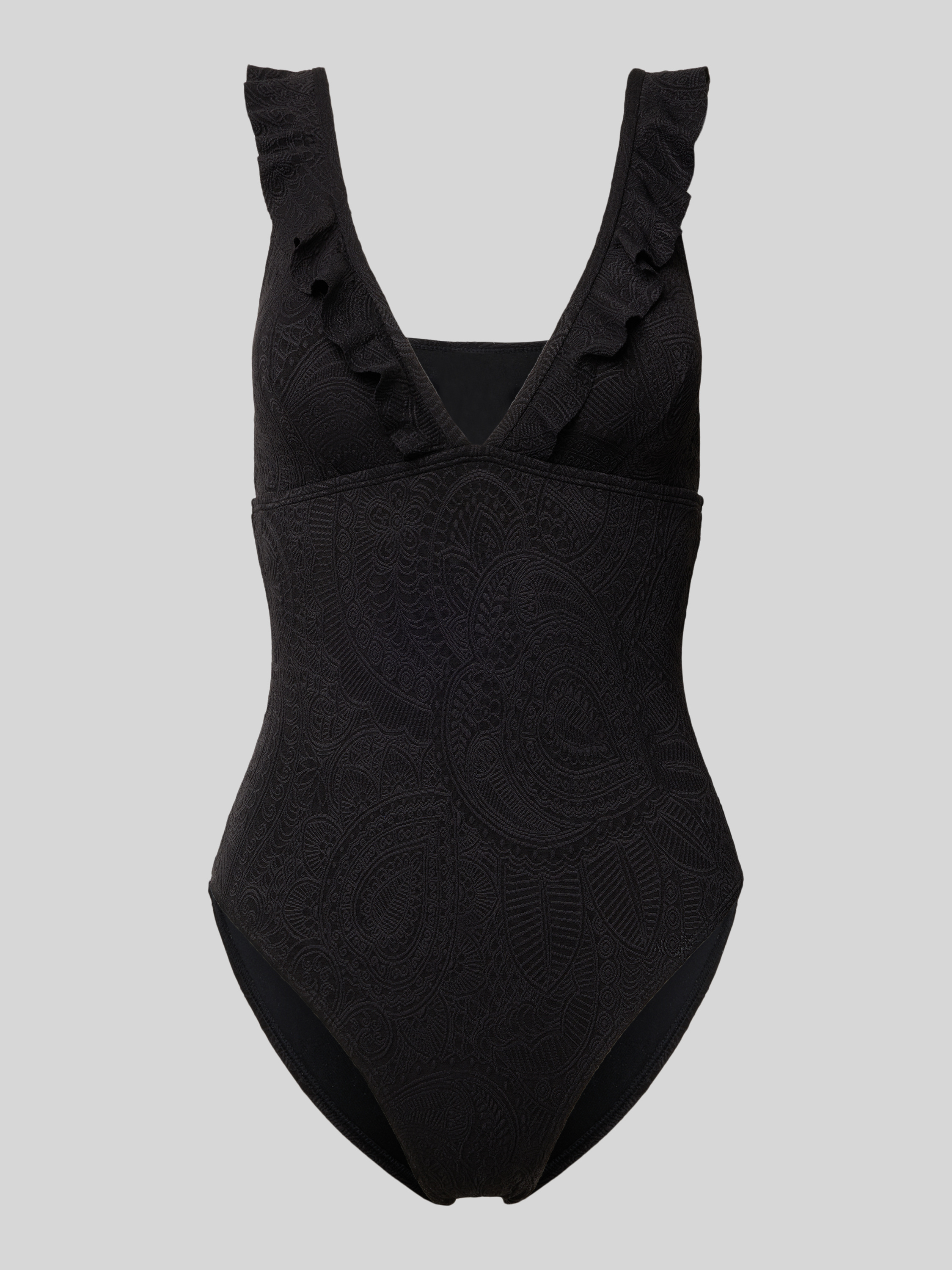 Kostium kąpielowy ze wzorem paisley i falbanami model ‘Bobbie’ - czarny