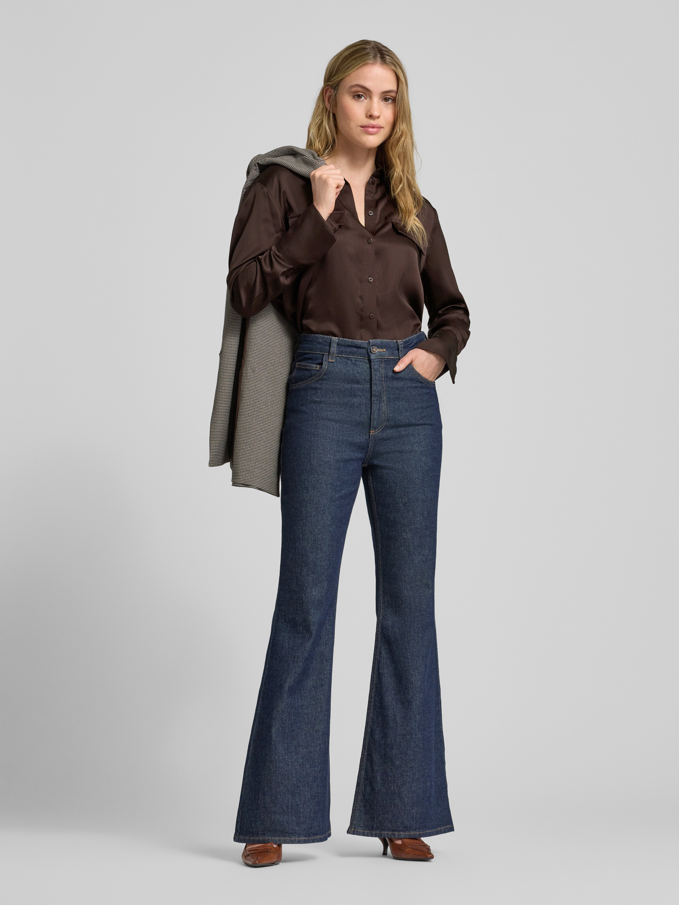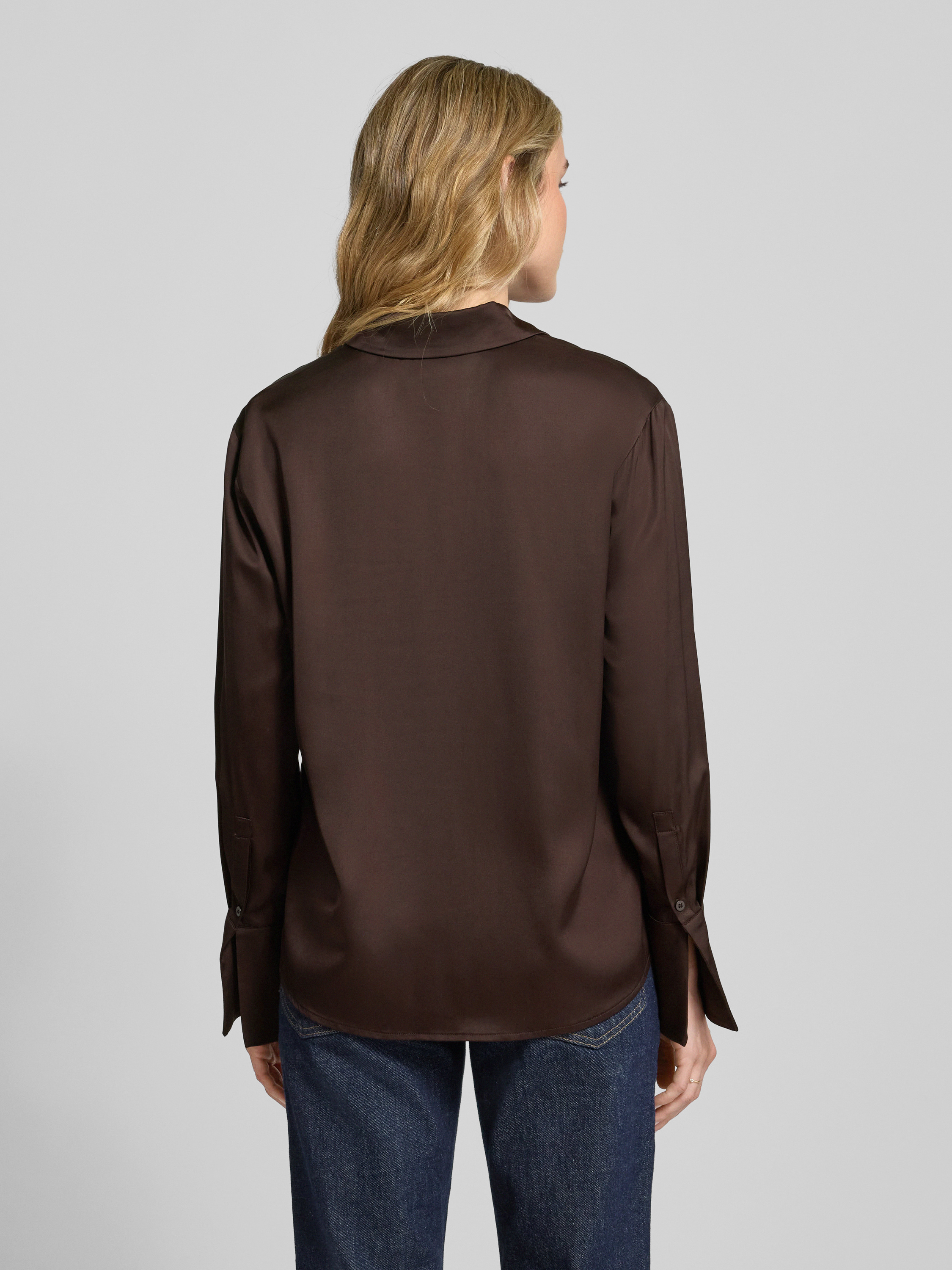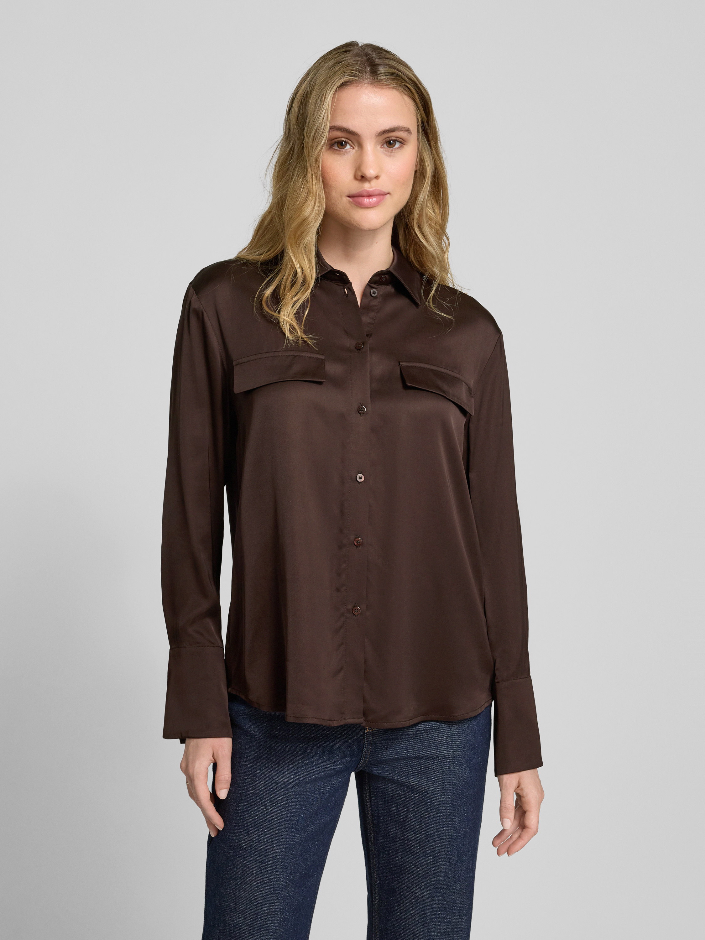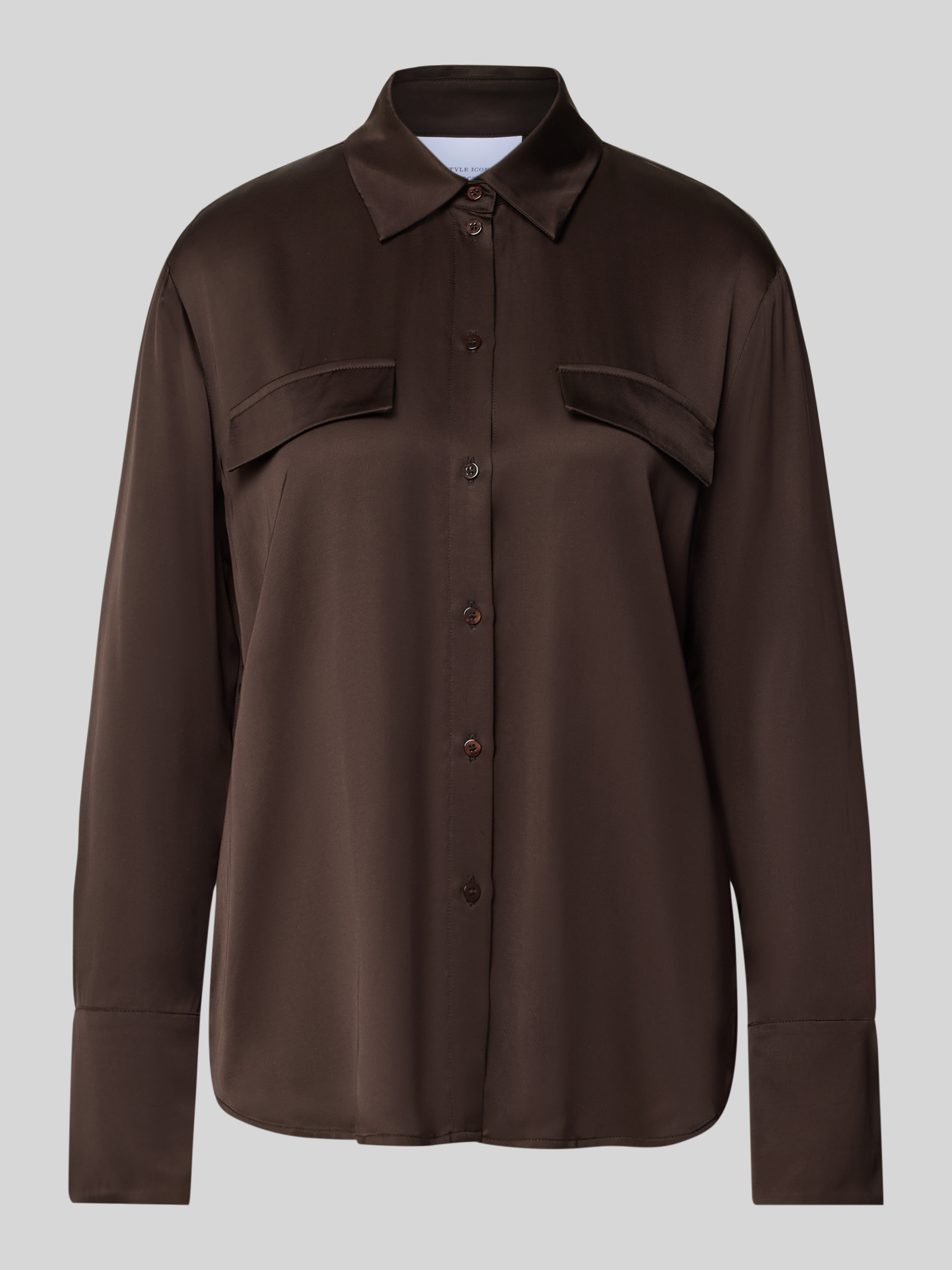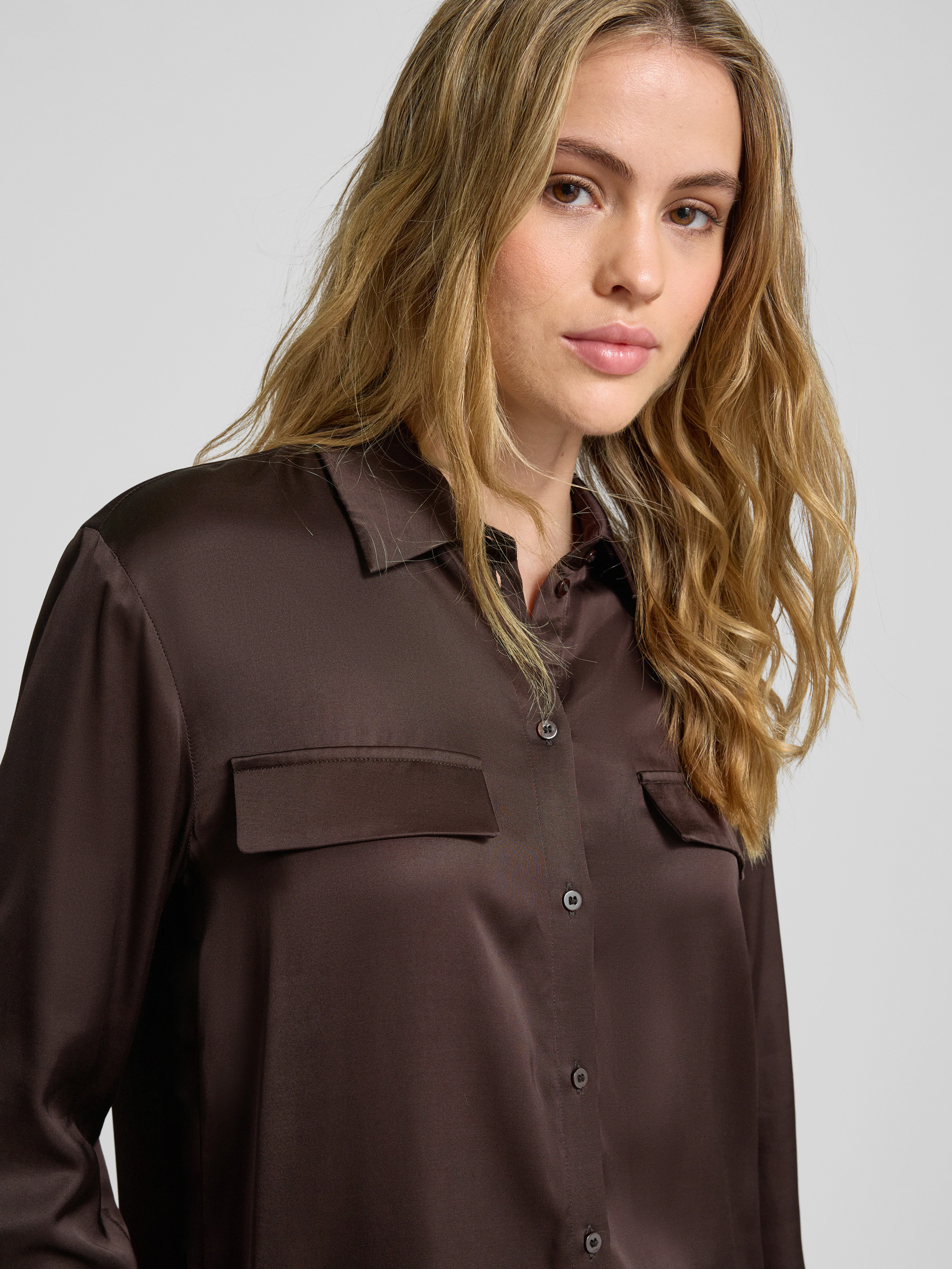 Bluzka satynowa z listwą guzikową – curated by Anouk Yve - ciemnobrązowy