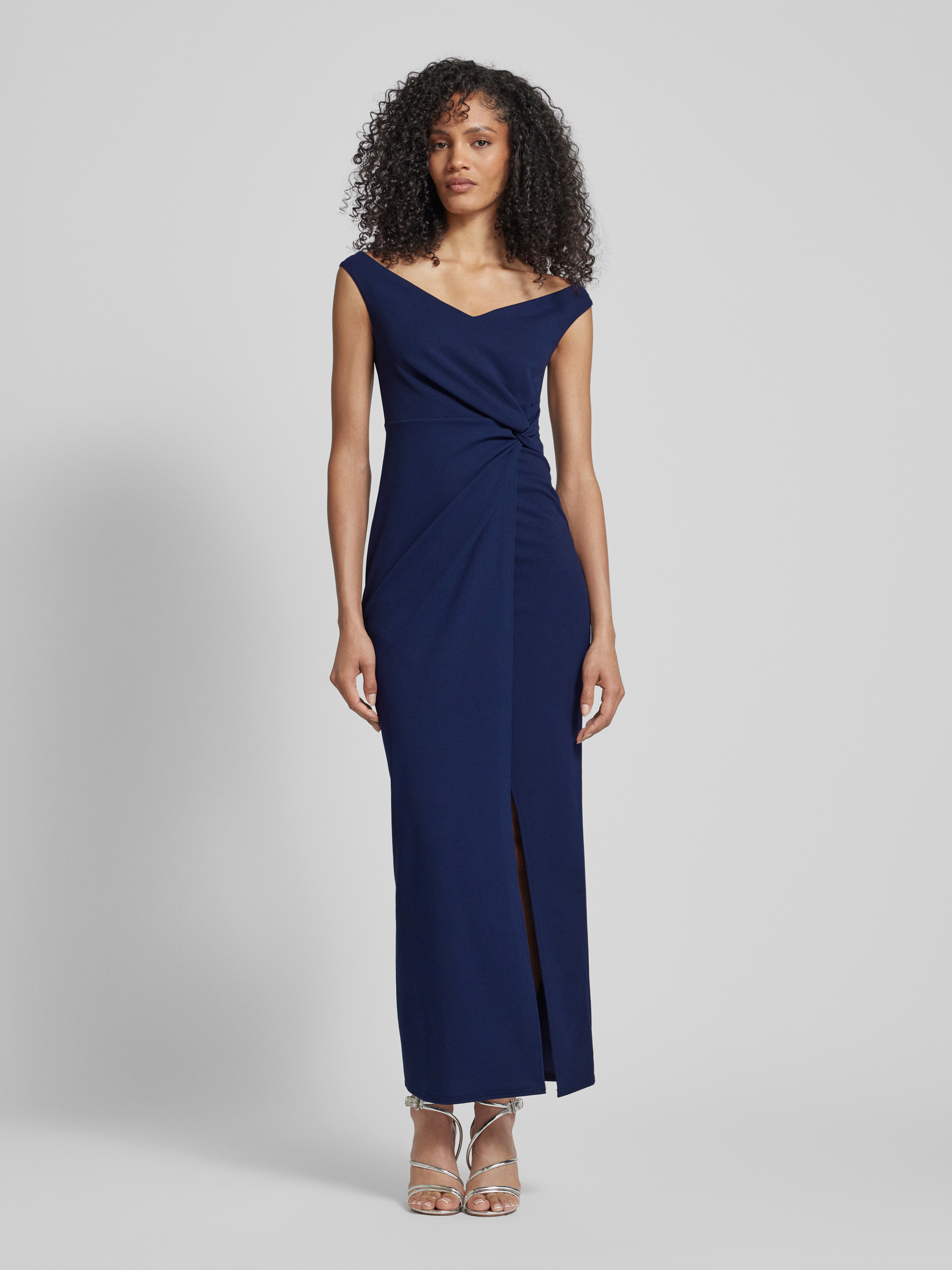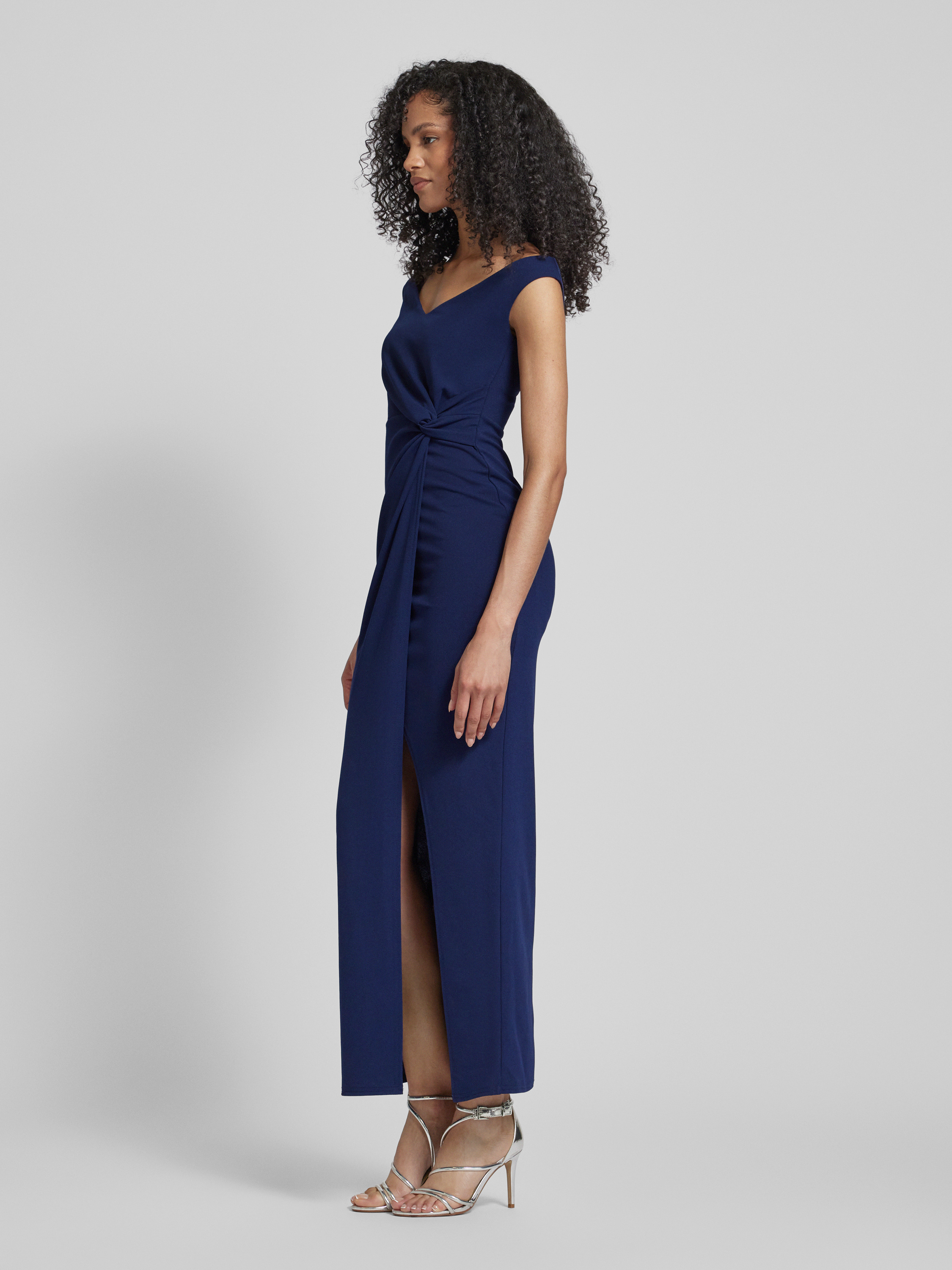 Sukienka wieczorowa z wiązanym detalem - granatowy