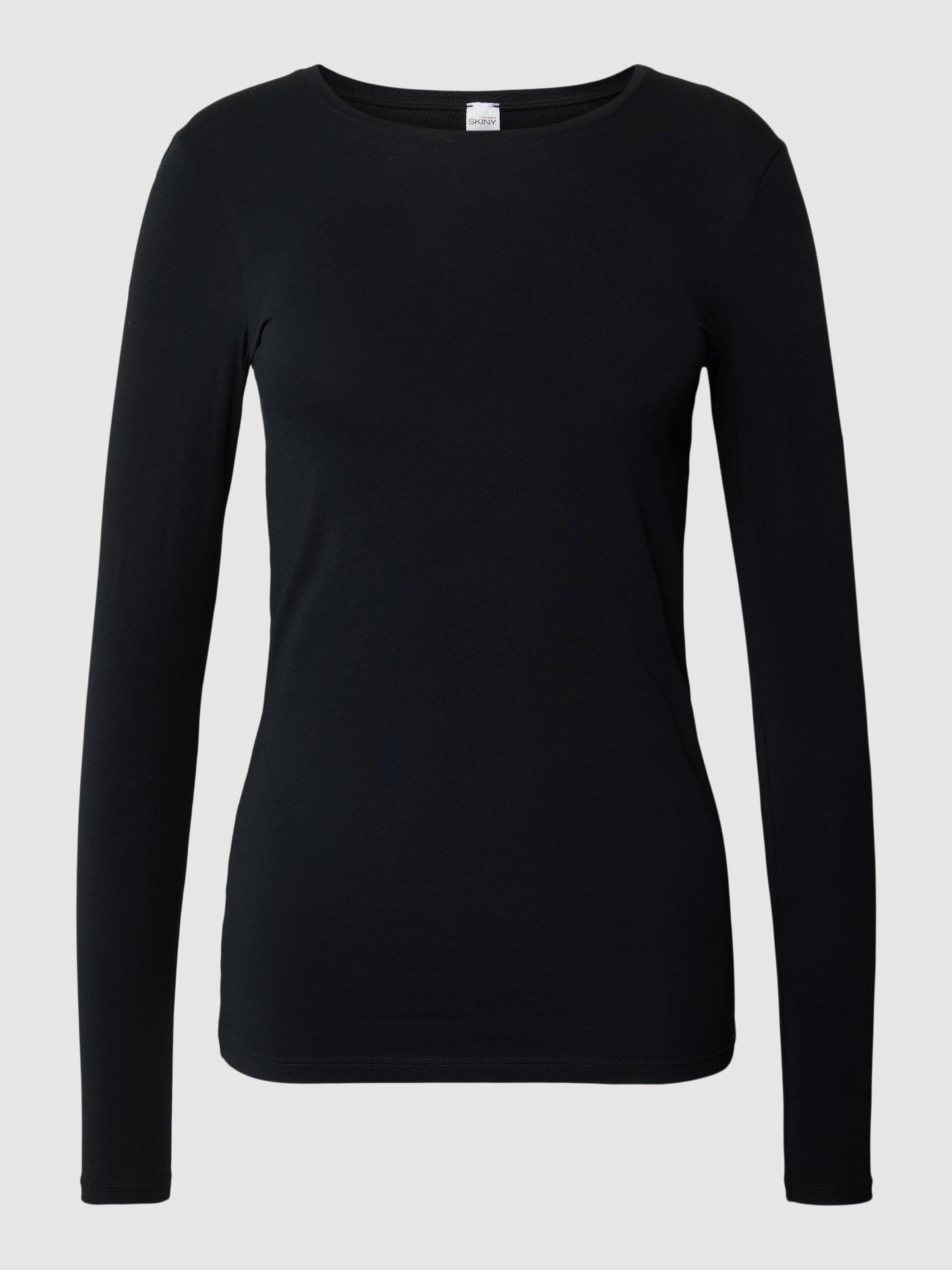 Bluzka z długim rękawem z dekoltem okrągłym - czarny