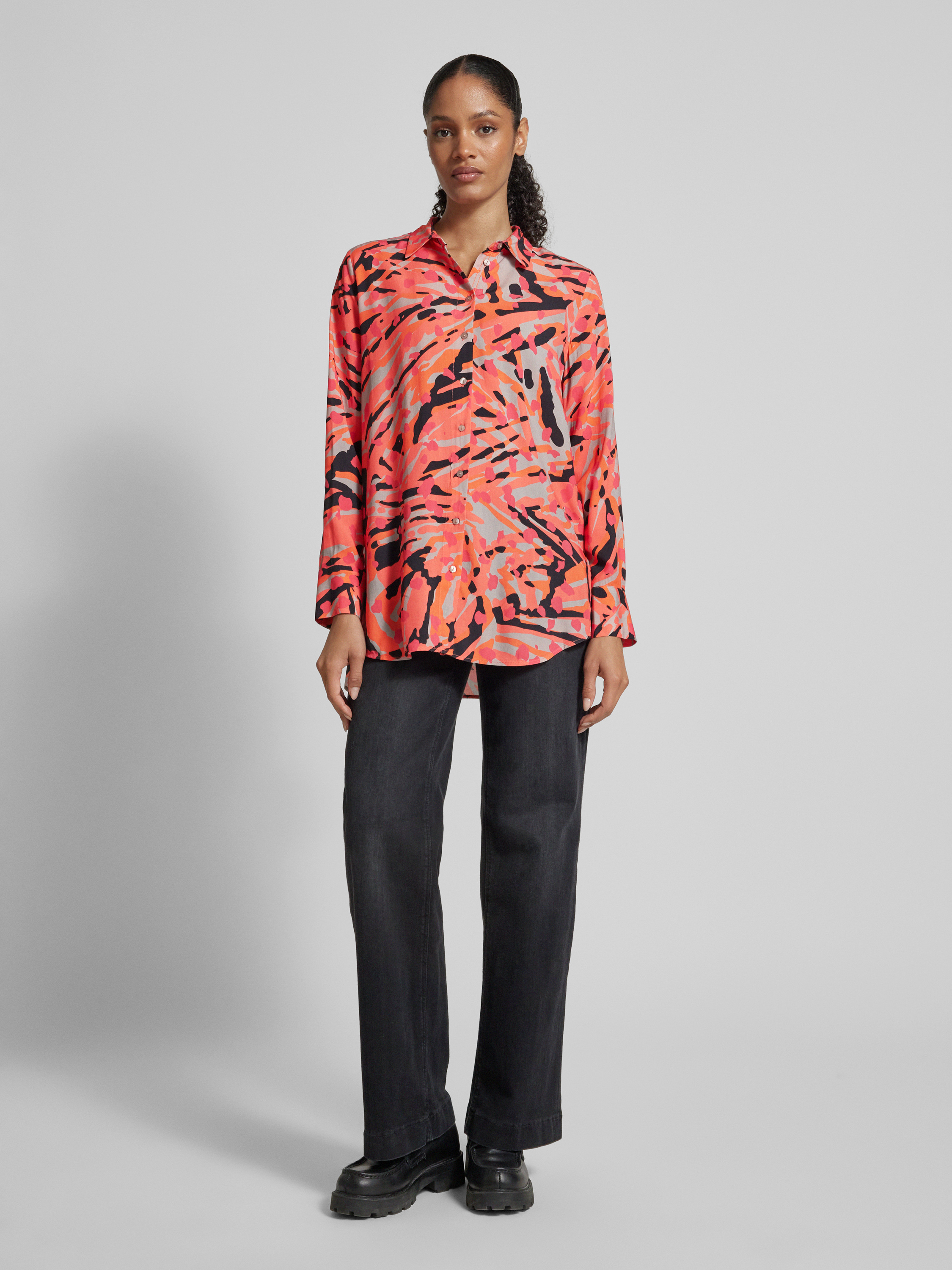 Bluzka koszulowa o kroju regular fit z mankietami - mocnoróżowy