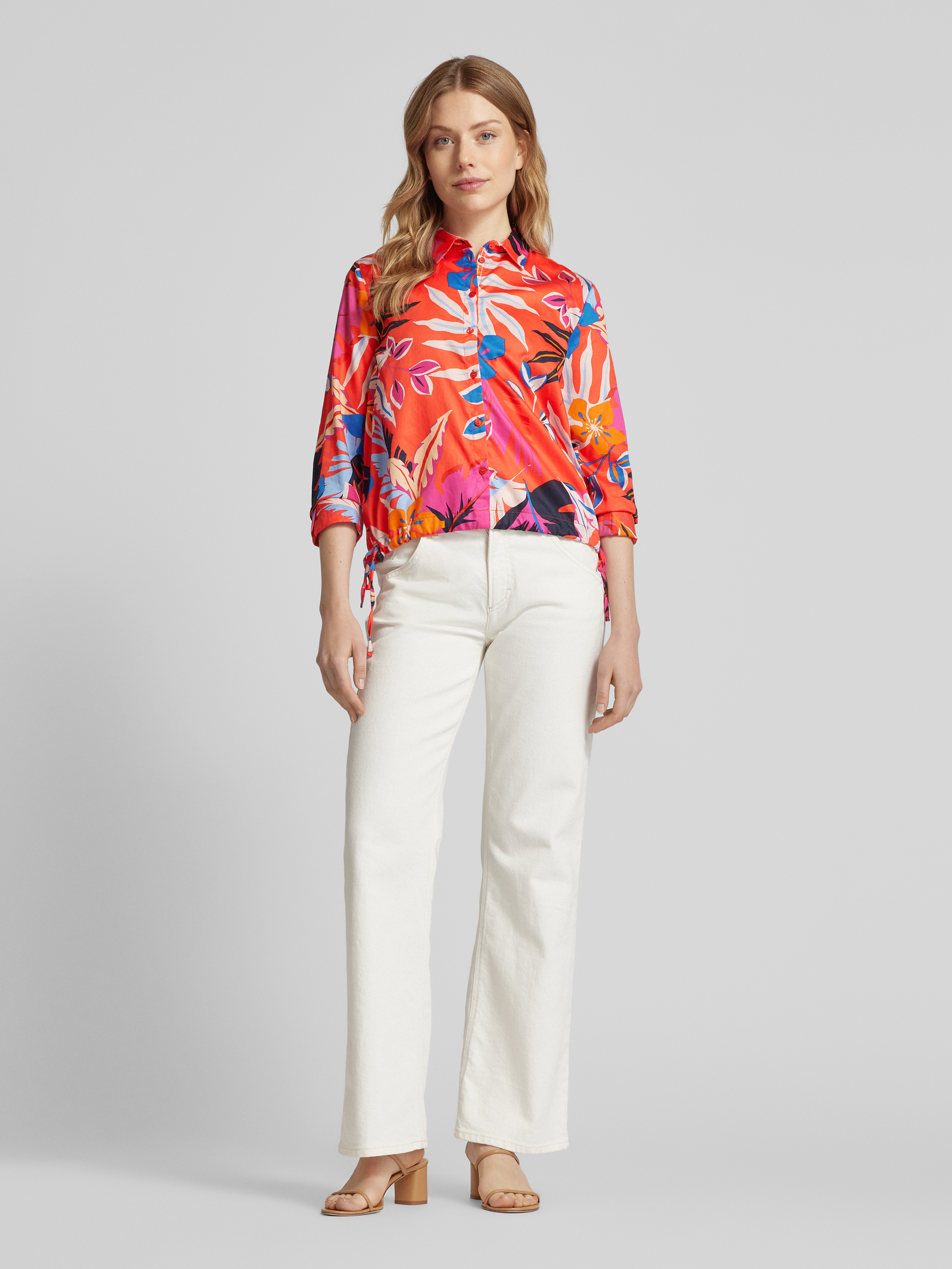 Bluzka koszulowa o kroju slim fit z rękawem o dł. 3/4 - czerwony