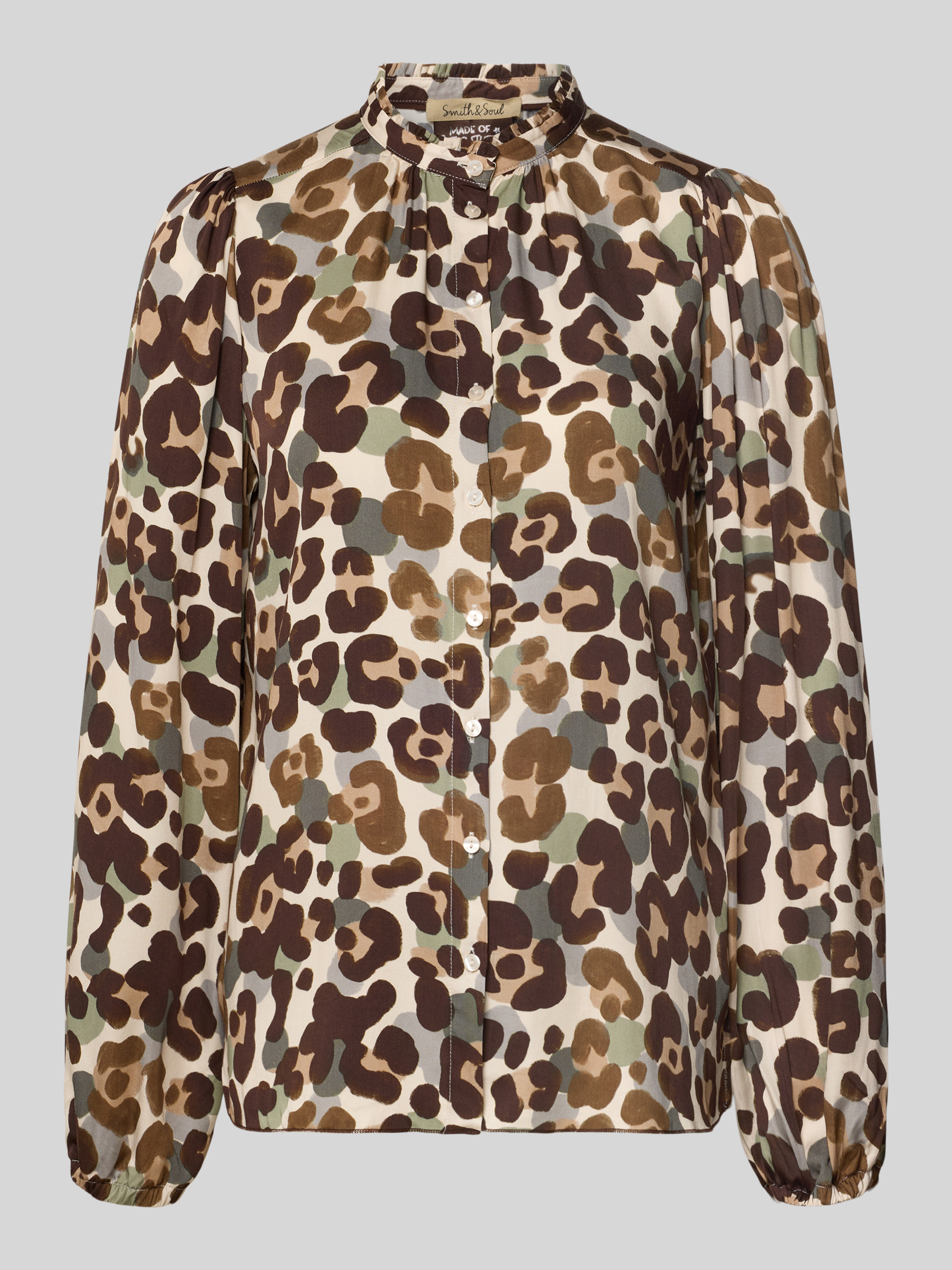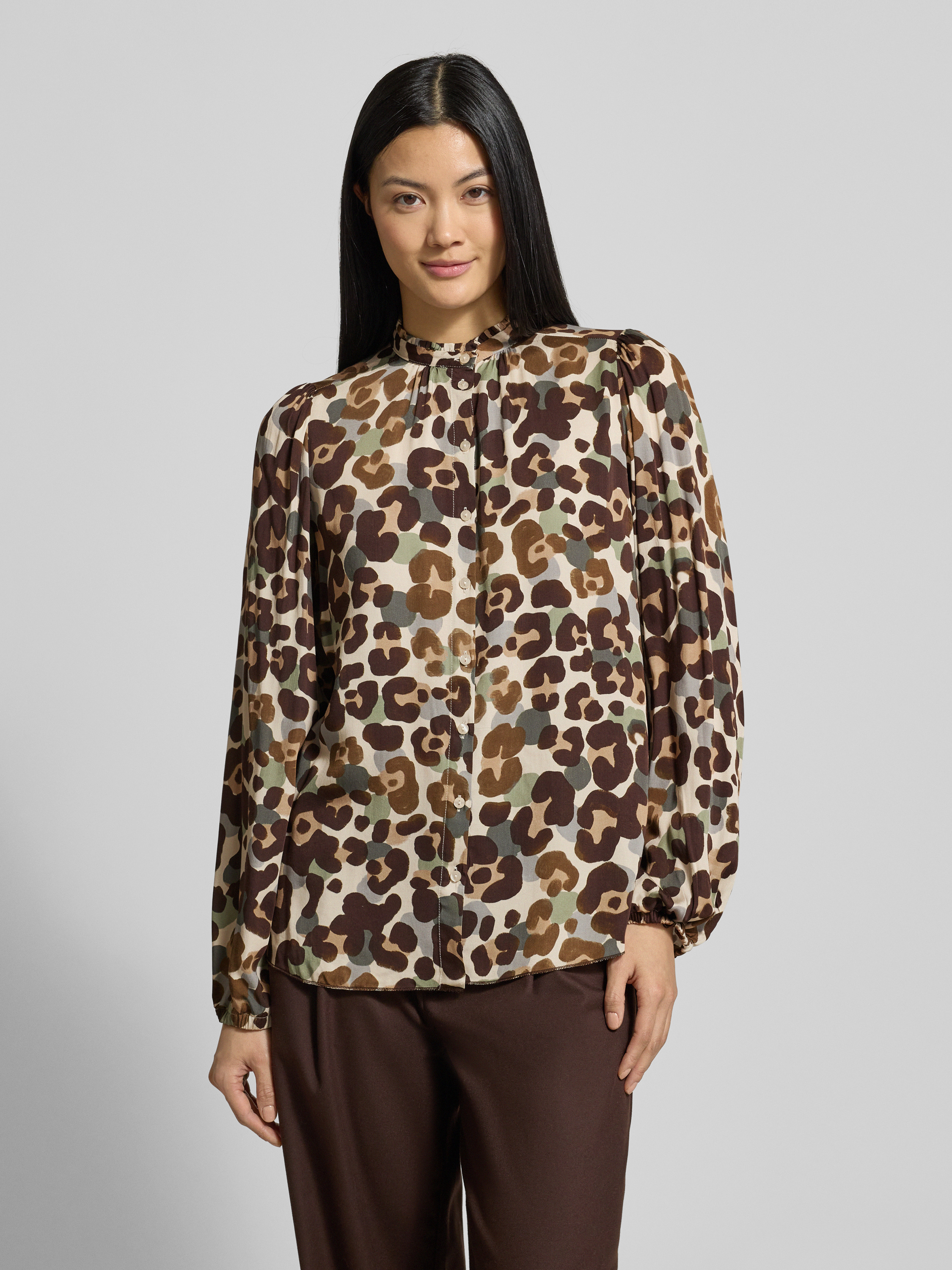 Bluzka koszulowa z listwą guzikową - ciemnobrązowy