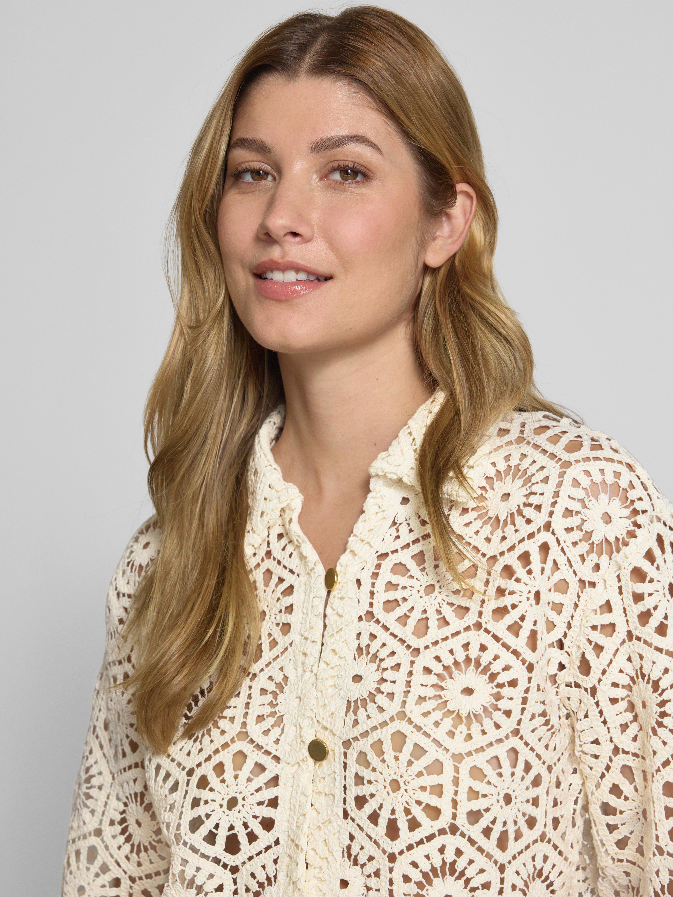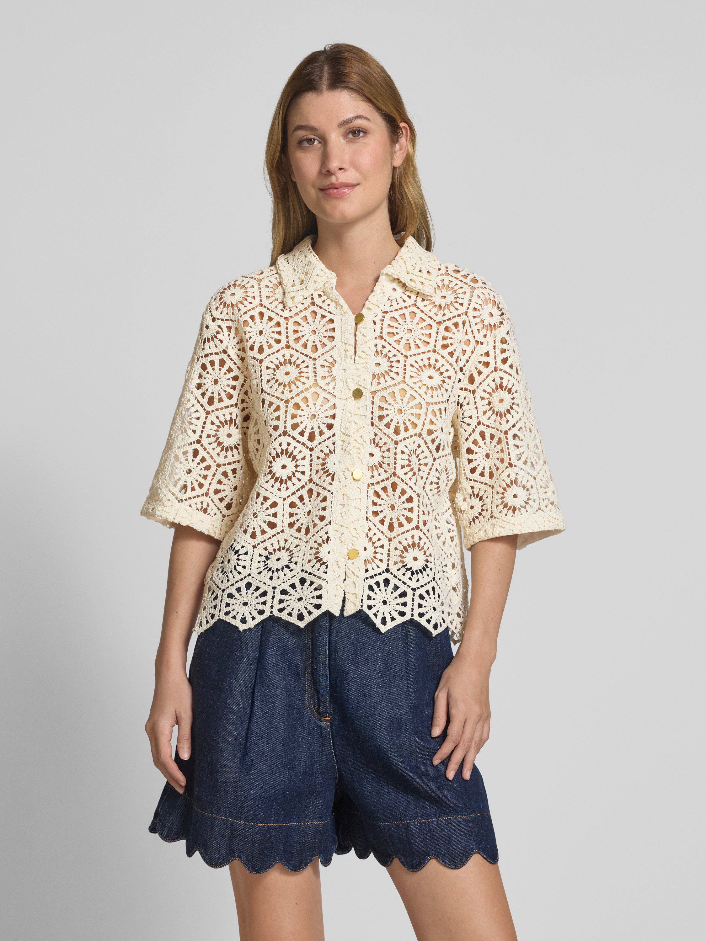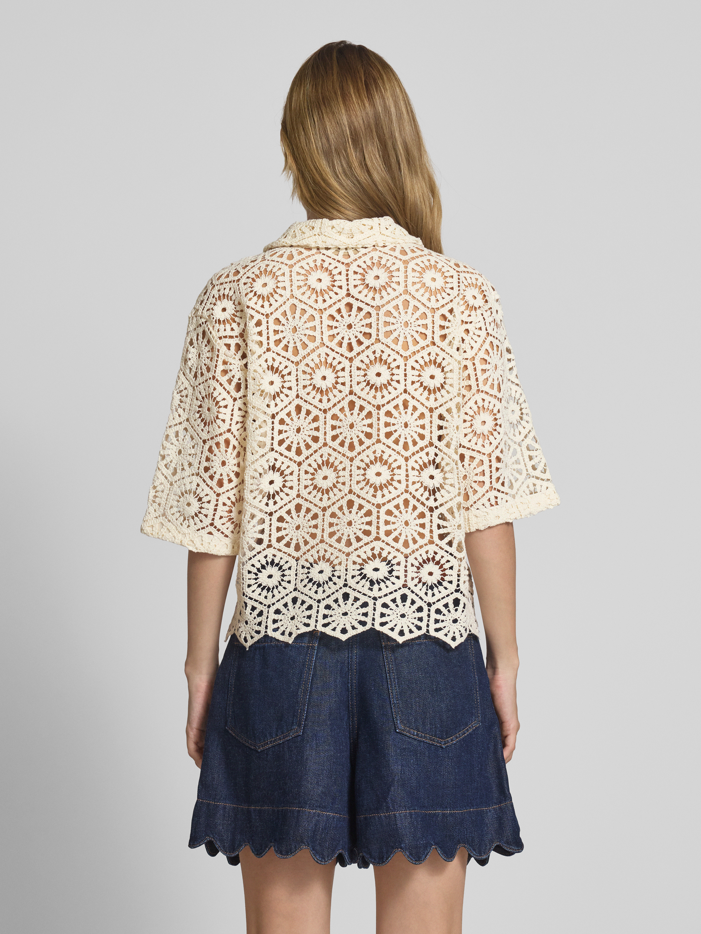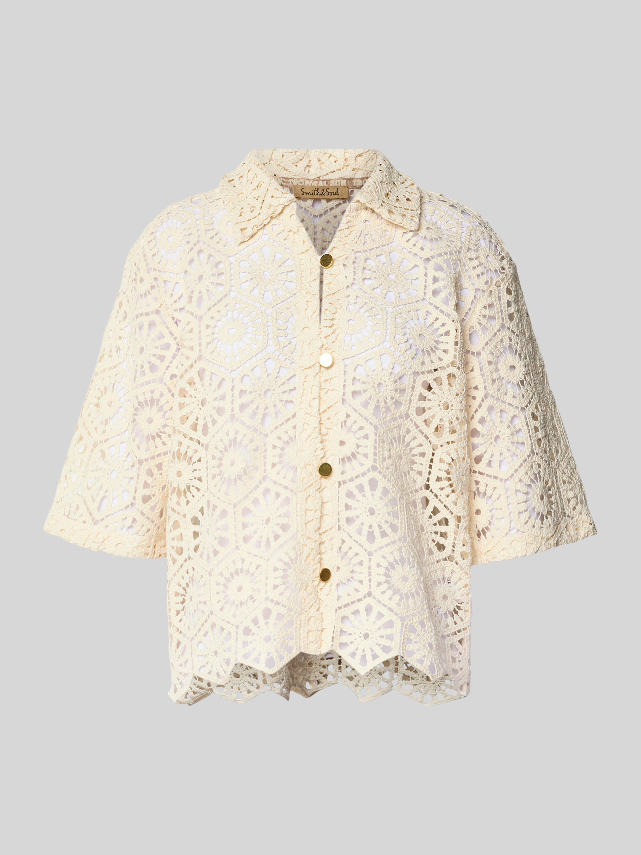 Bluzka o kroju relaxed fit z koronki szydełkowej - złamany biały