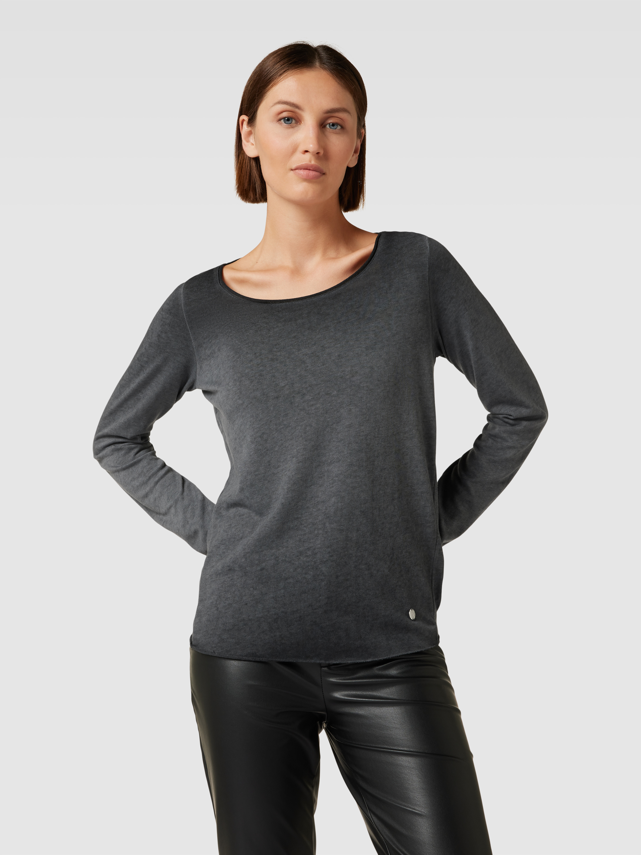 Bluzka z długim rękawem i aplikacją z logo - ciemnoszary