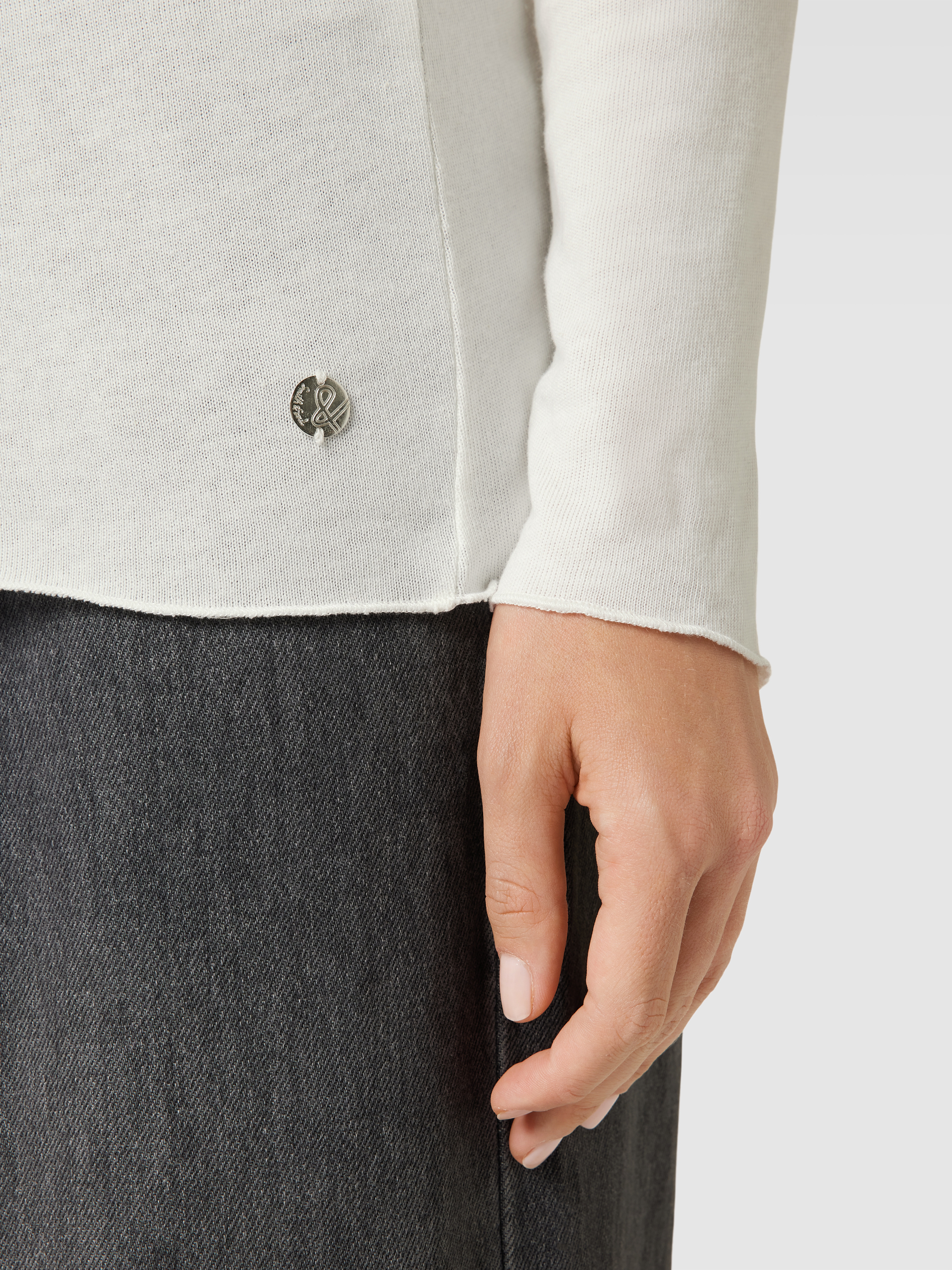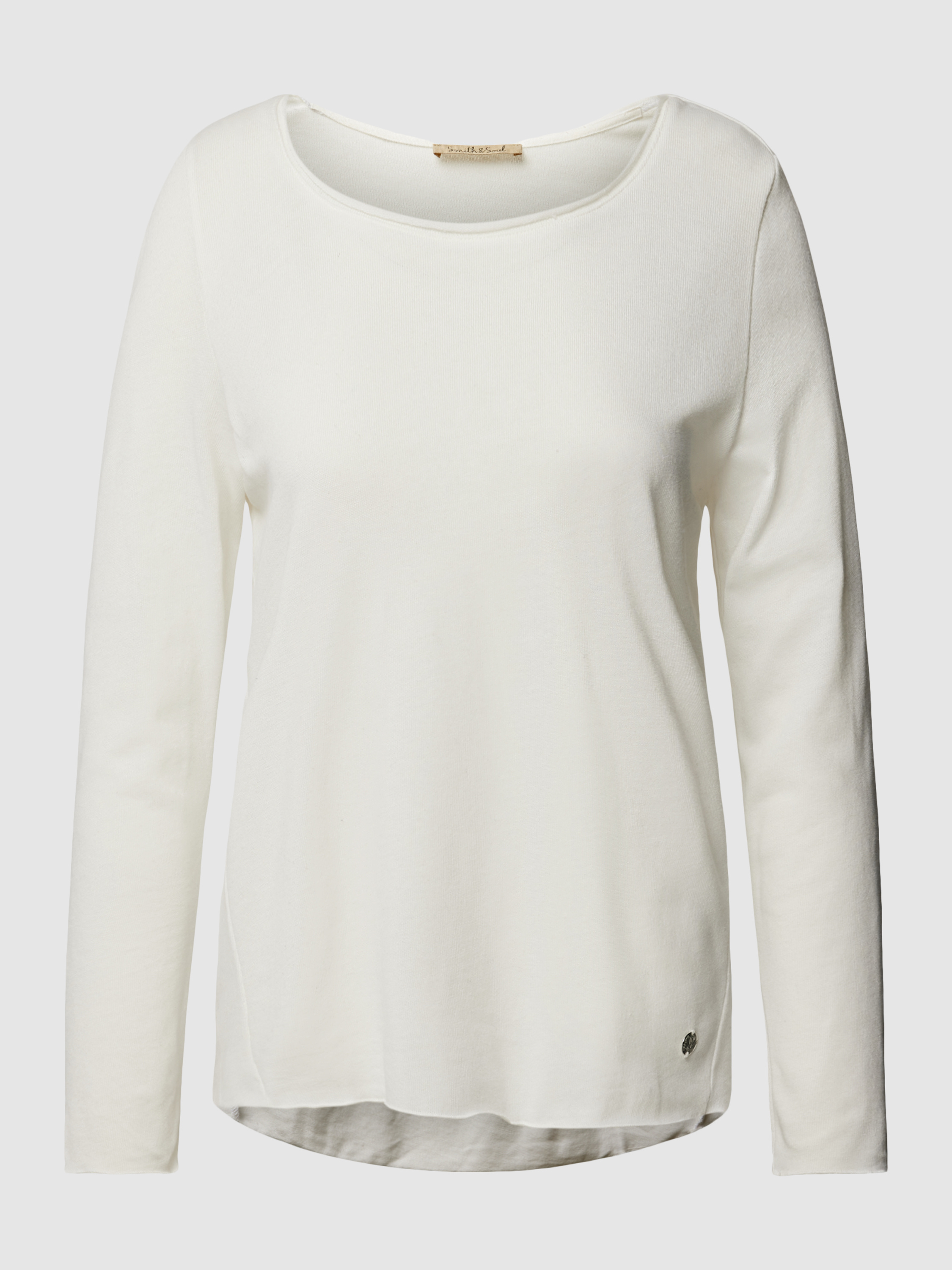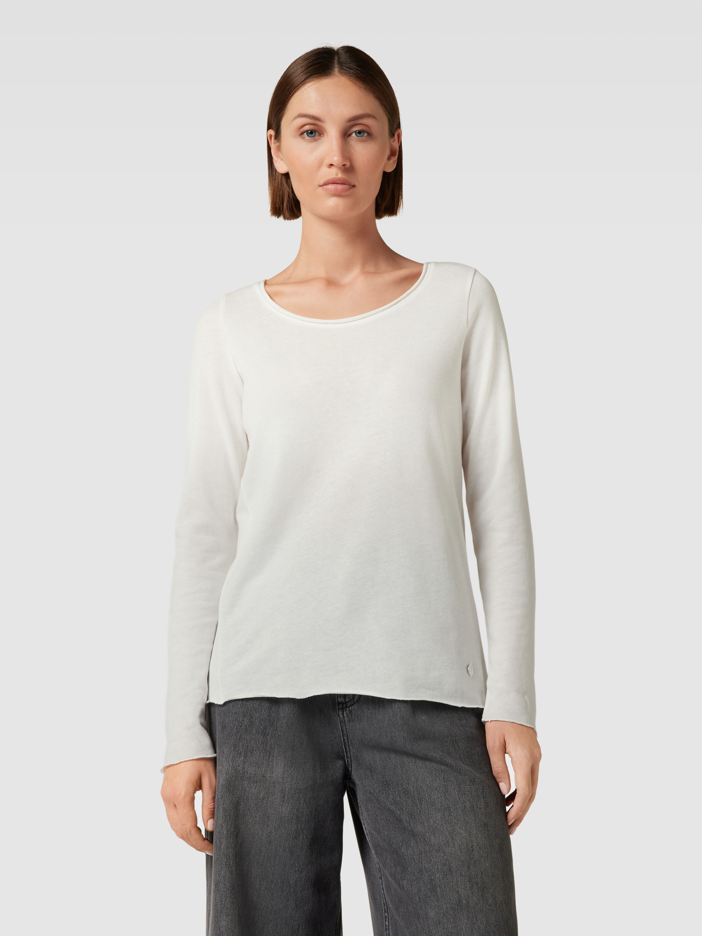 Bluzka z długim rękawem i aplikacją z logo - złamany biały