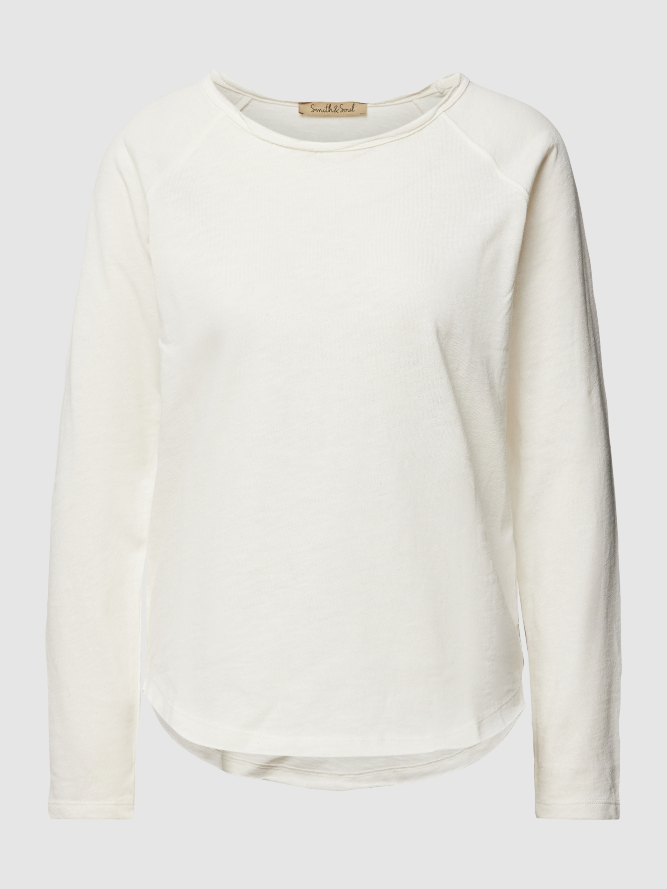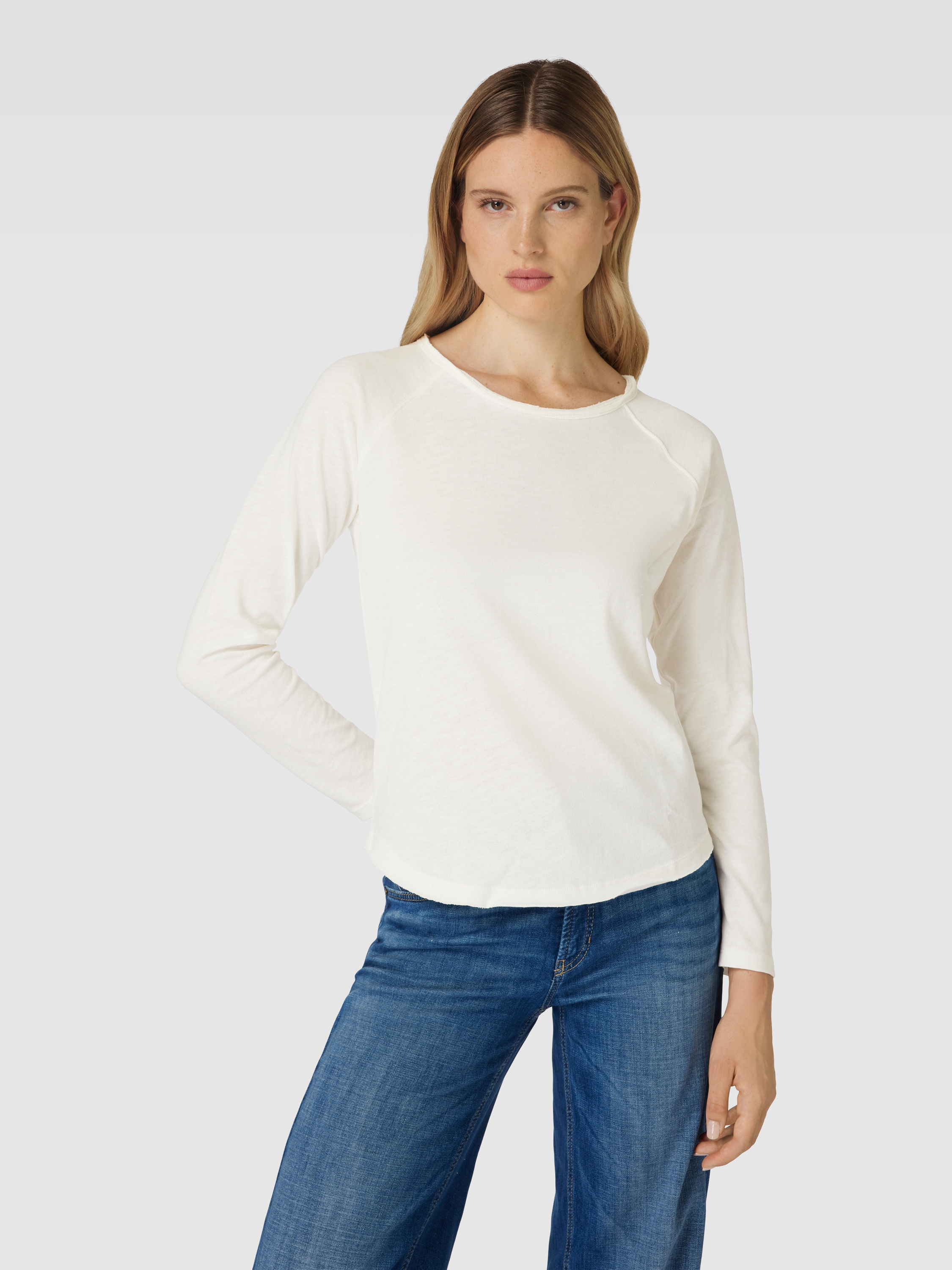 Bluzka z długim rękawem z dekoltem okrągłym - złamany biały