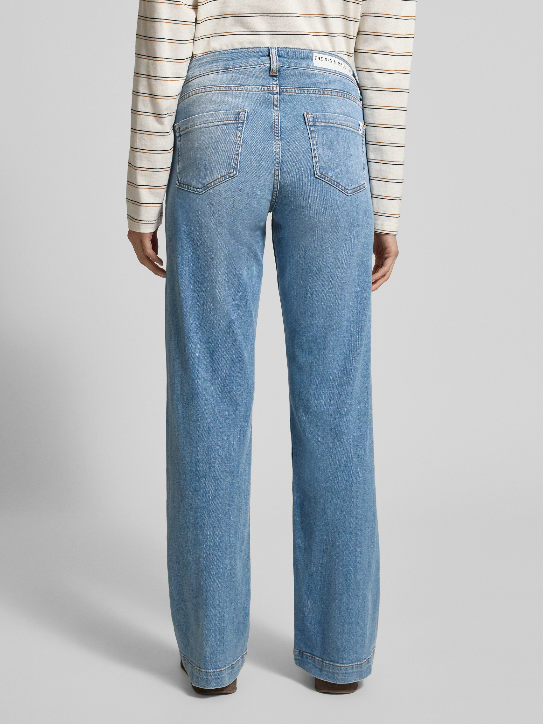 Jeansy z szeroką nogawką i przetarciami model ‘Sina’ - jeansowy niebieski