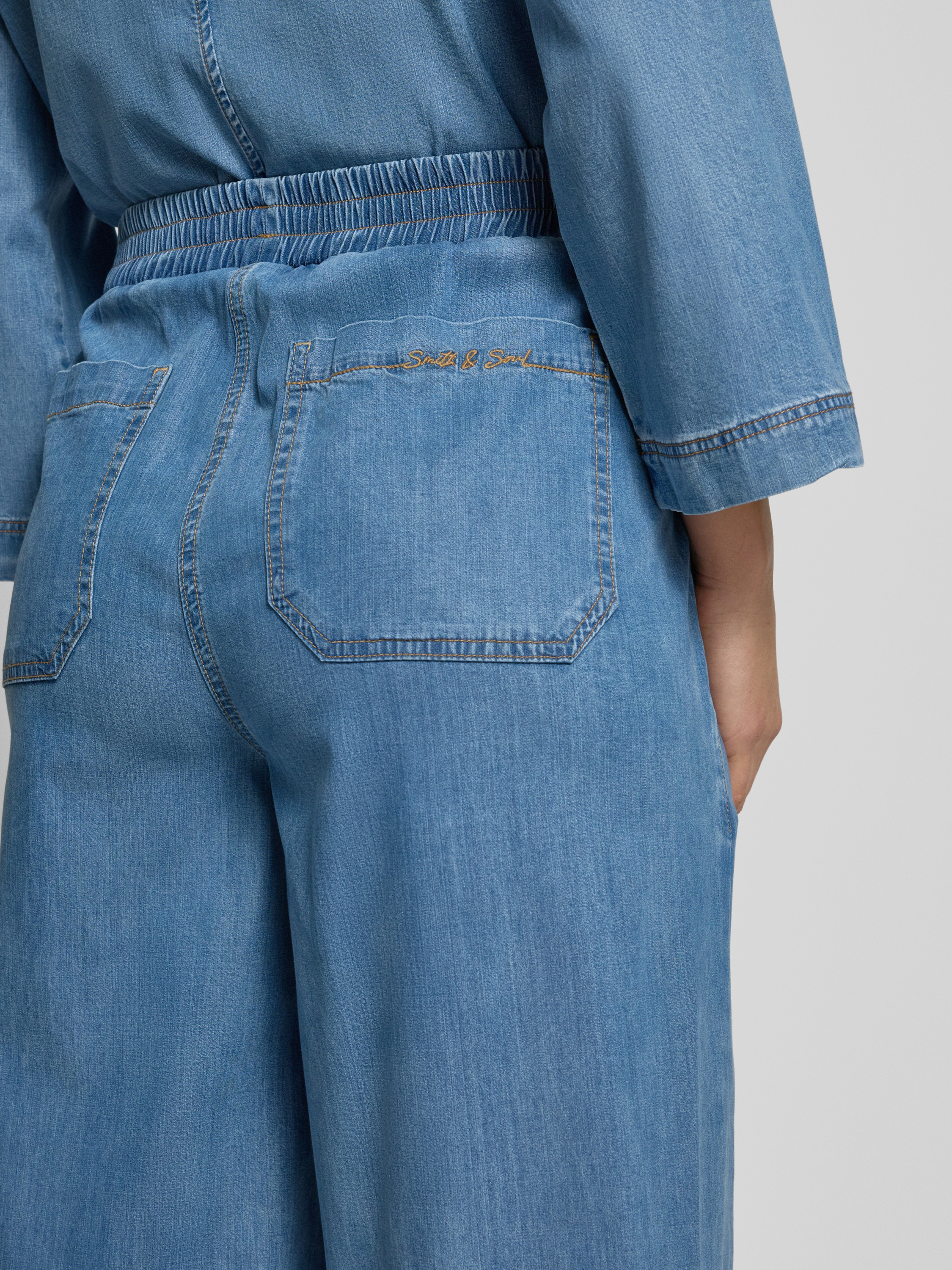 Spodnie materiałowe z elastycznym pasem - niebieski