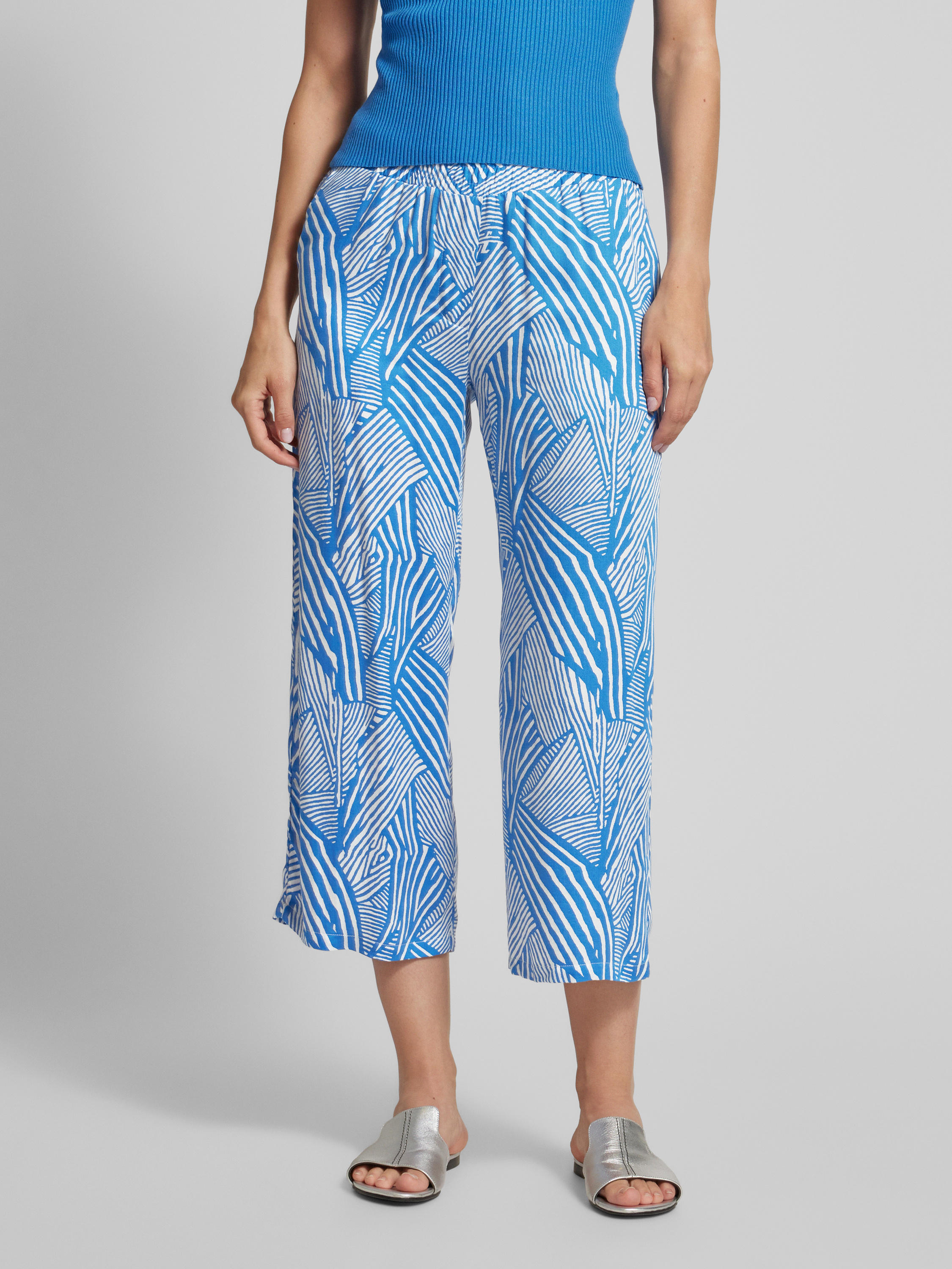 Spodnie materiałowe z prostą nogawką i elastycznym pasem - królewski niebieski