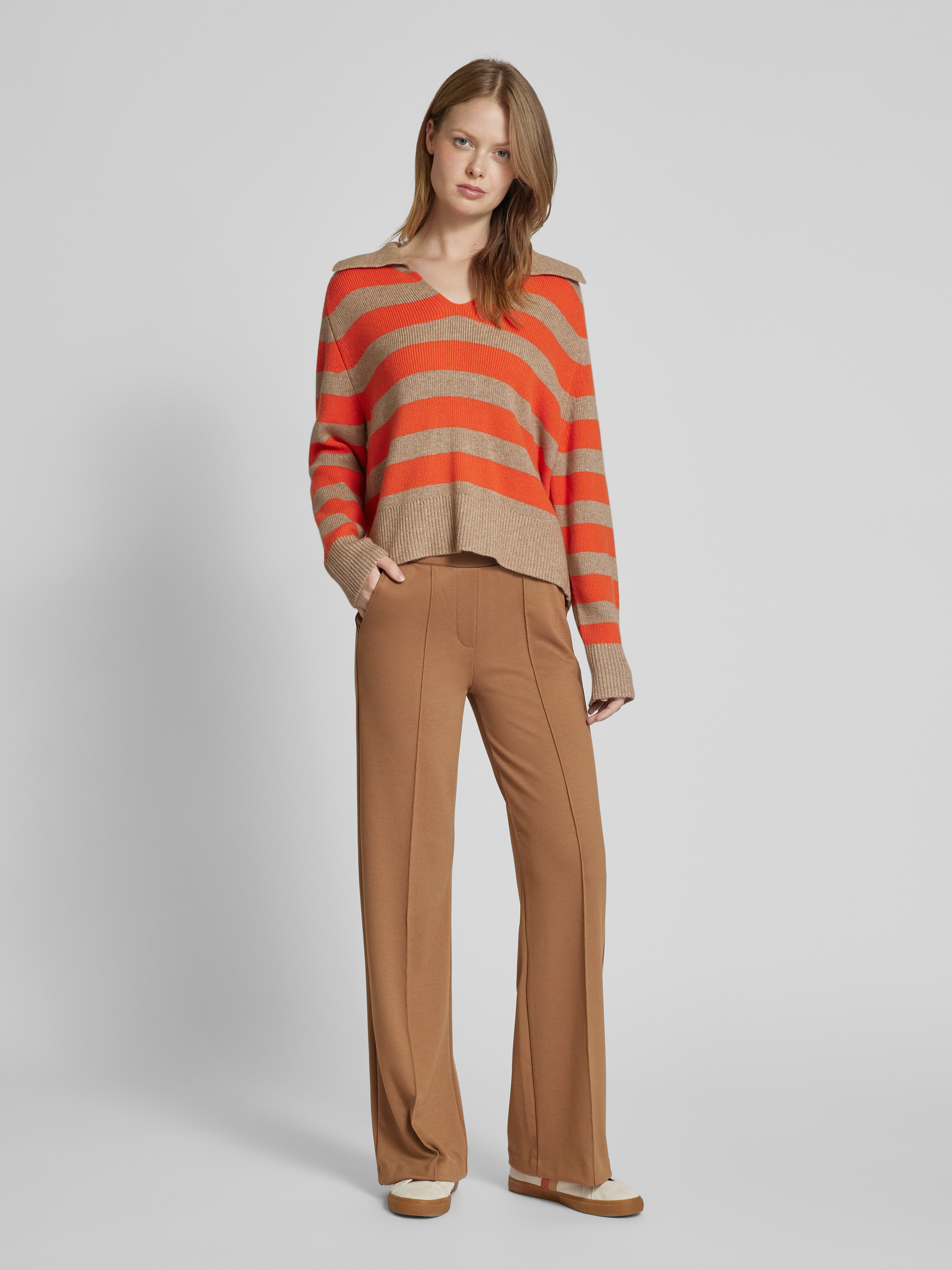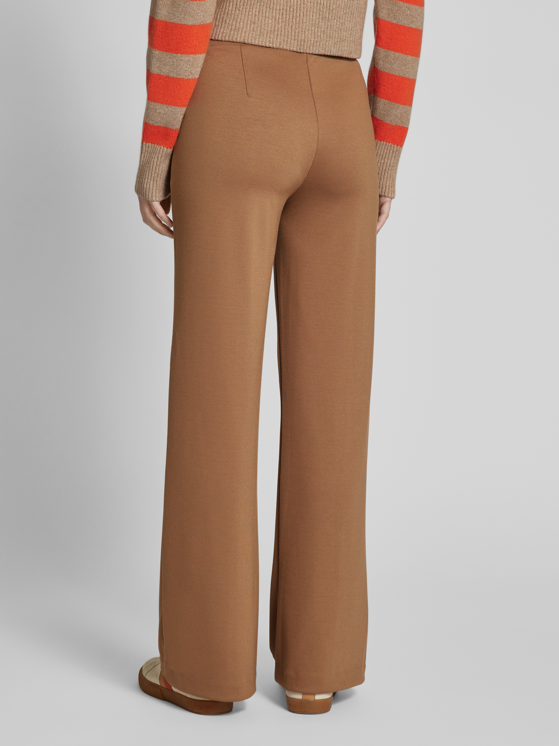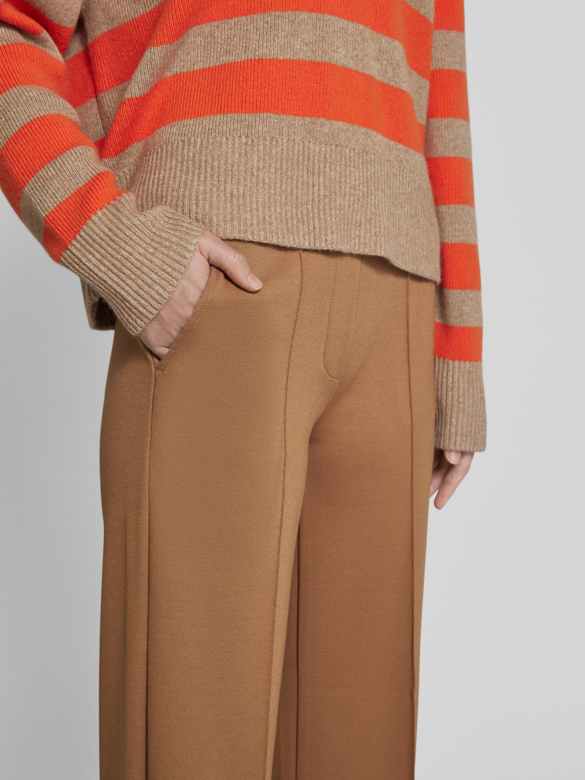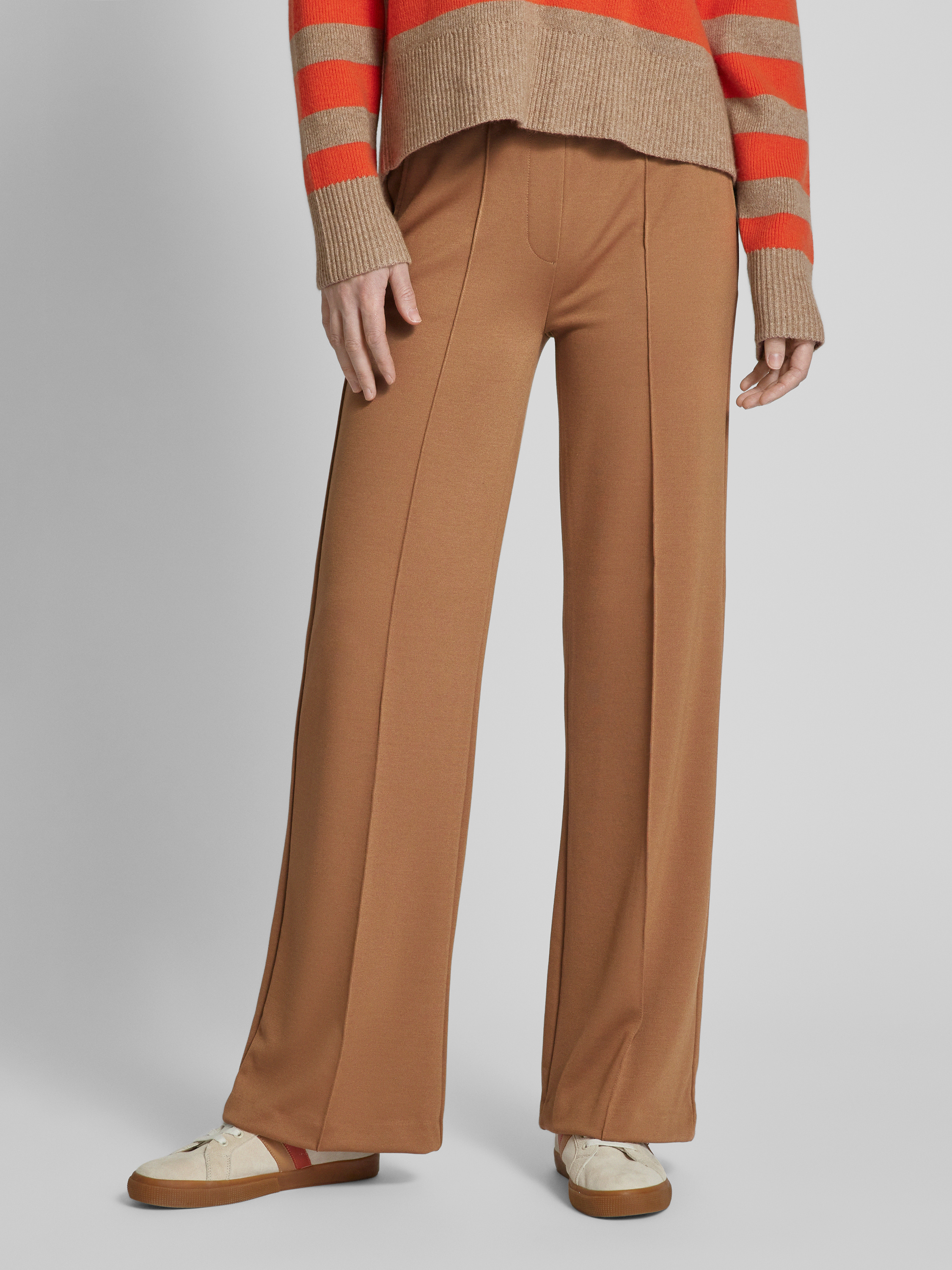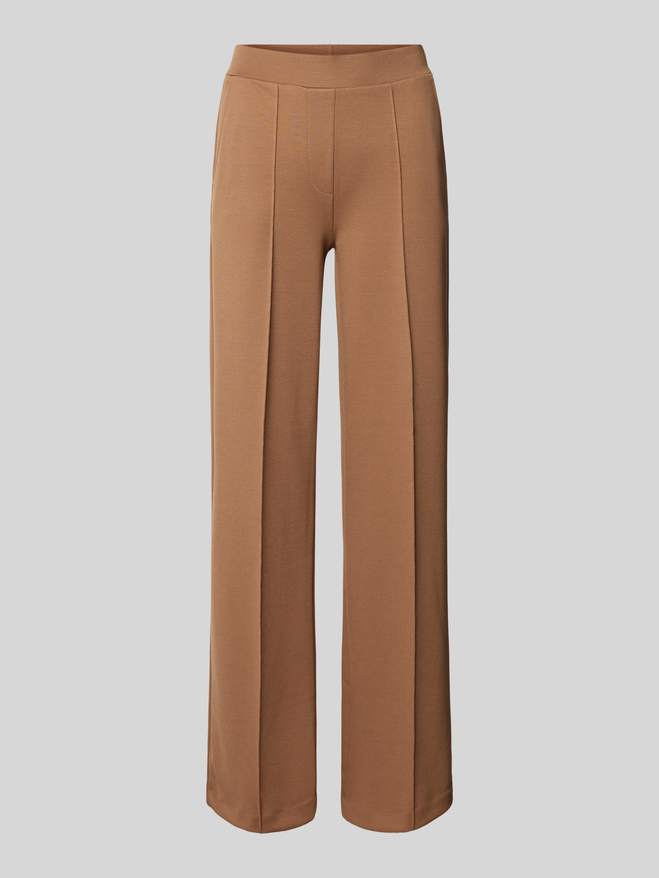 Spodnie materiałowe z prostą nogawką z przeszytym kantem - jasnobrązowy