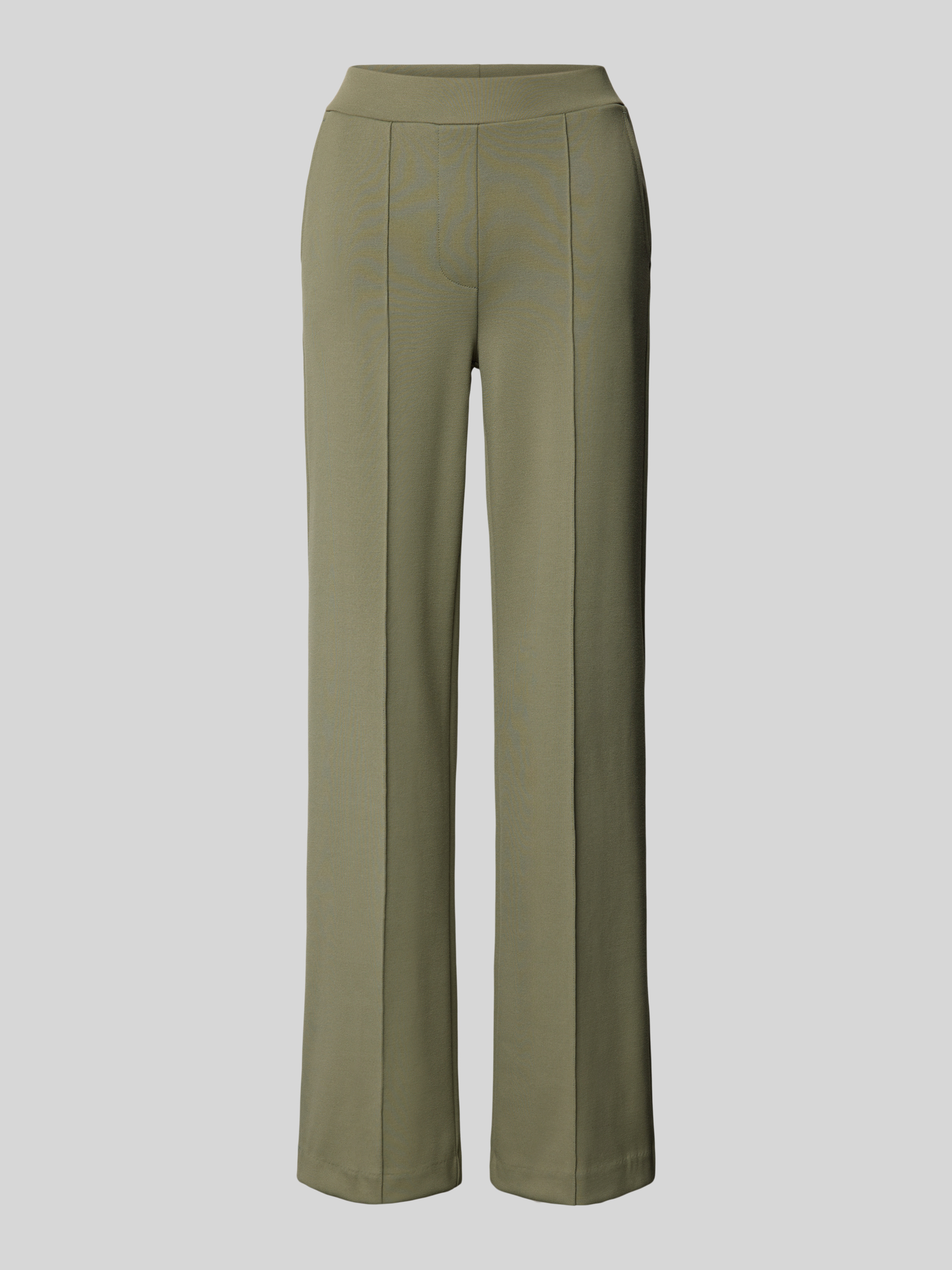 Spodnie ze szwami podłużnymi i elastycznym pasem - khaki