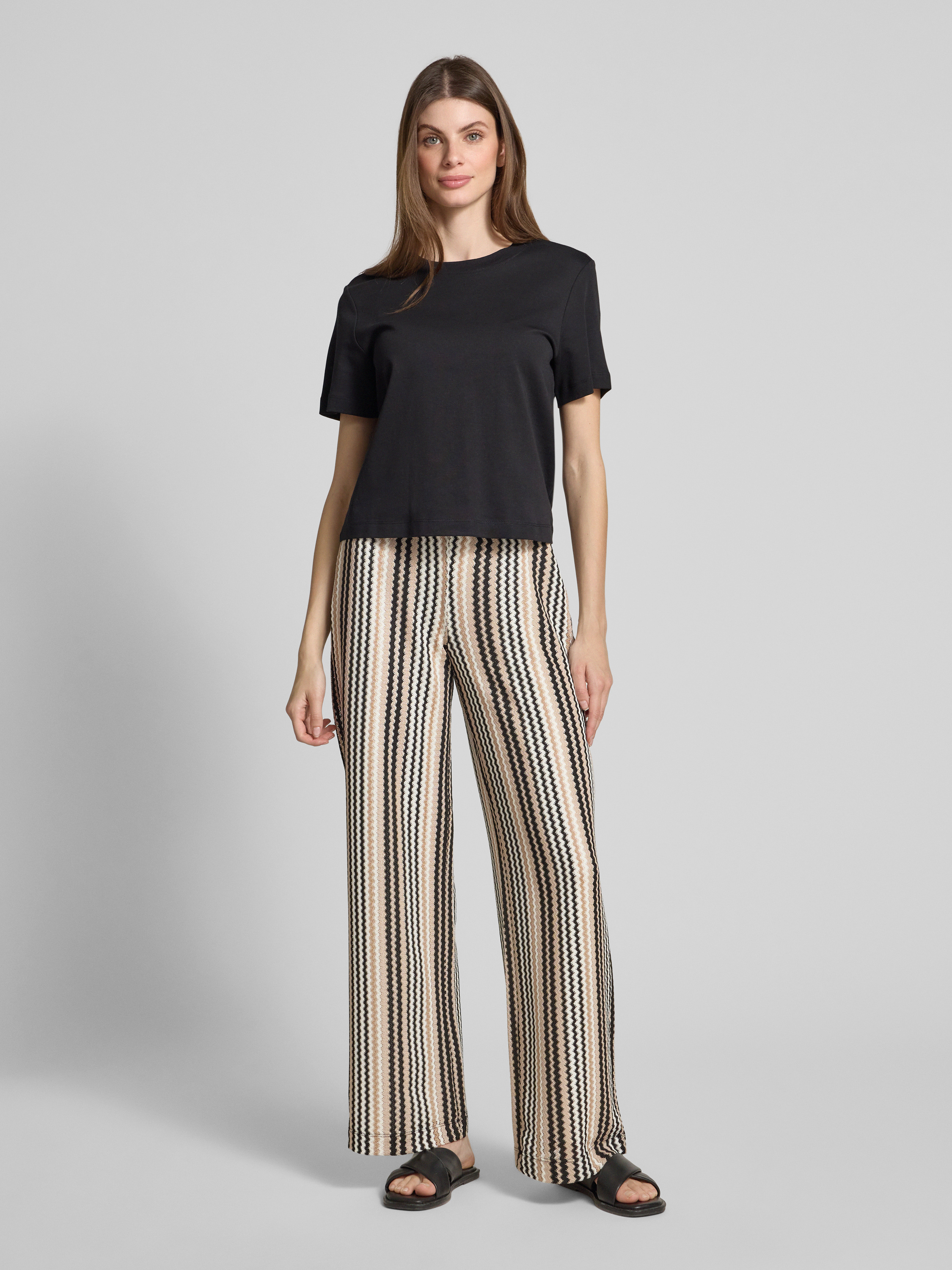 Spodnie ze wzorem na całej powierzchni i elastycznym pasem - beżowy