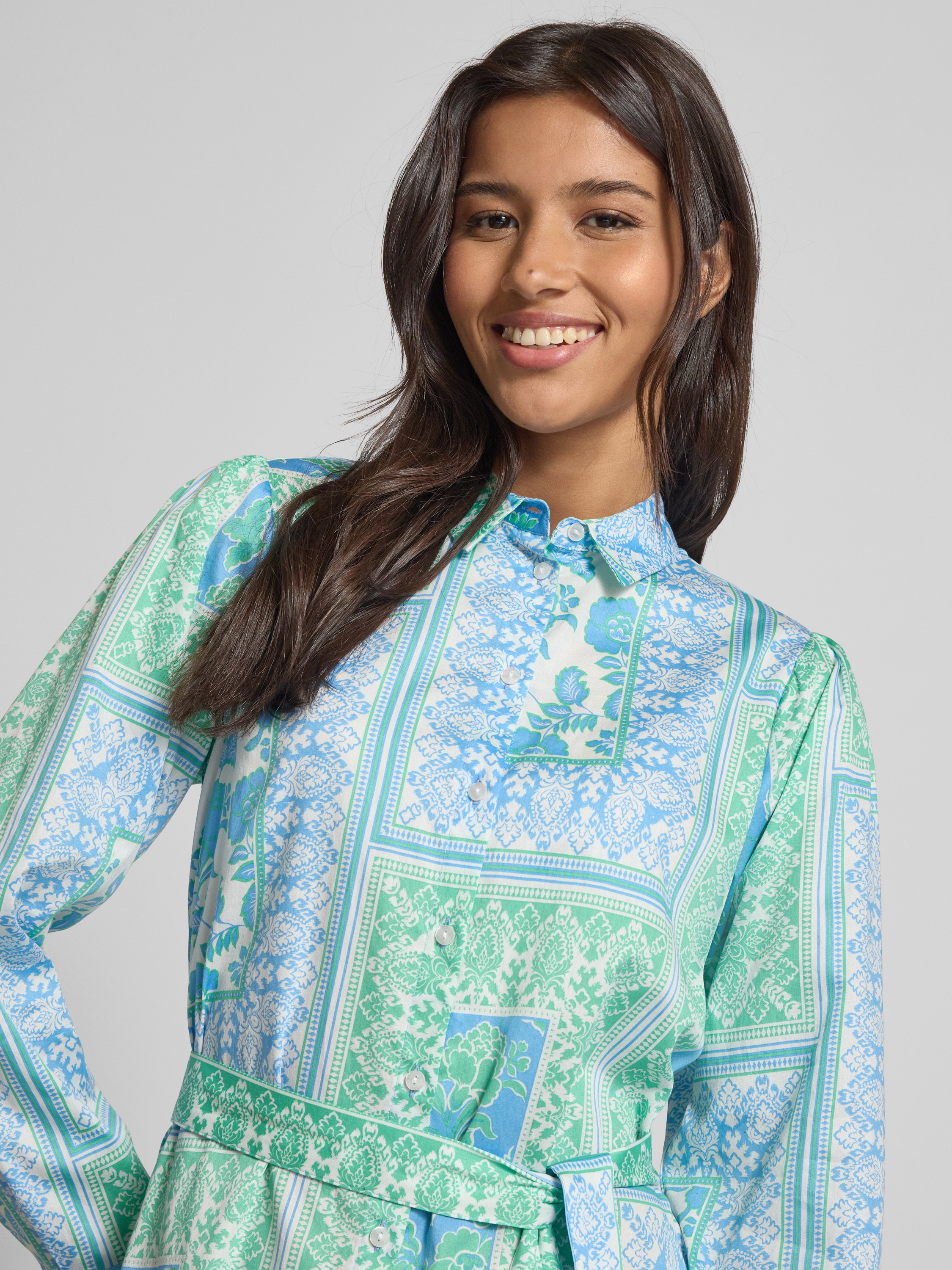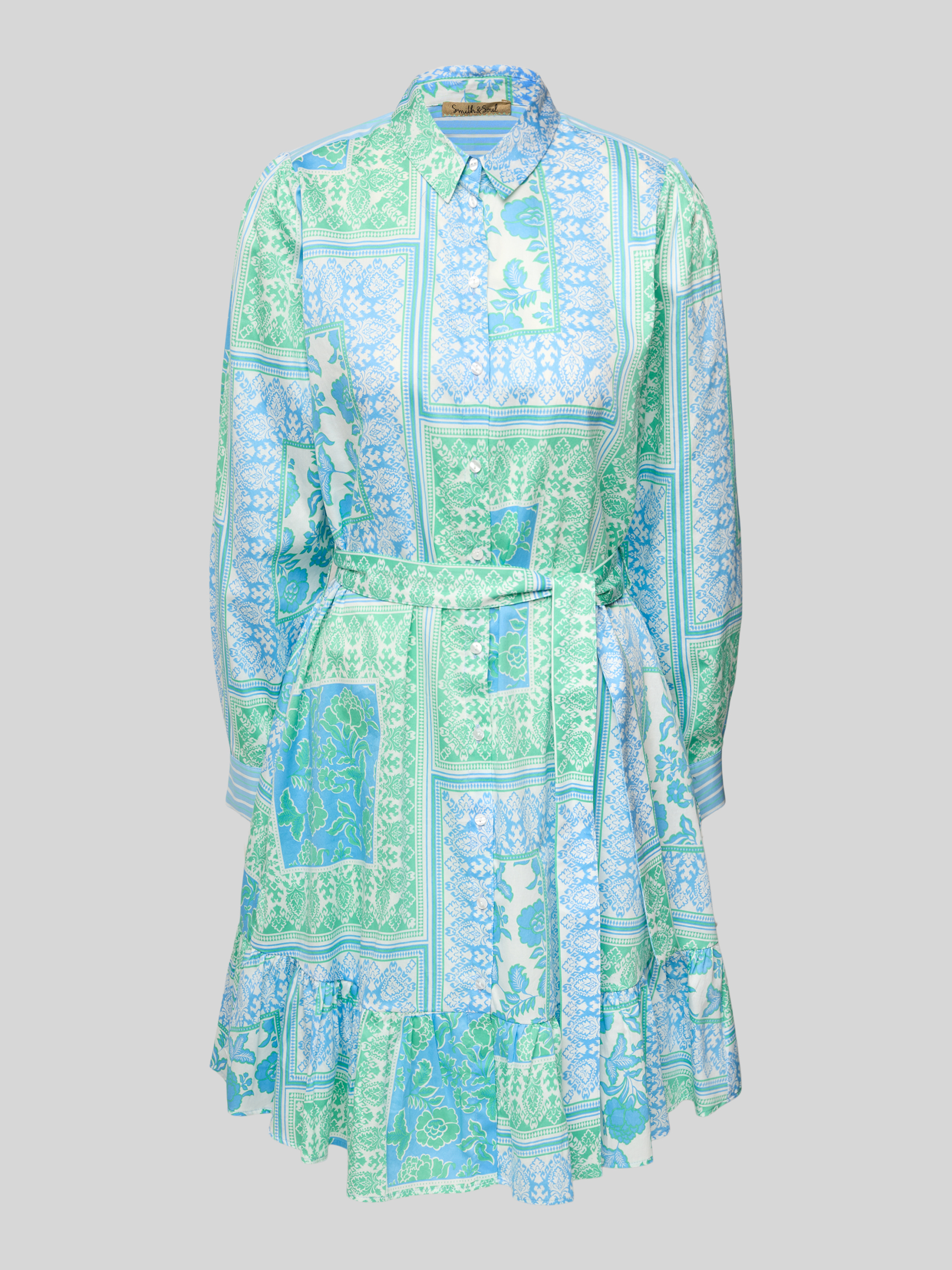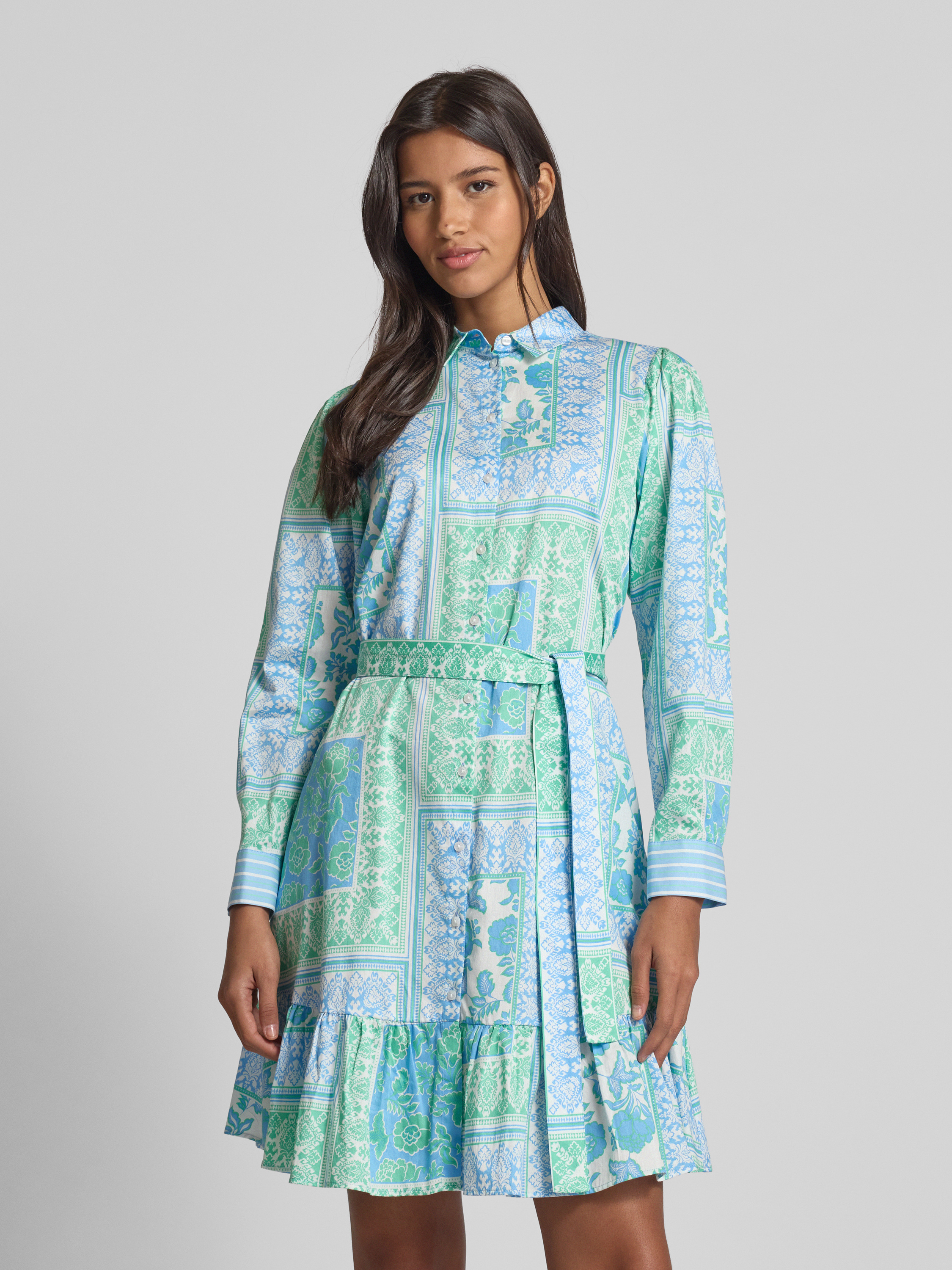 Sukienka koszulowa o długości do kolan z wiązanym paskiem - zielony