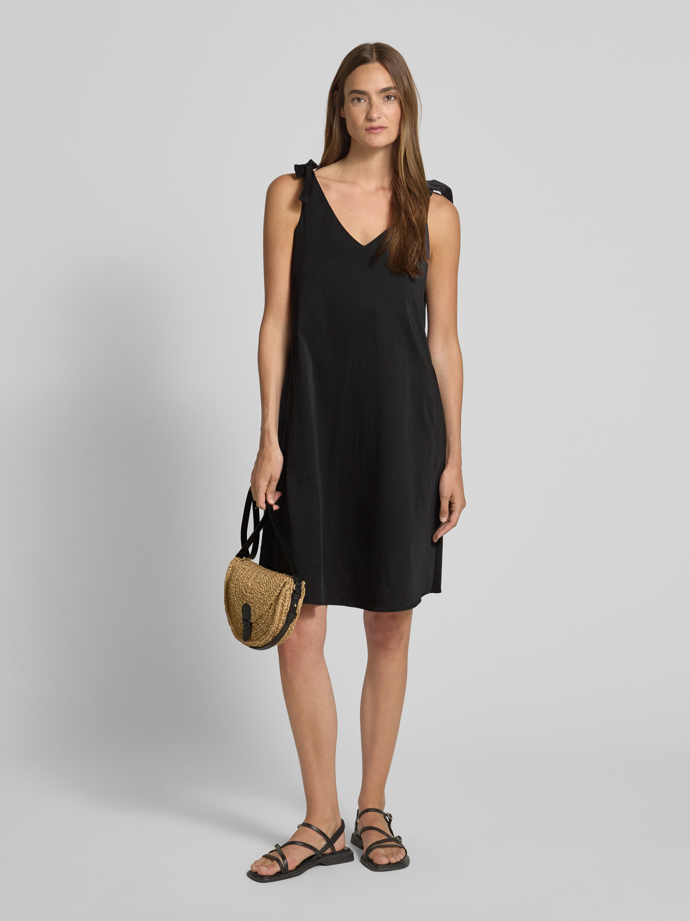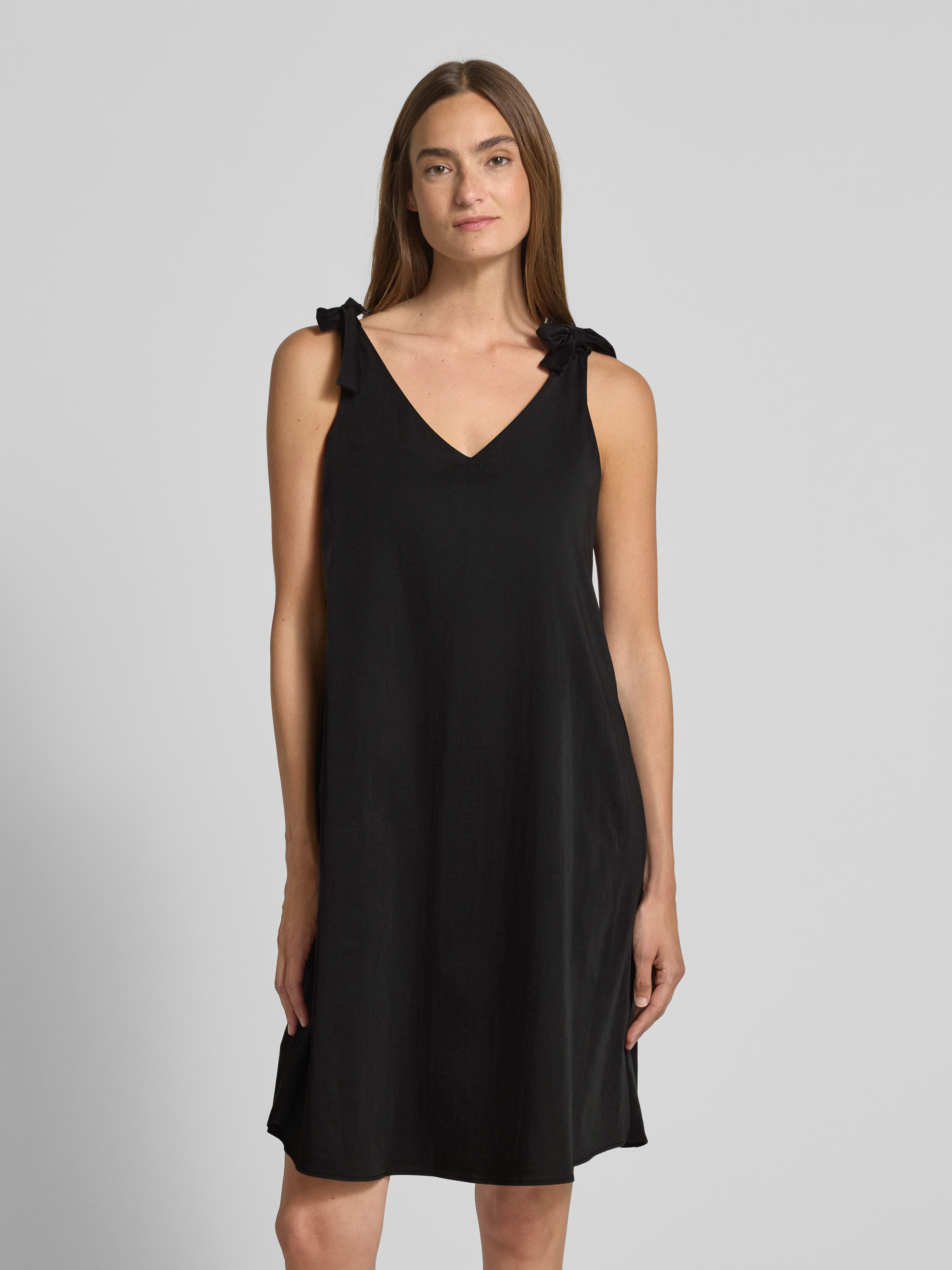 Sukienka o długości do kolan z dekoltem w serek - czarny