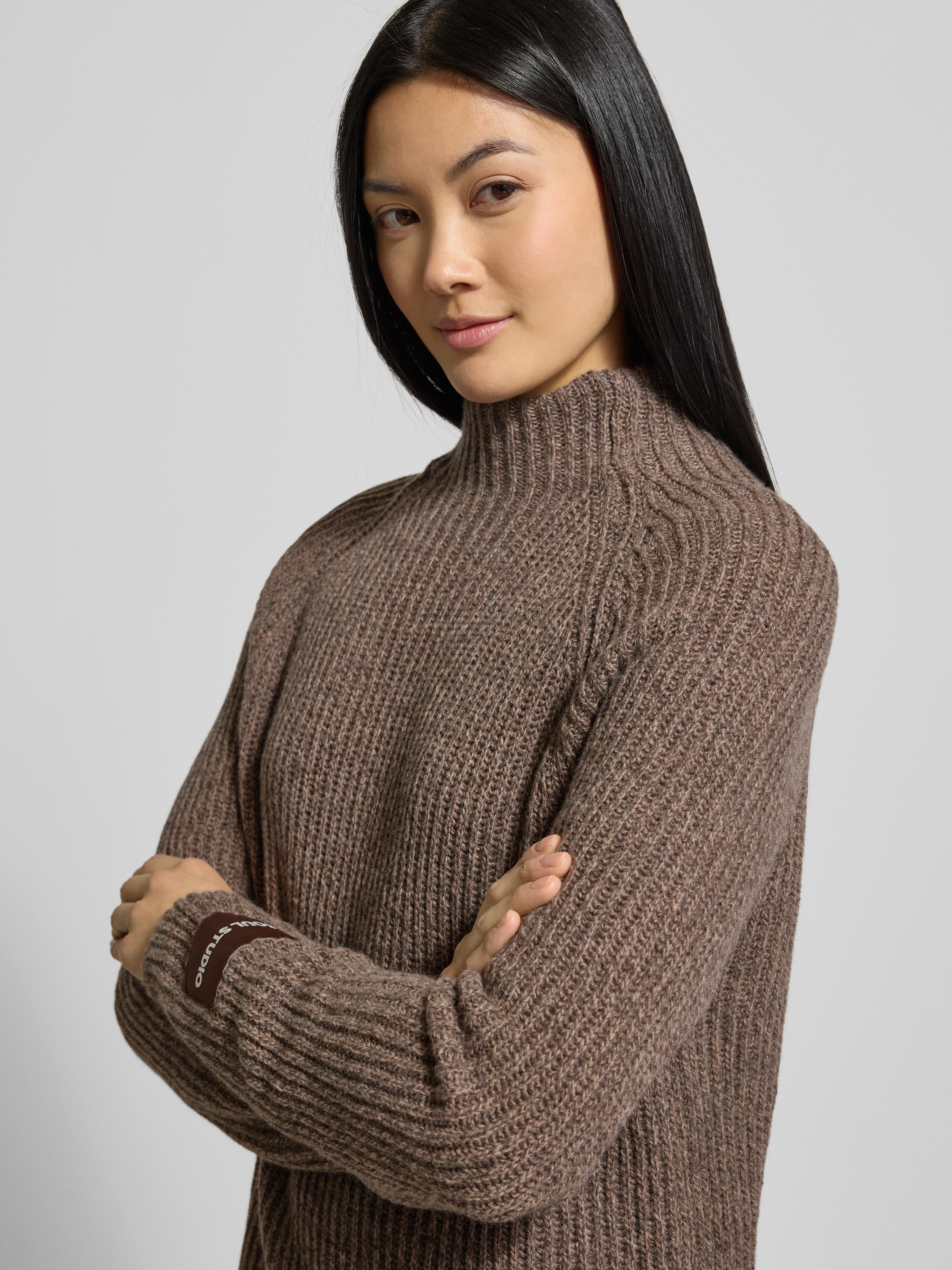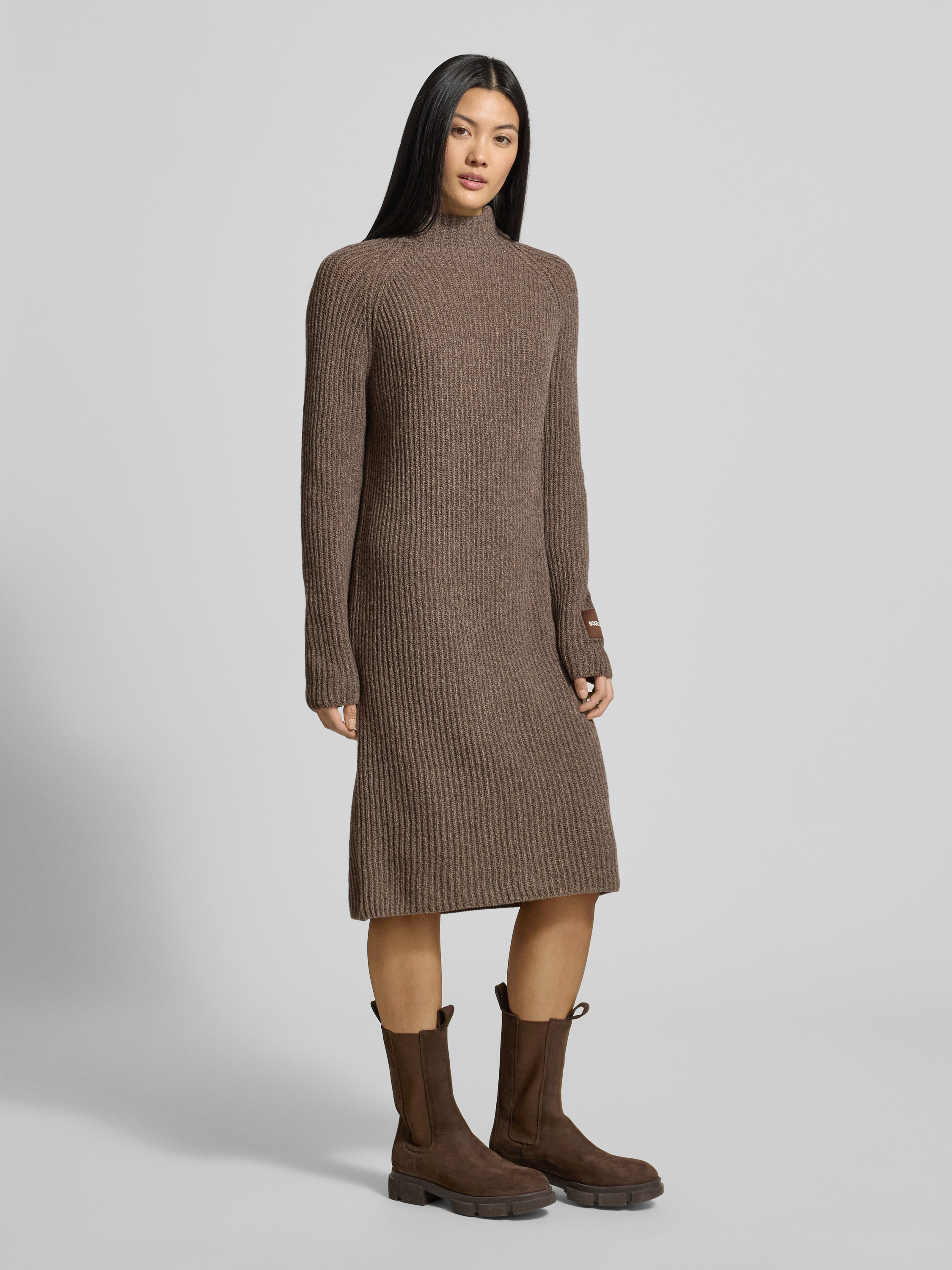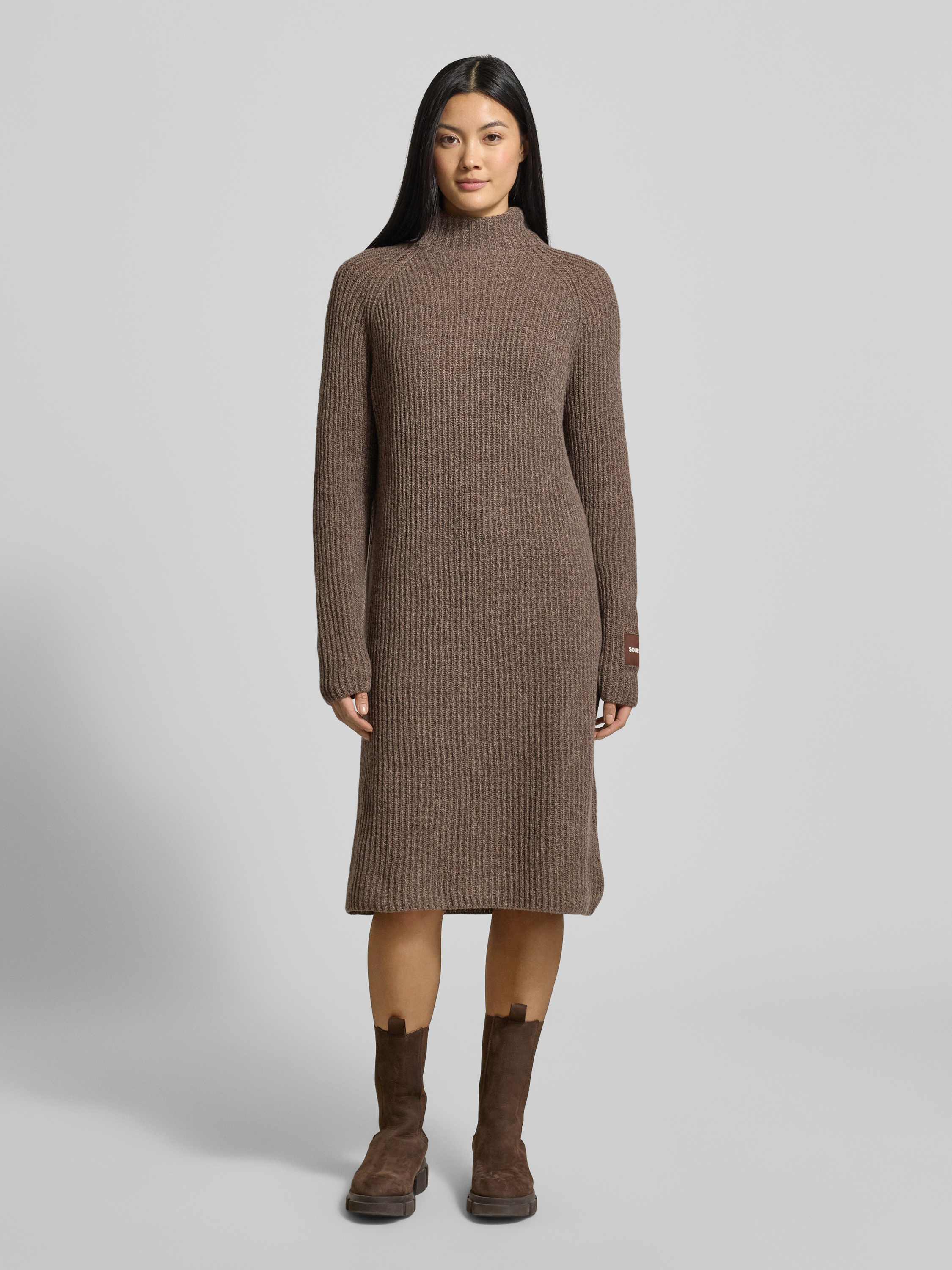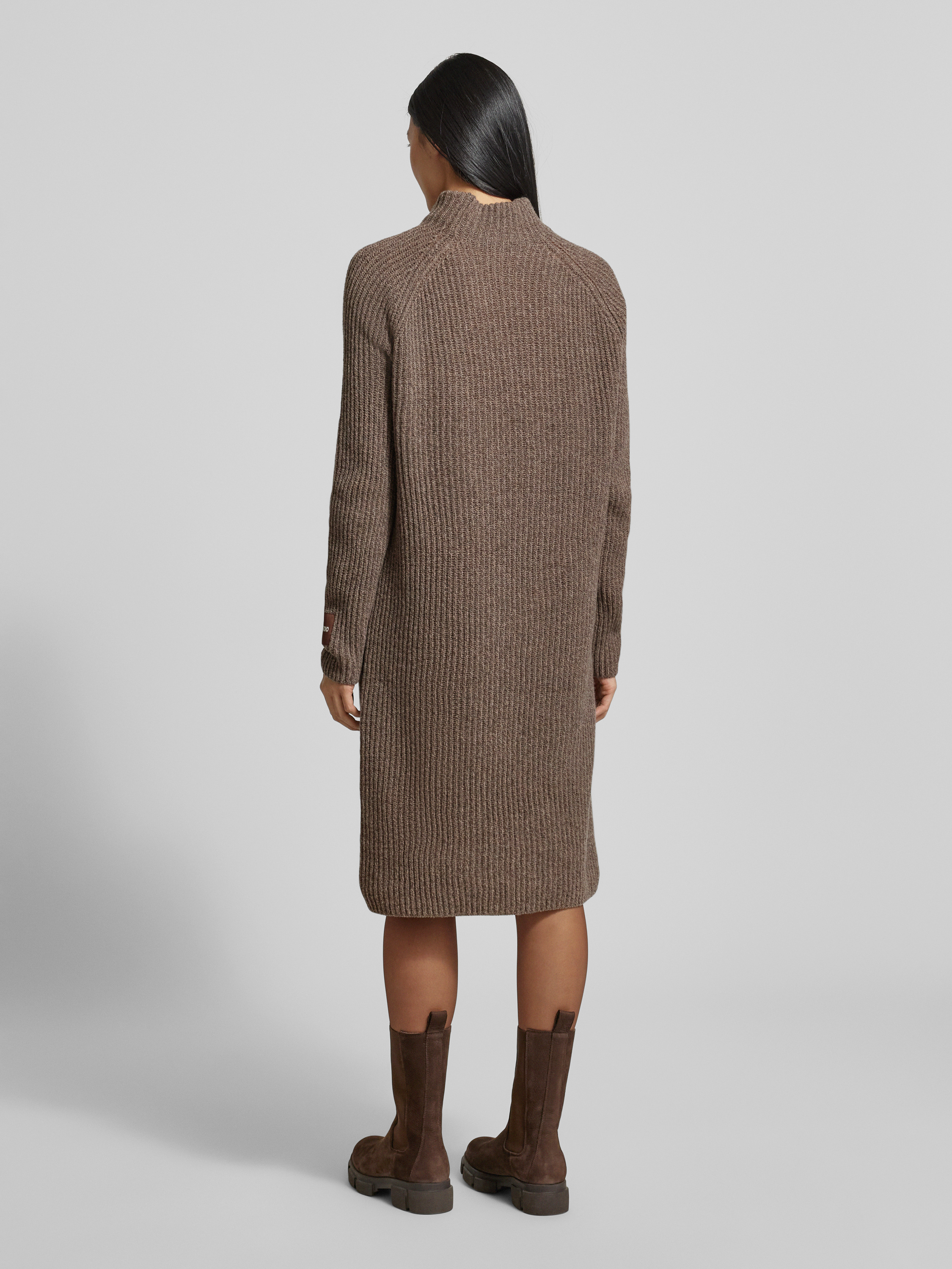 Sukienka z dzianiny o długości do kolan ze stójką model ‘Mouline’ - ciemnobrązowy