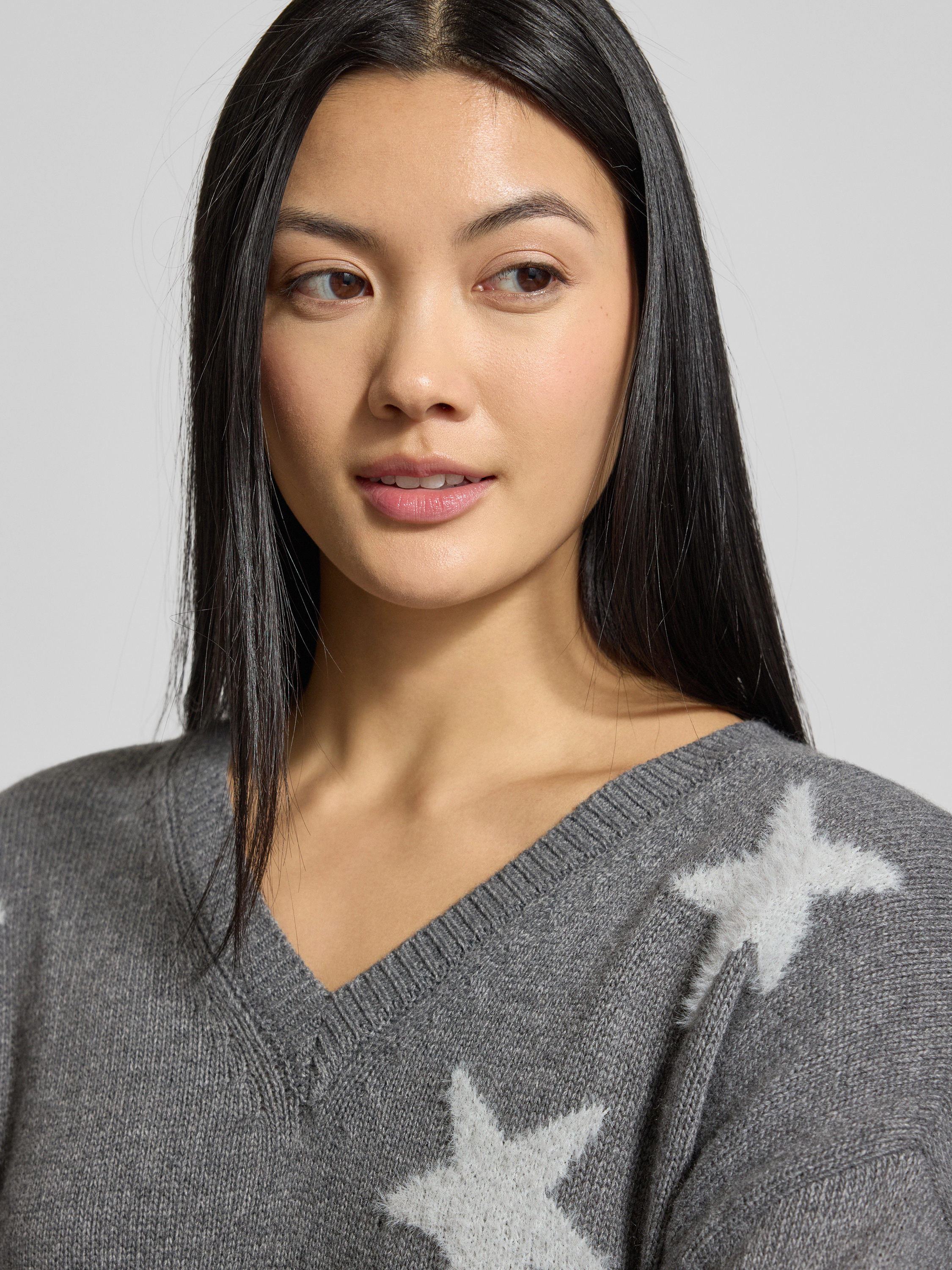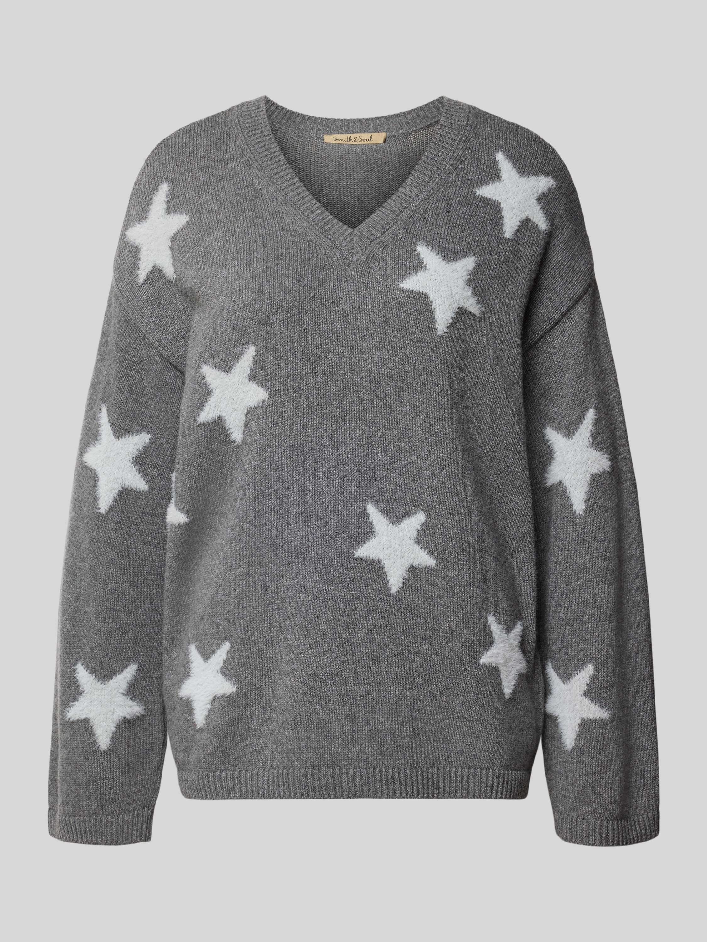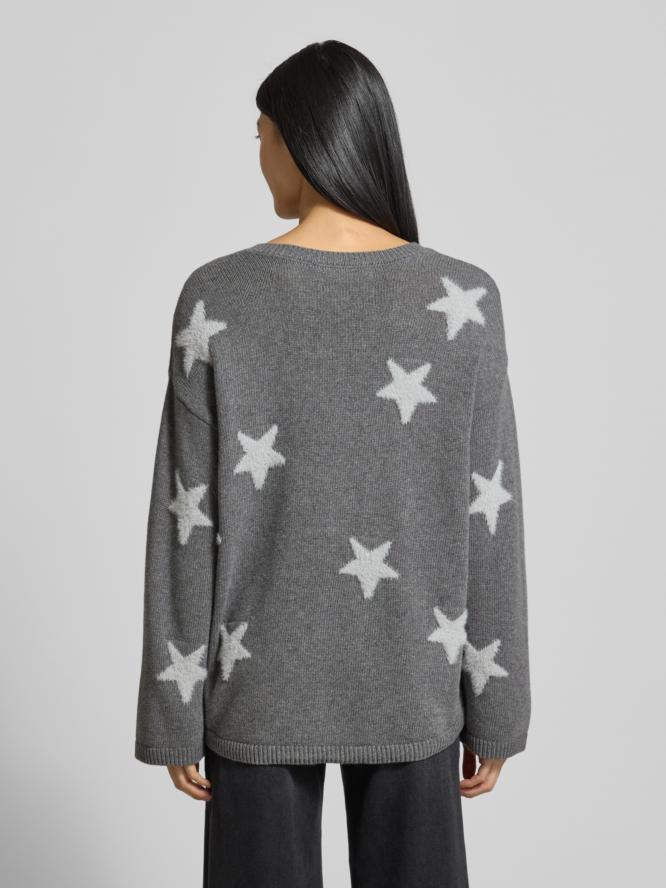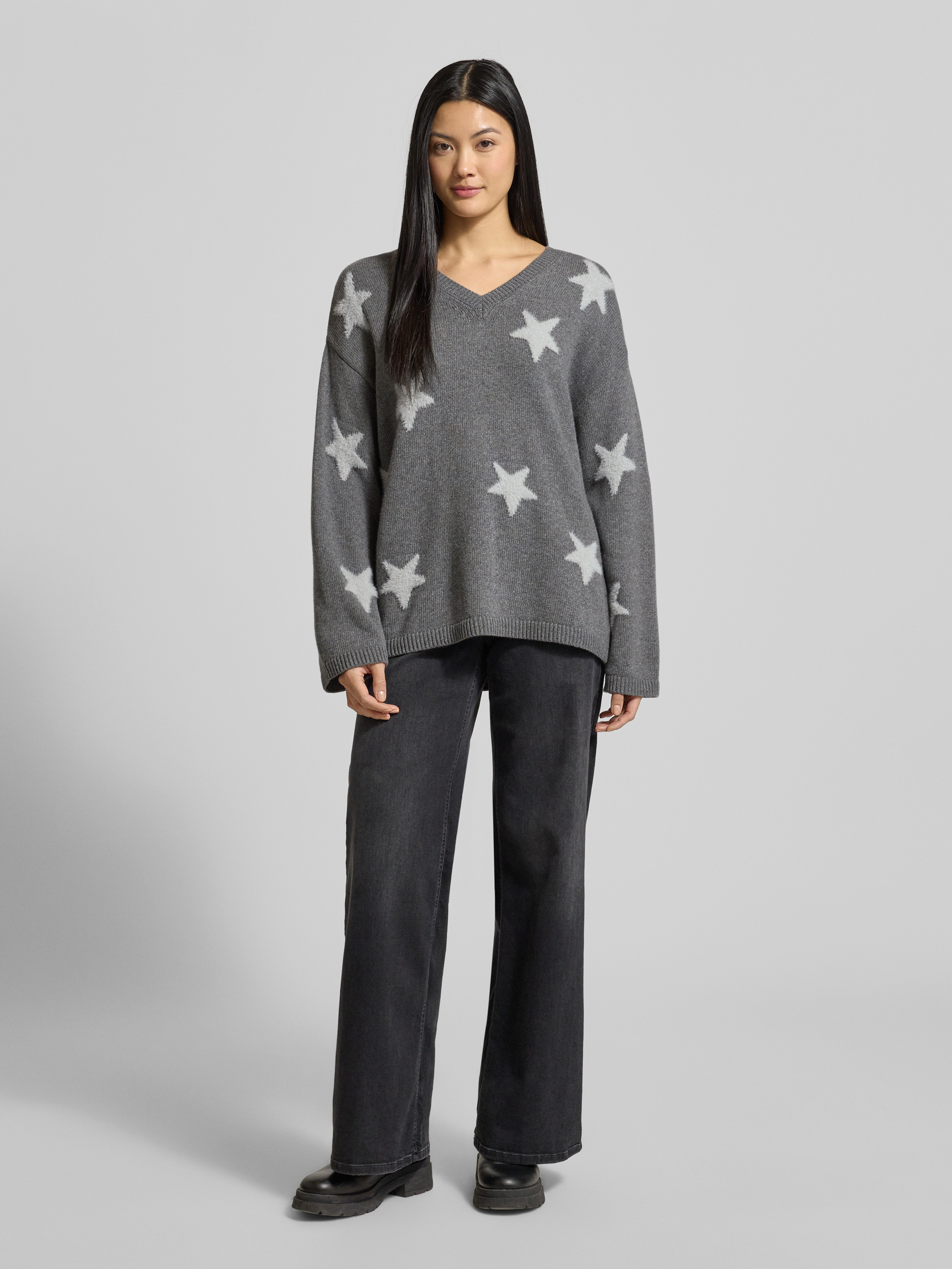 Sweter z dzianiny o luźnym kroju z domieszką kaszmiru - średnioszary melanż