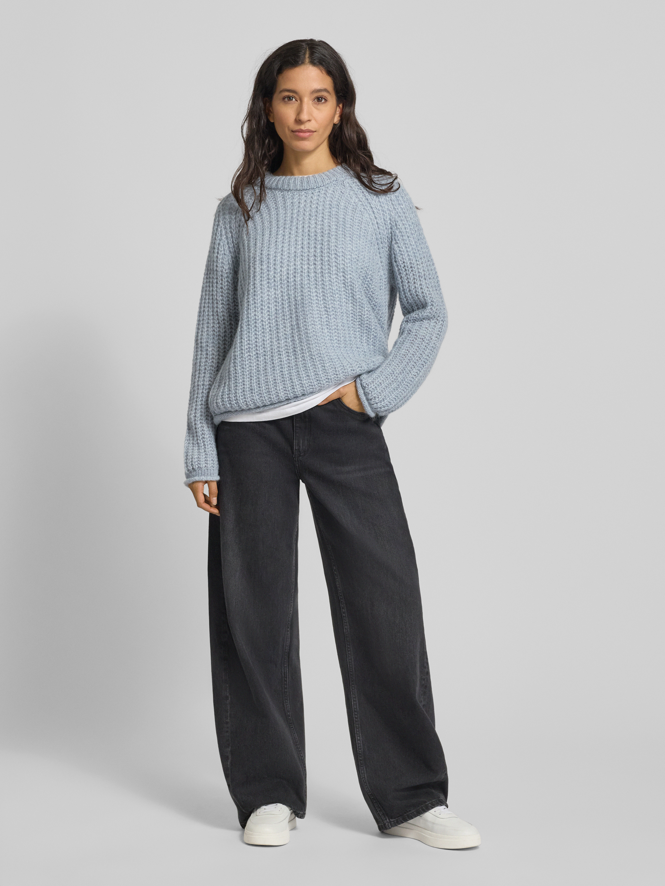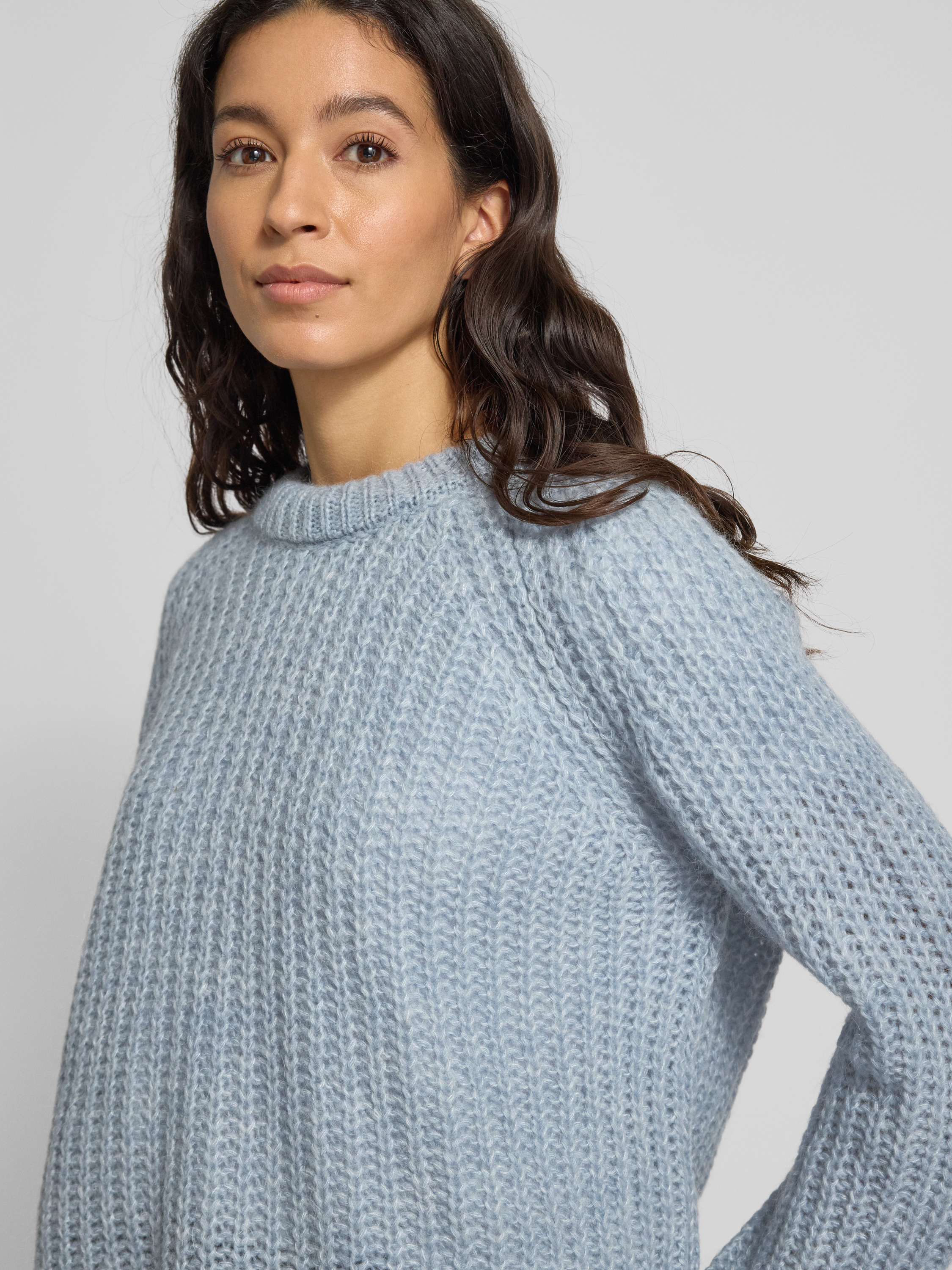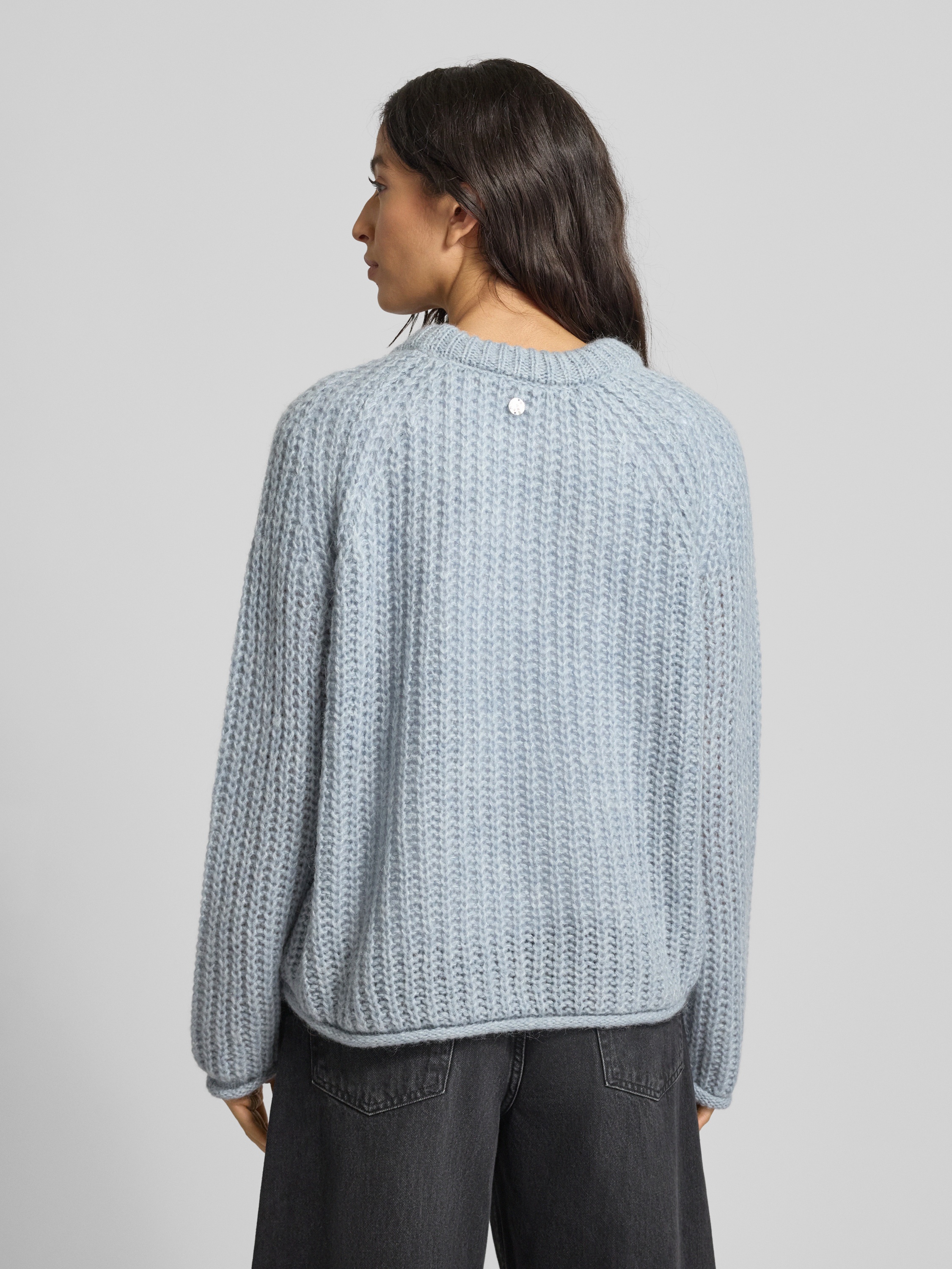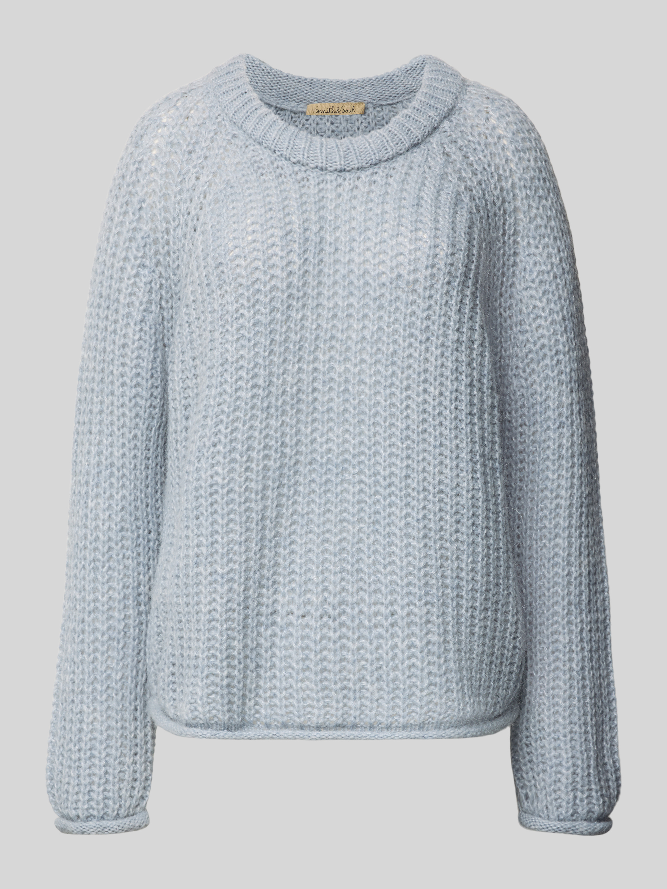 Sweter z dzianiny z okrągłym dekoltem - jasnoniebieski melanż