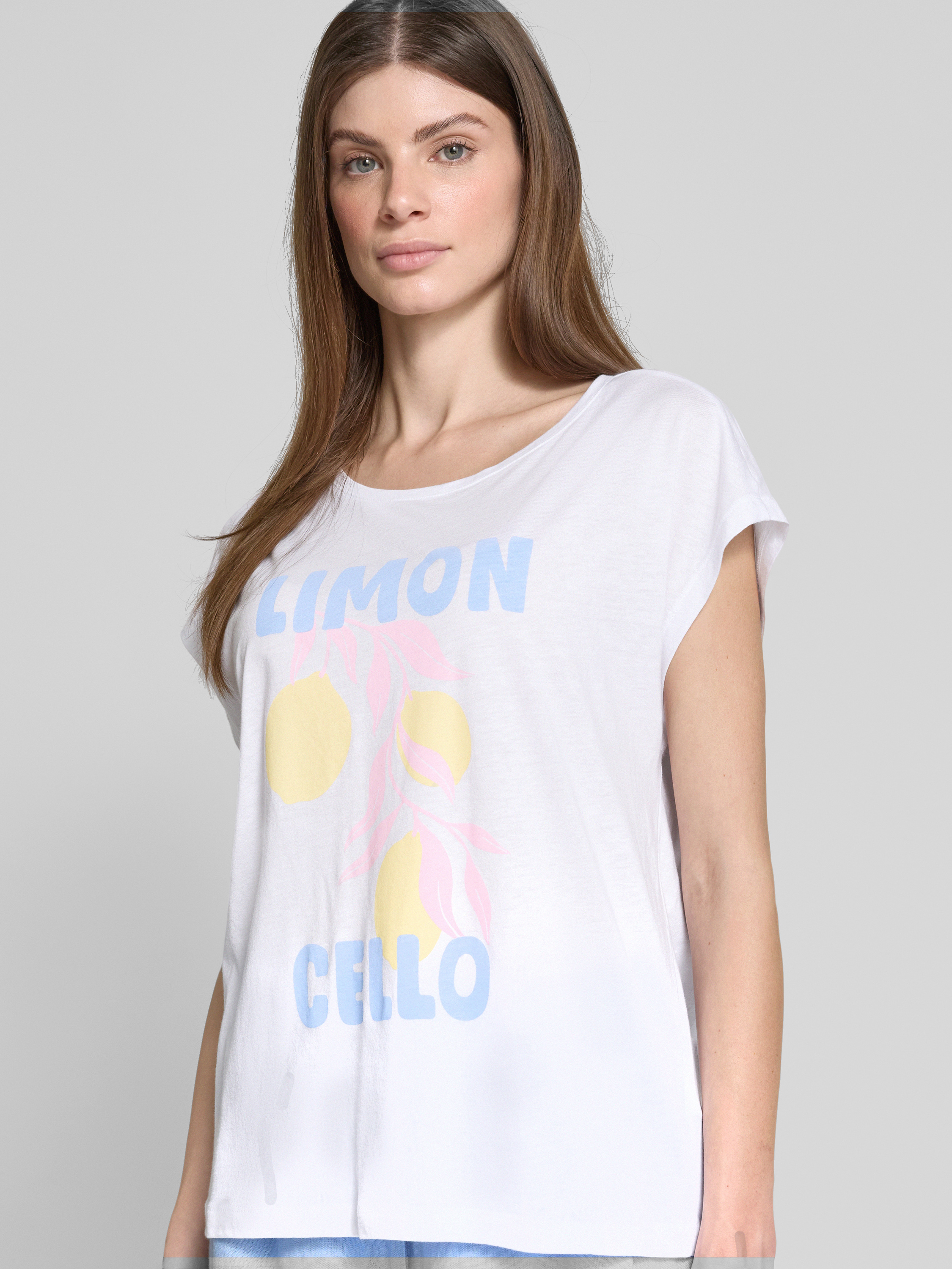 T-shirt z nadrukiem z motywem i okrągłym dekoltem - biały