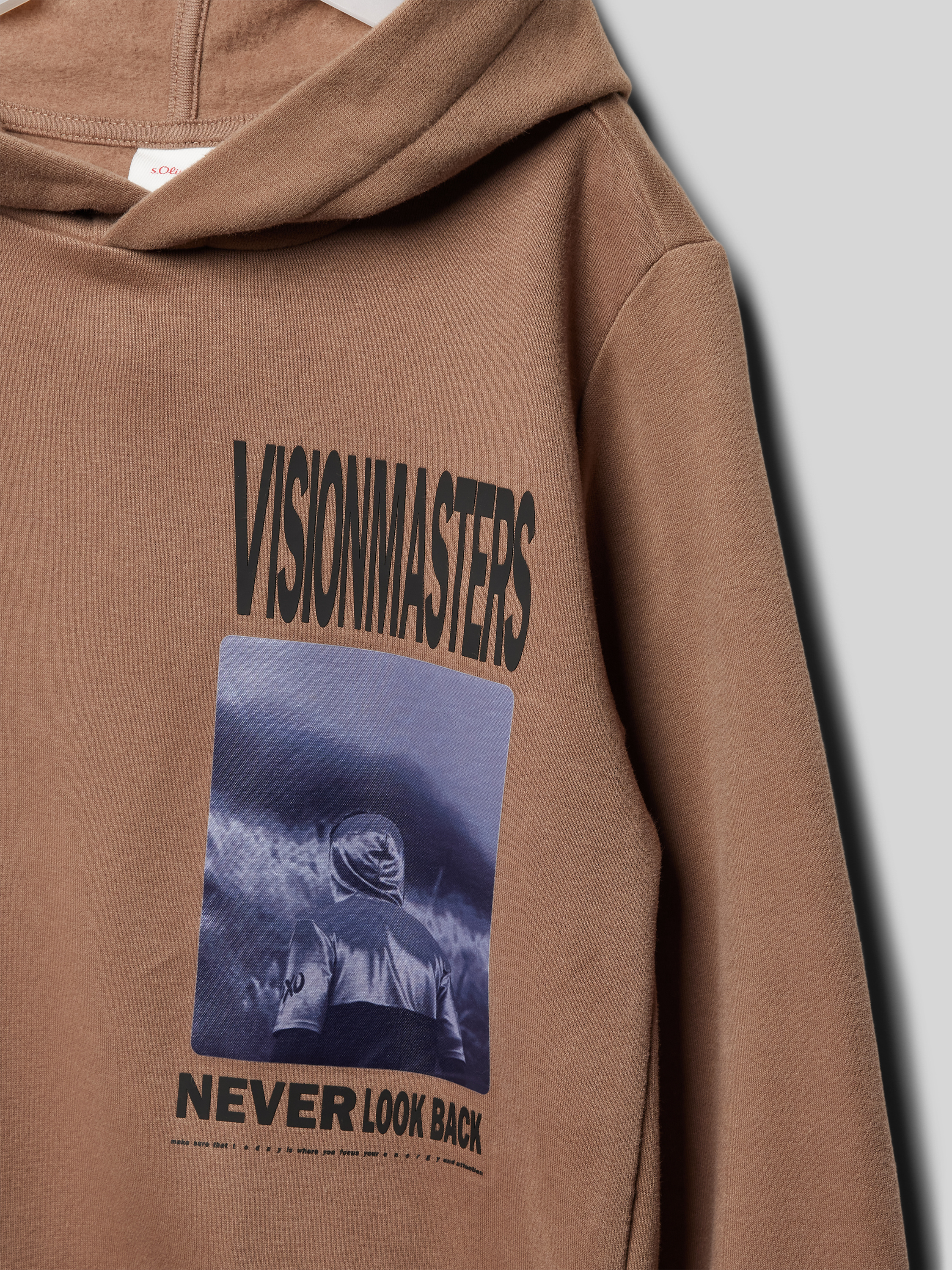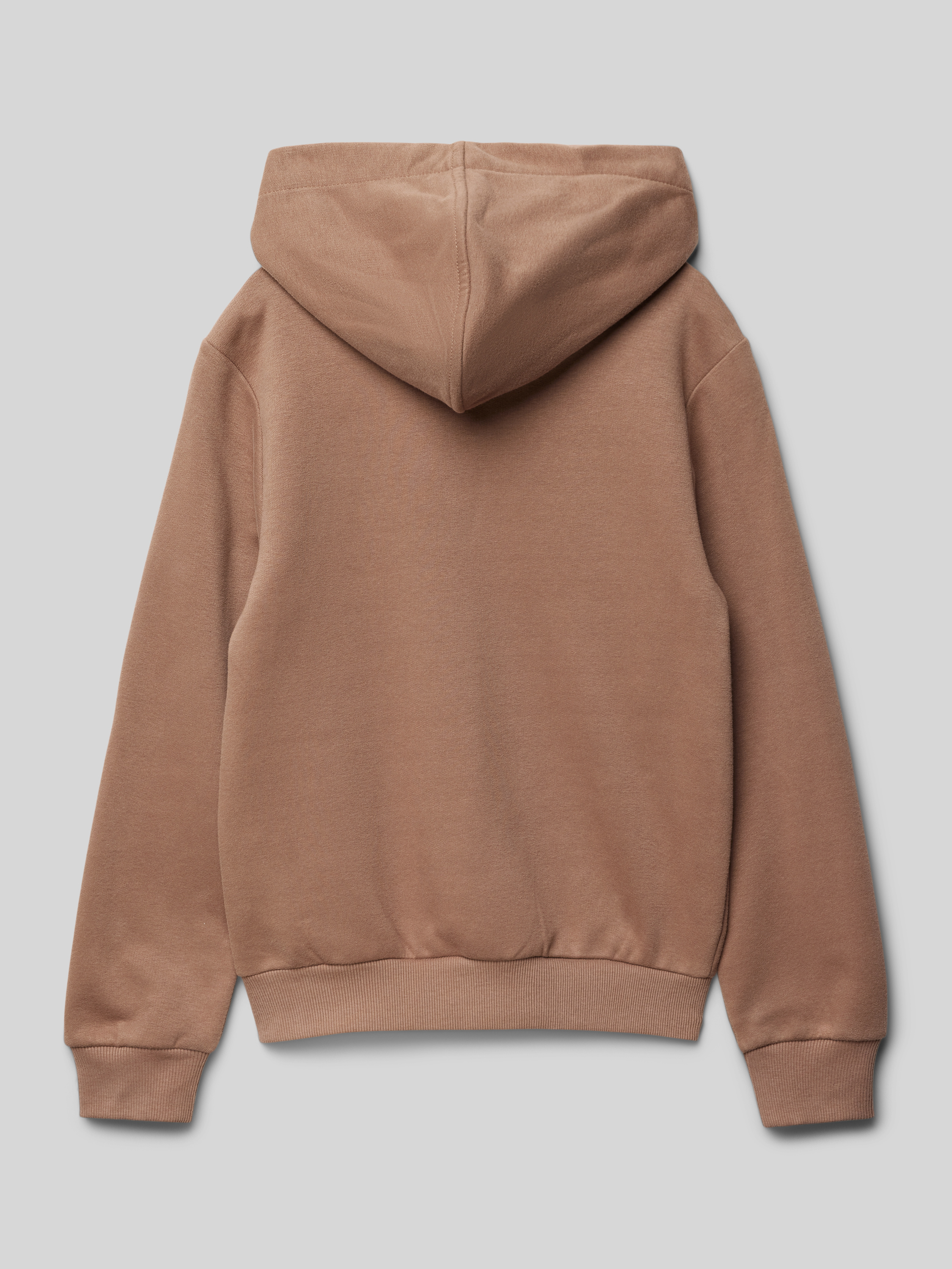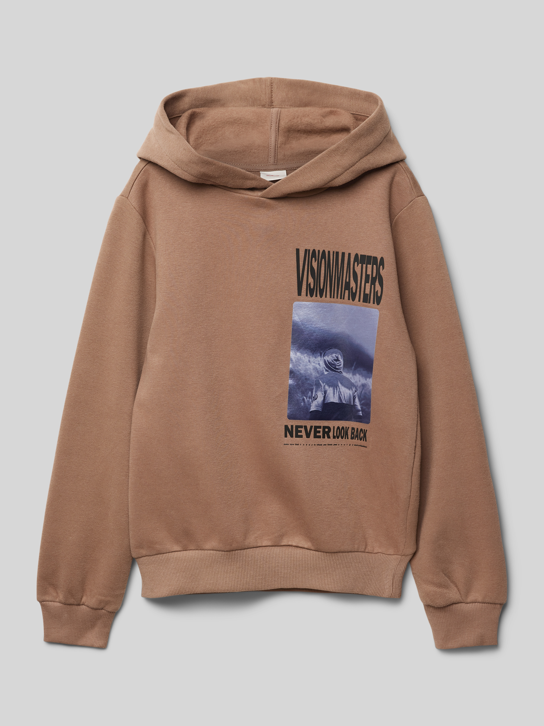 Bluza o kroju regular fit z mieszanki bawełny z kapturem i foto printem - koniakowy