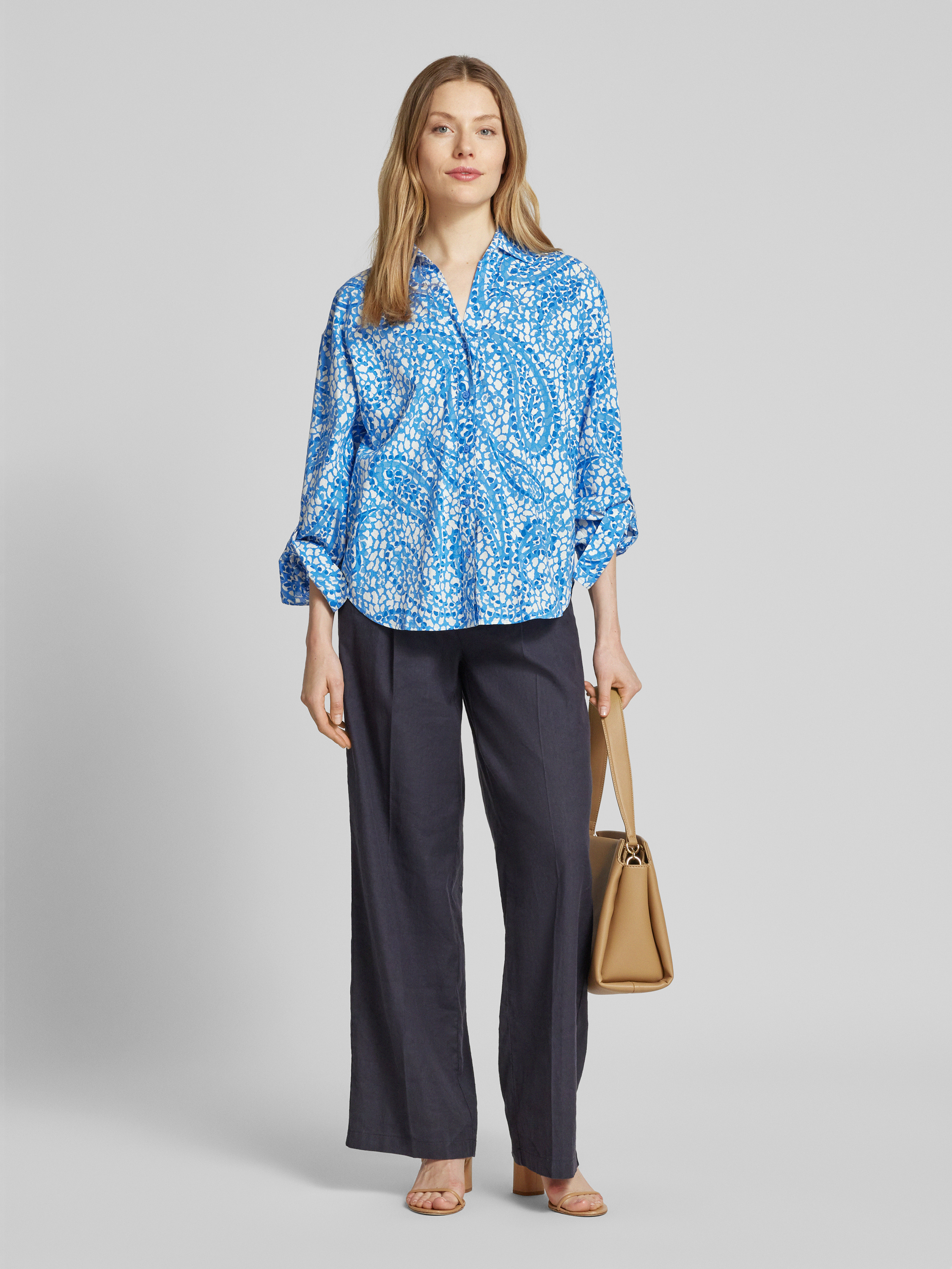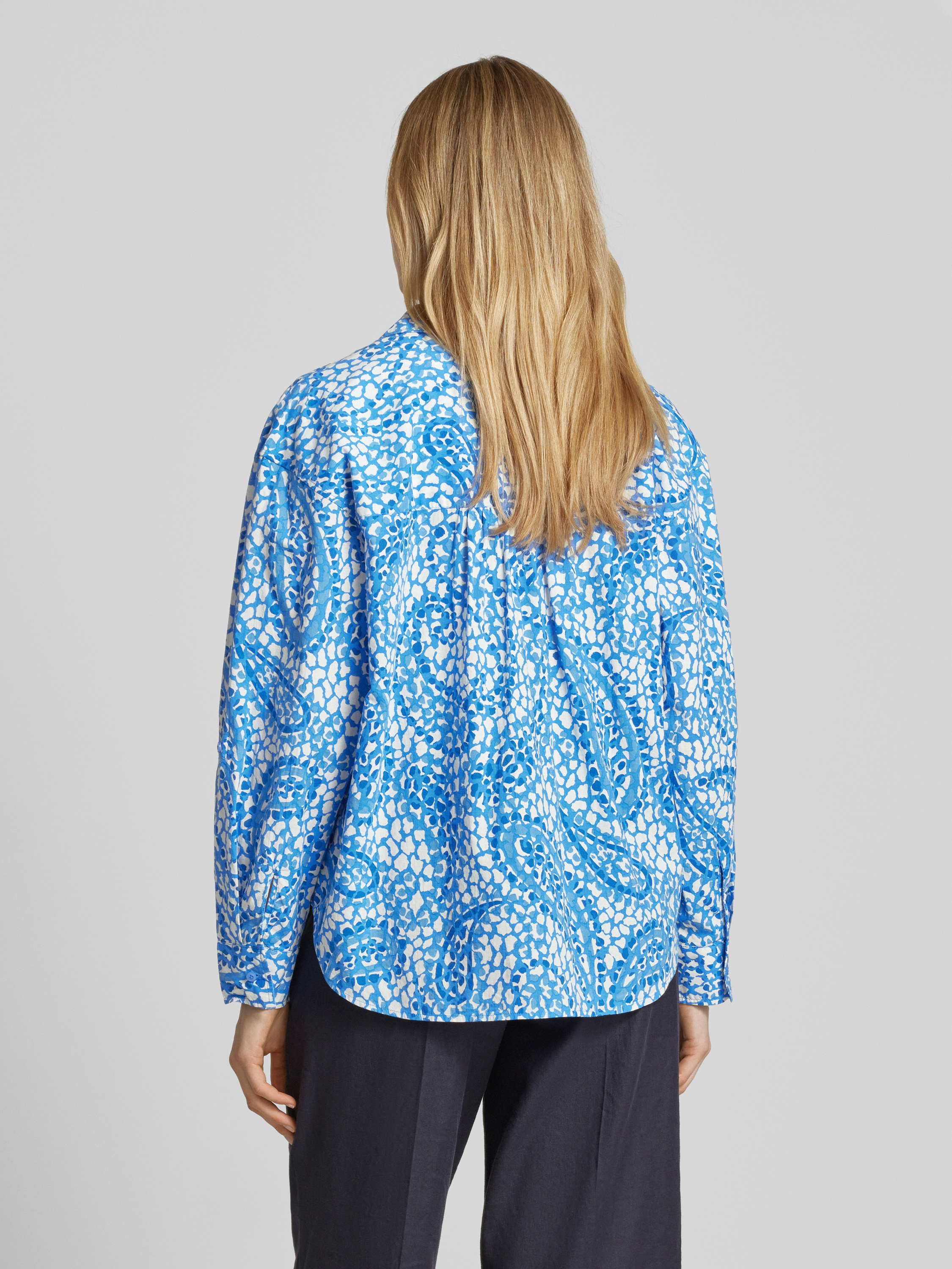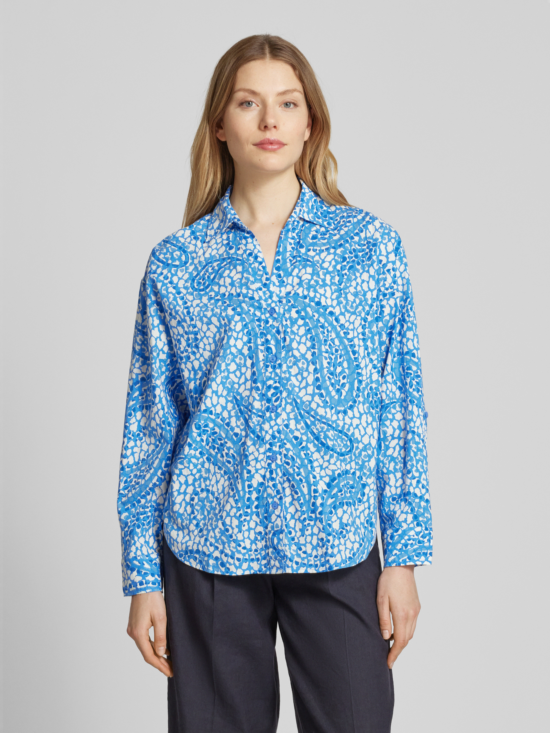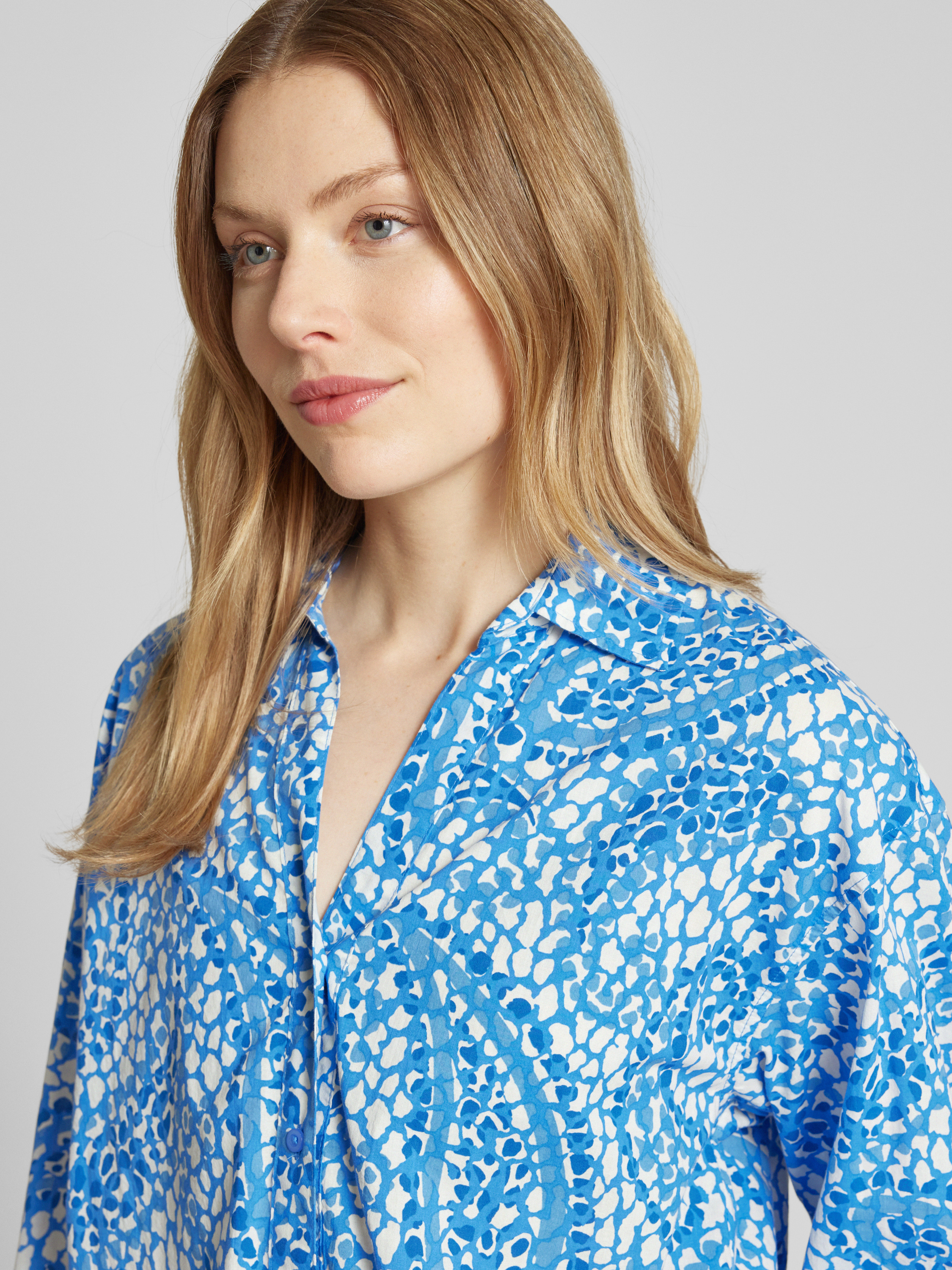 Bluzka koszulowa o kroju relaxed fit z czystej bawełny - niebieski