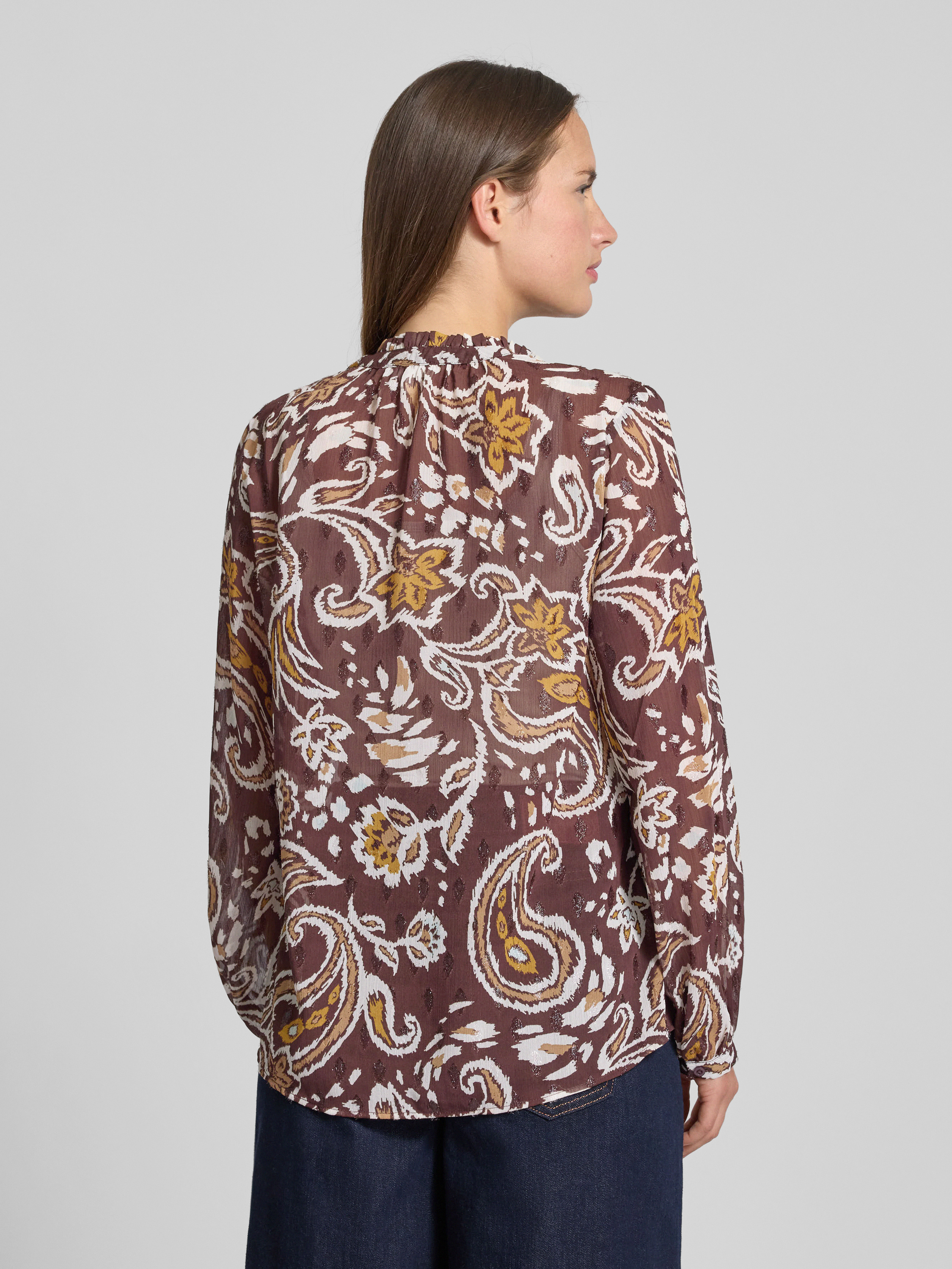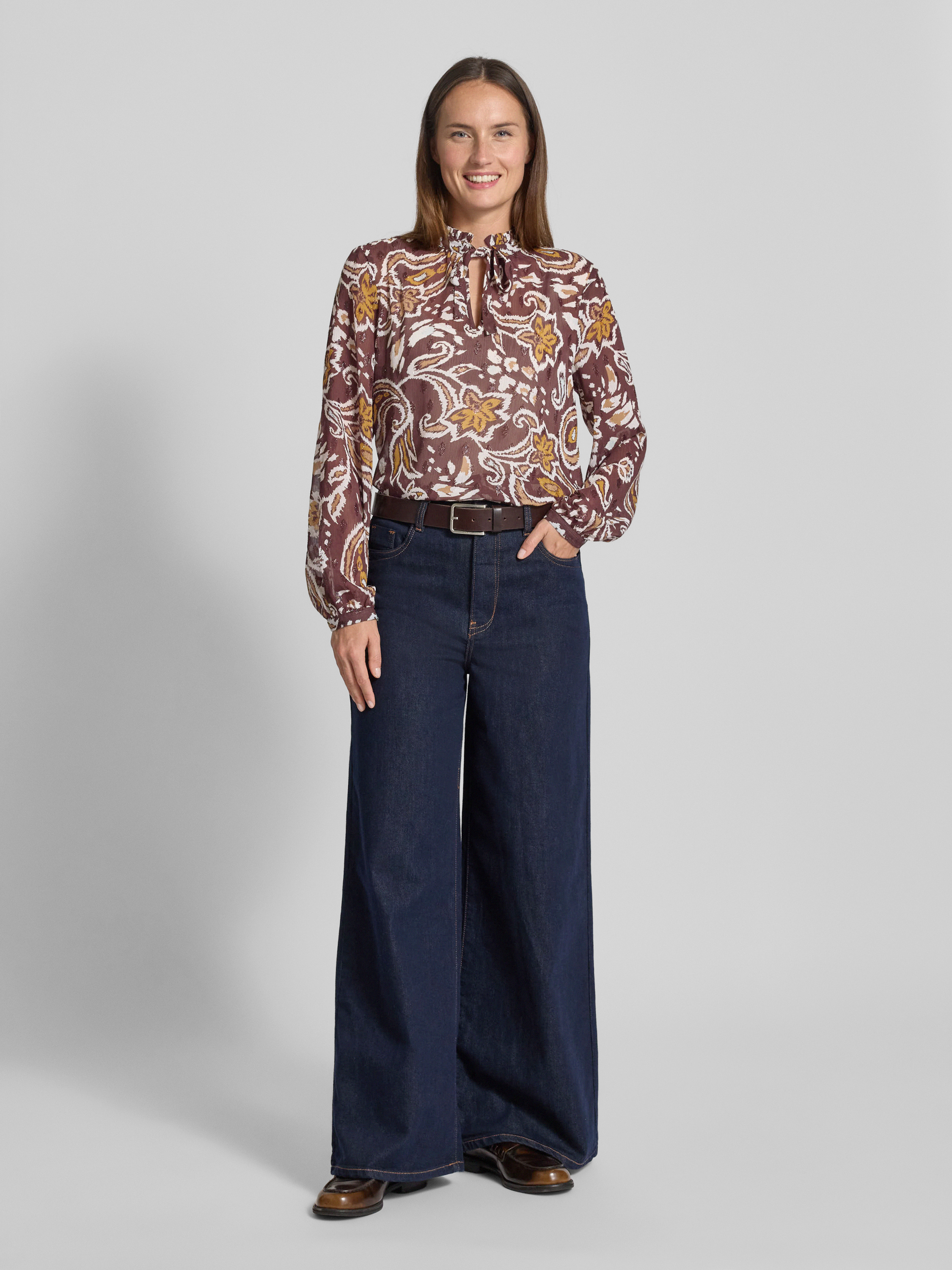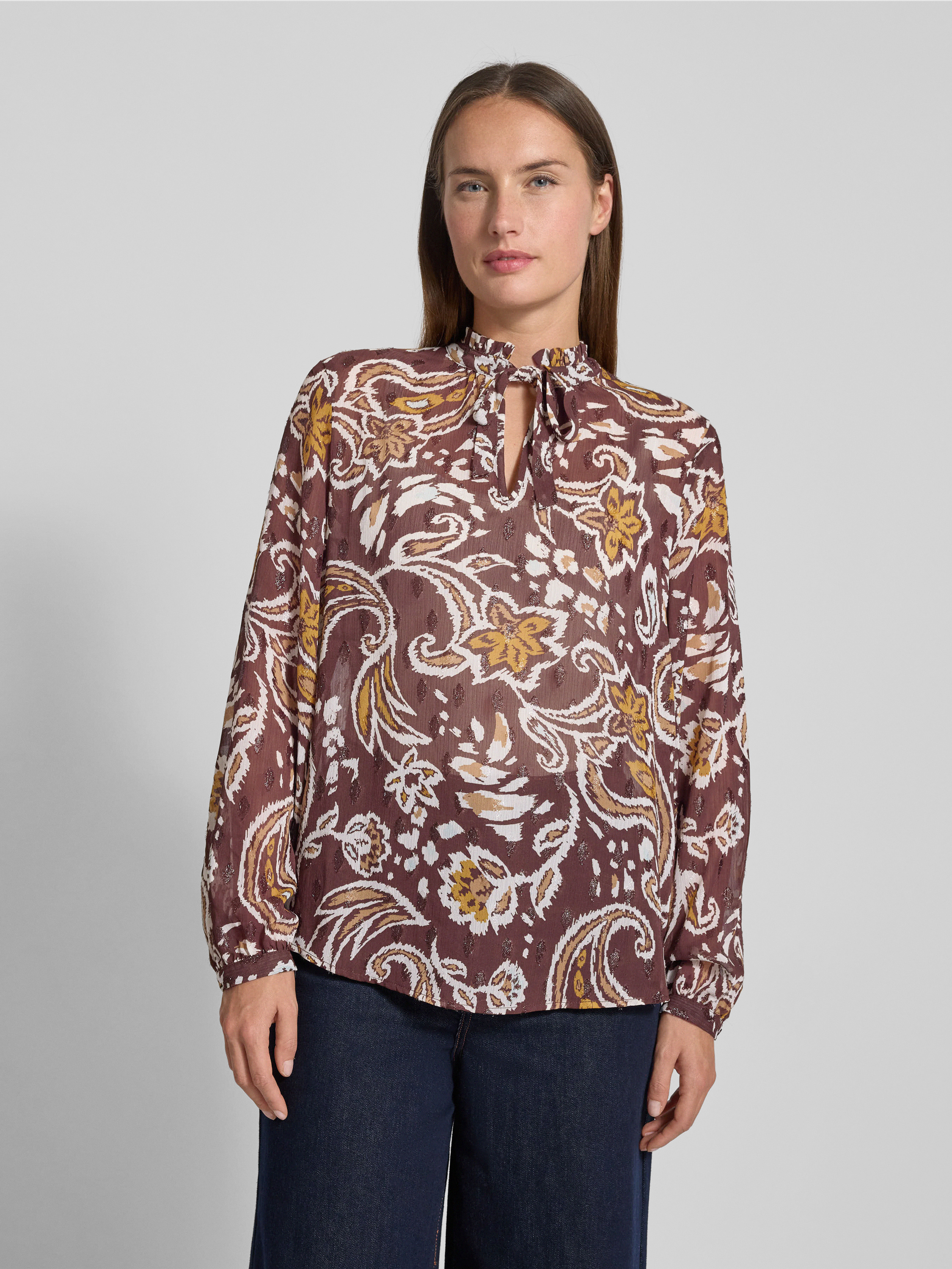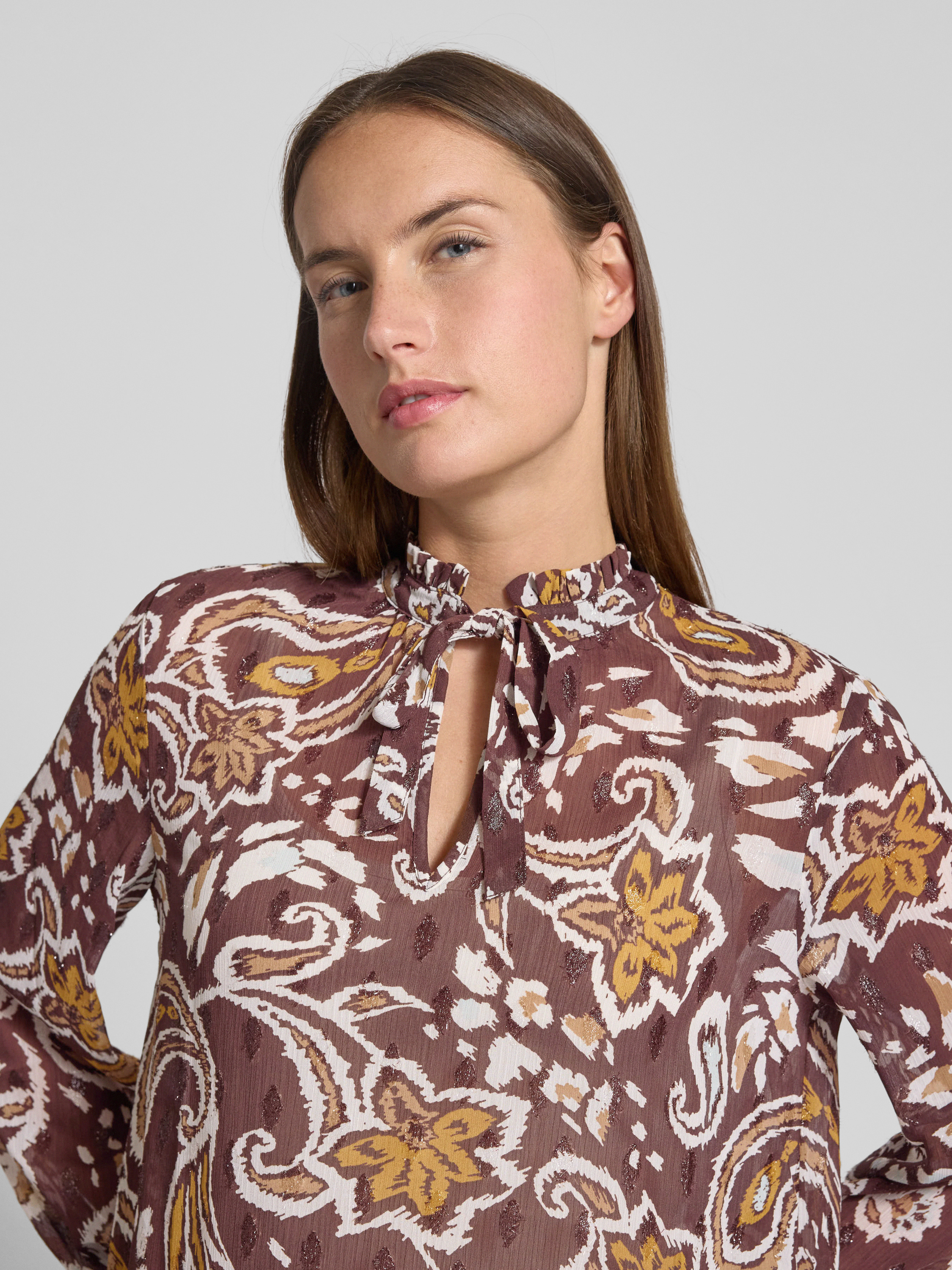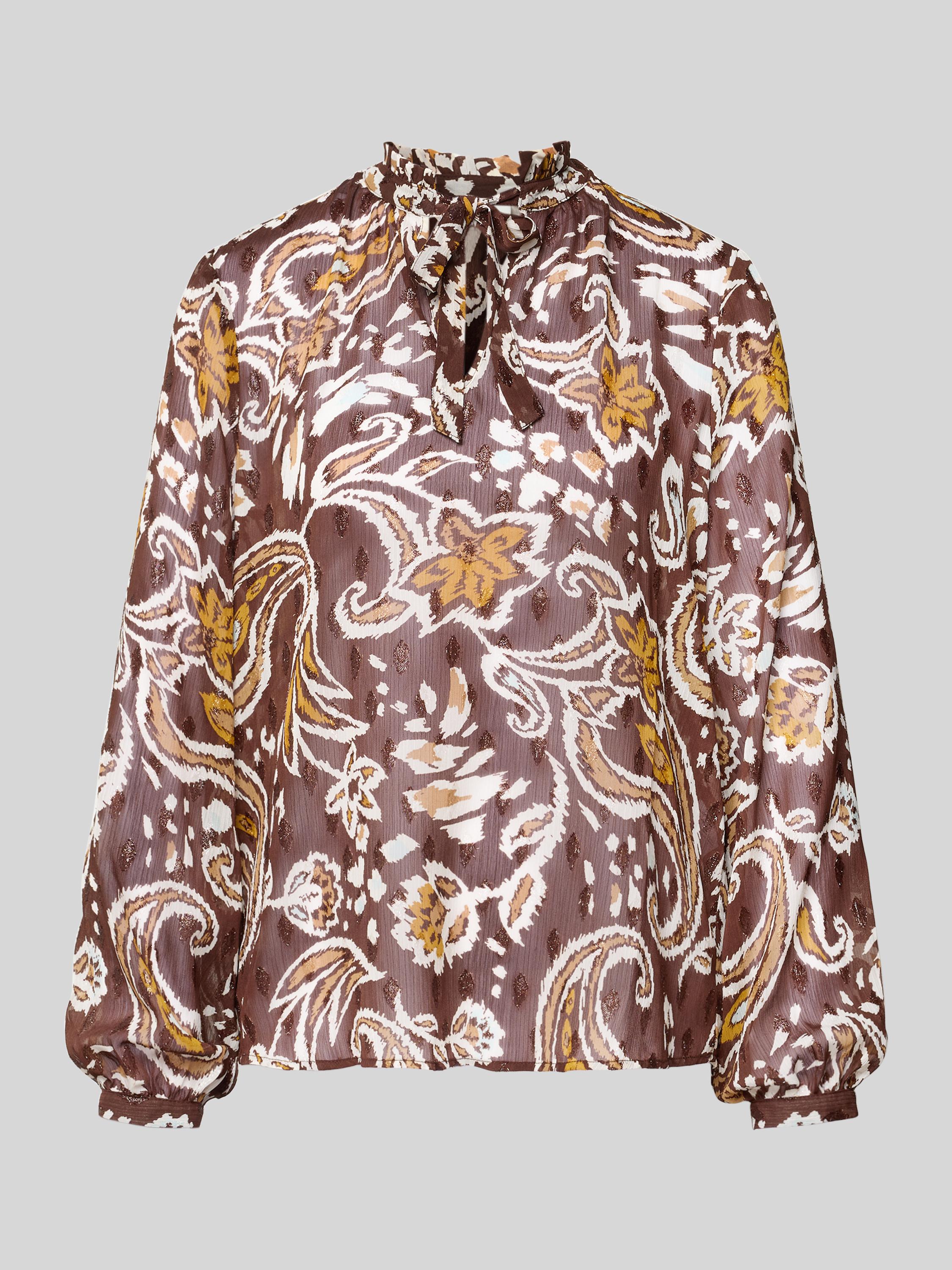 Bluzka o kroju regular fit z długim rękawem i wzorem na całej powierzchni - ciemnobrązowy