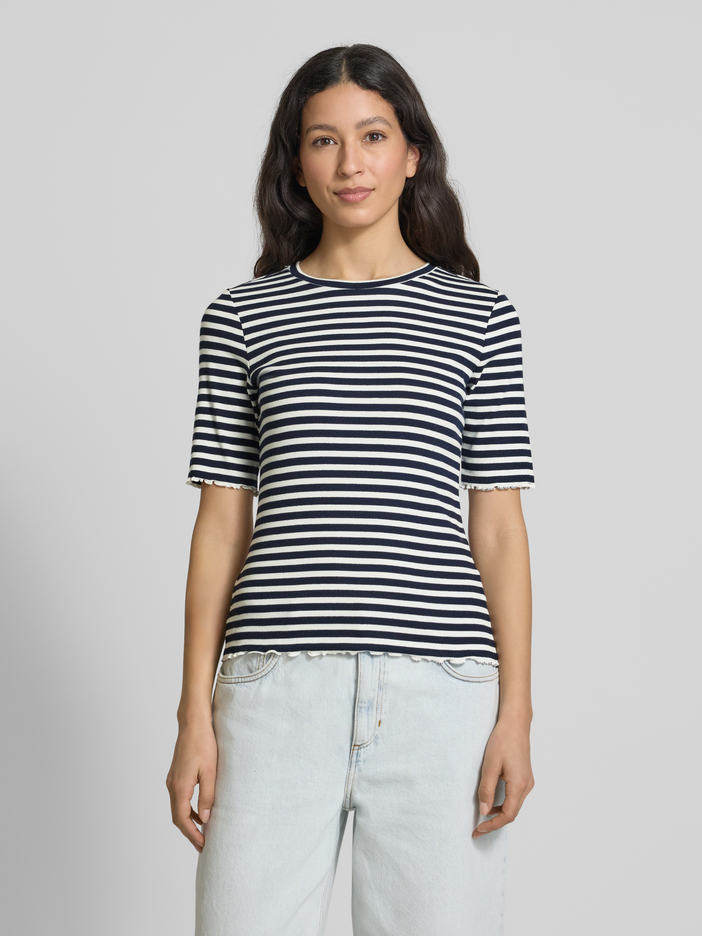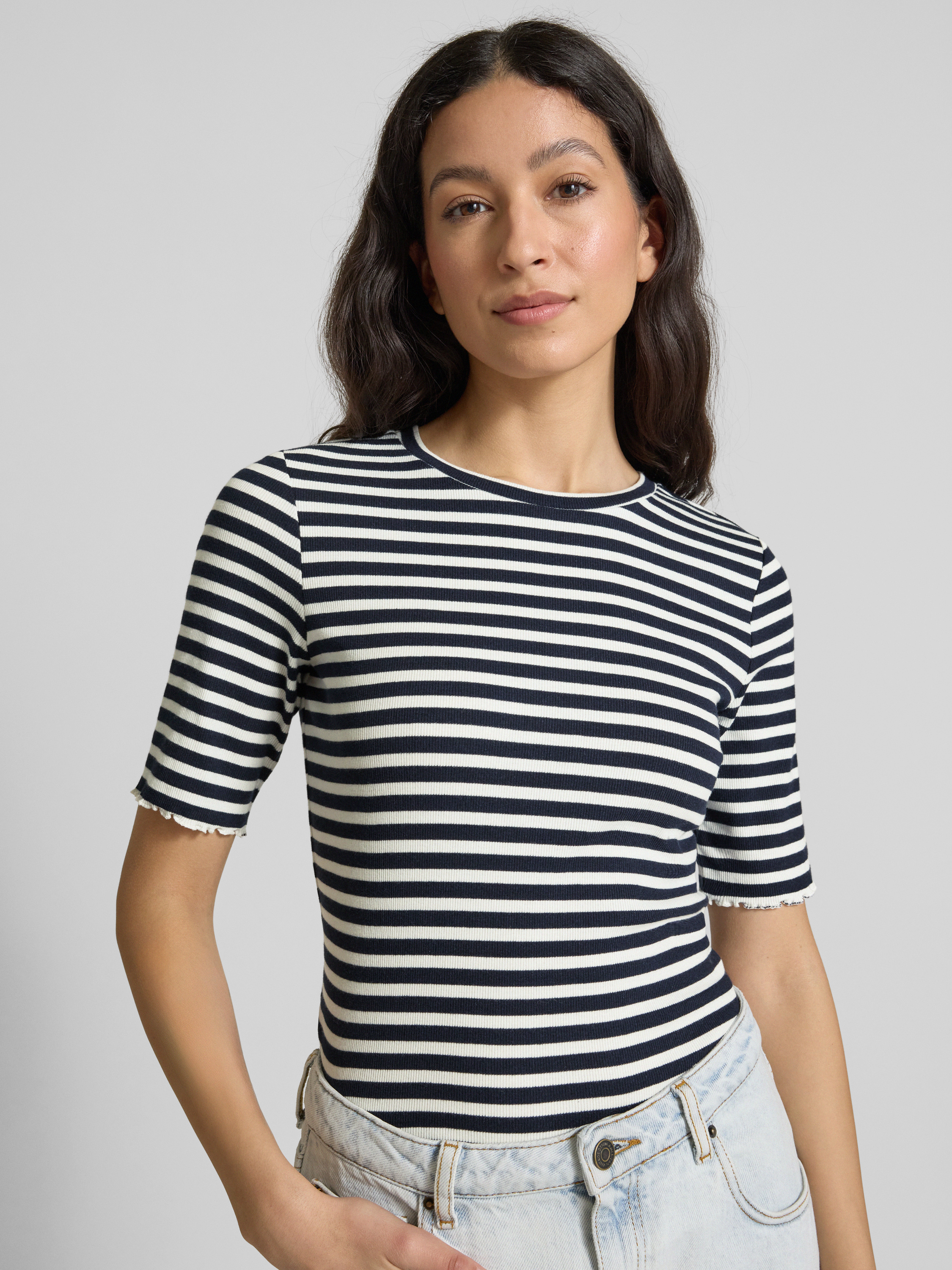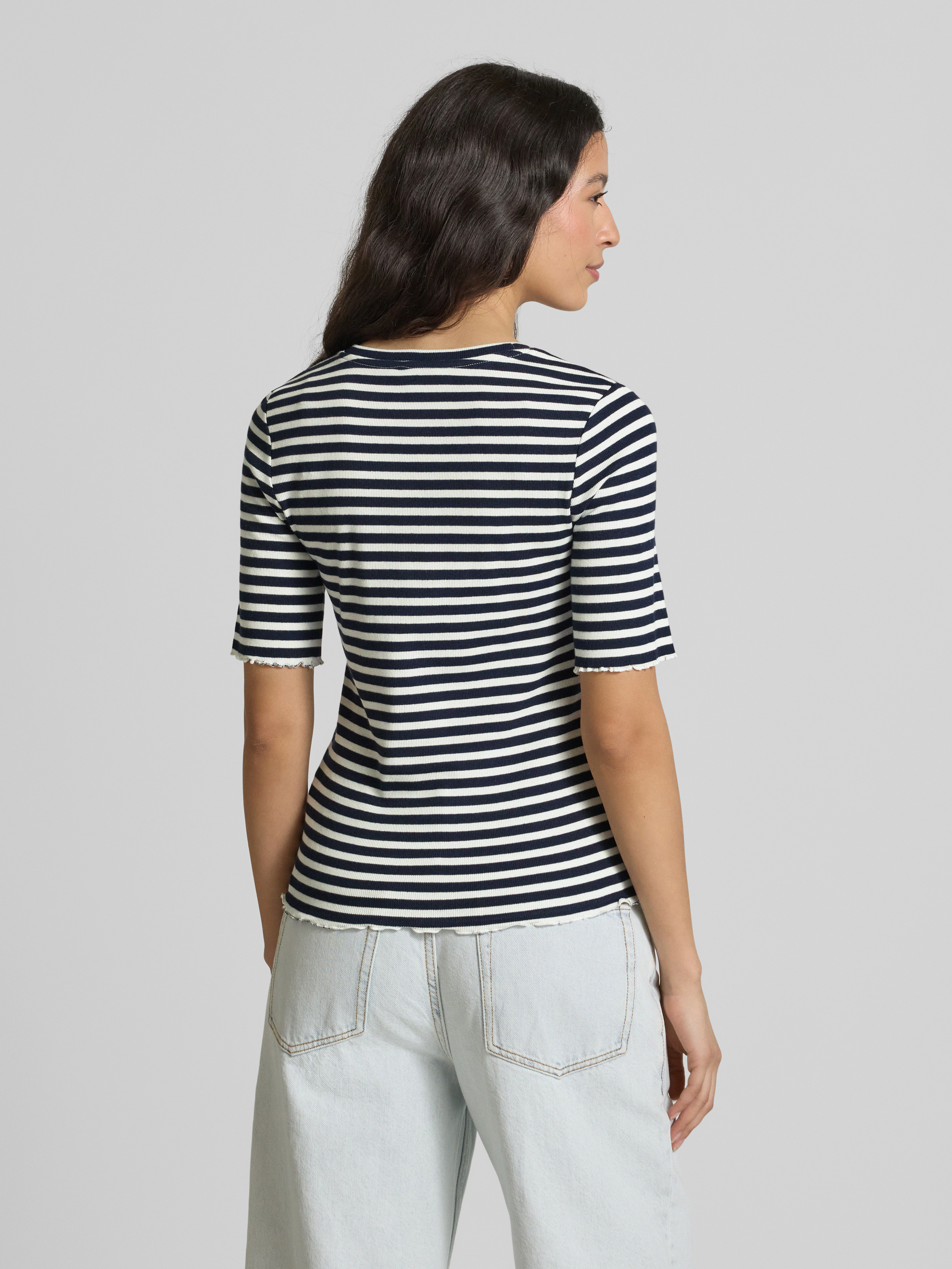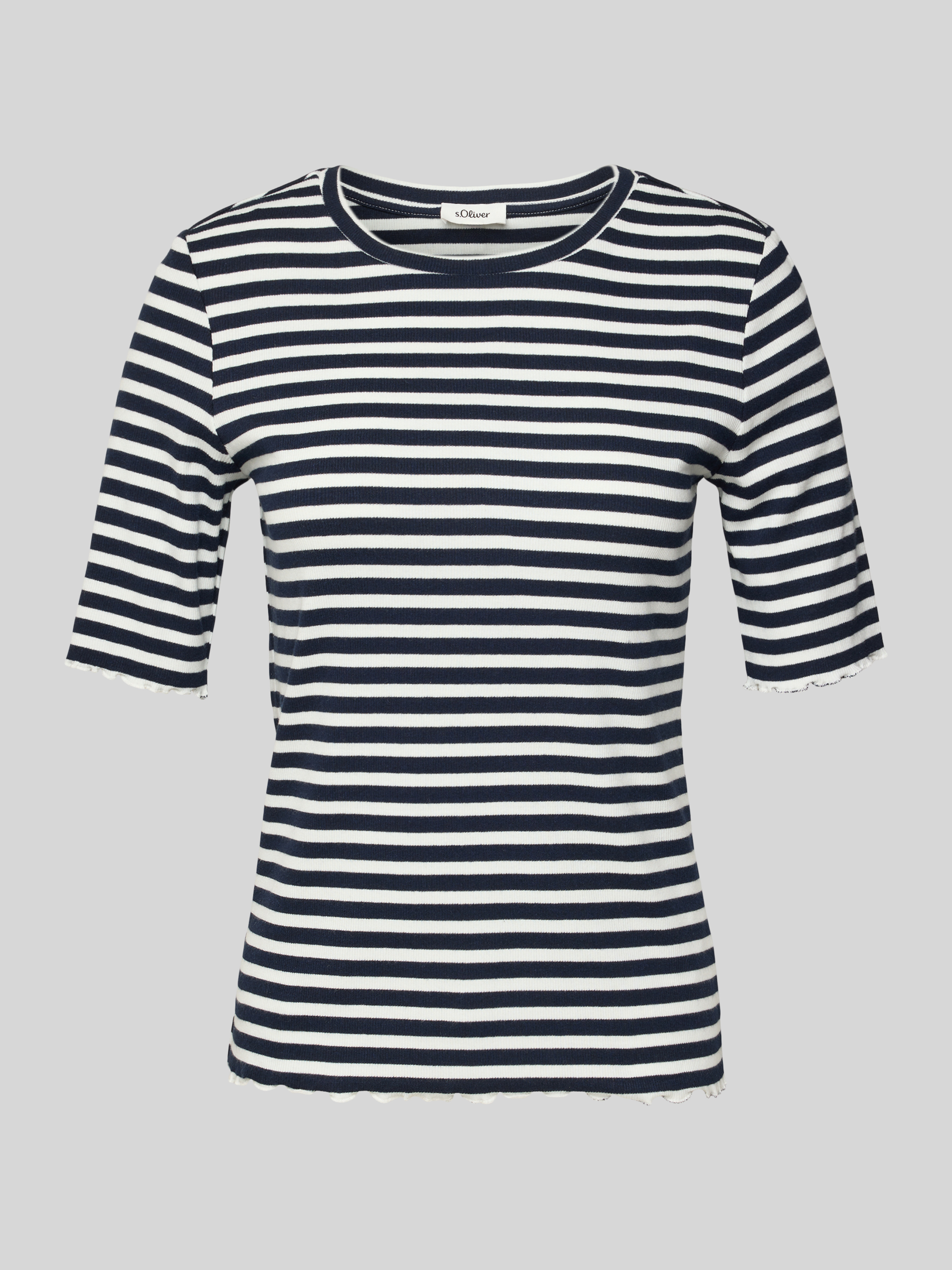Bluzka o kroju regular fit z ozdobnym dołem - granatowy