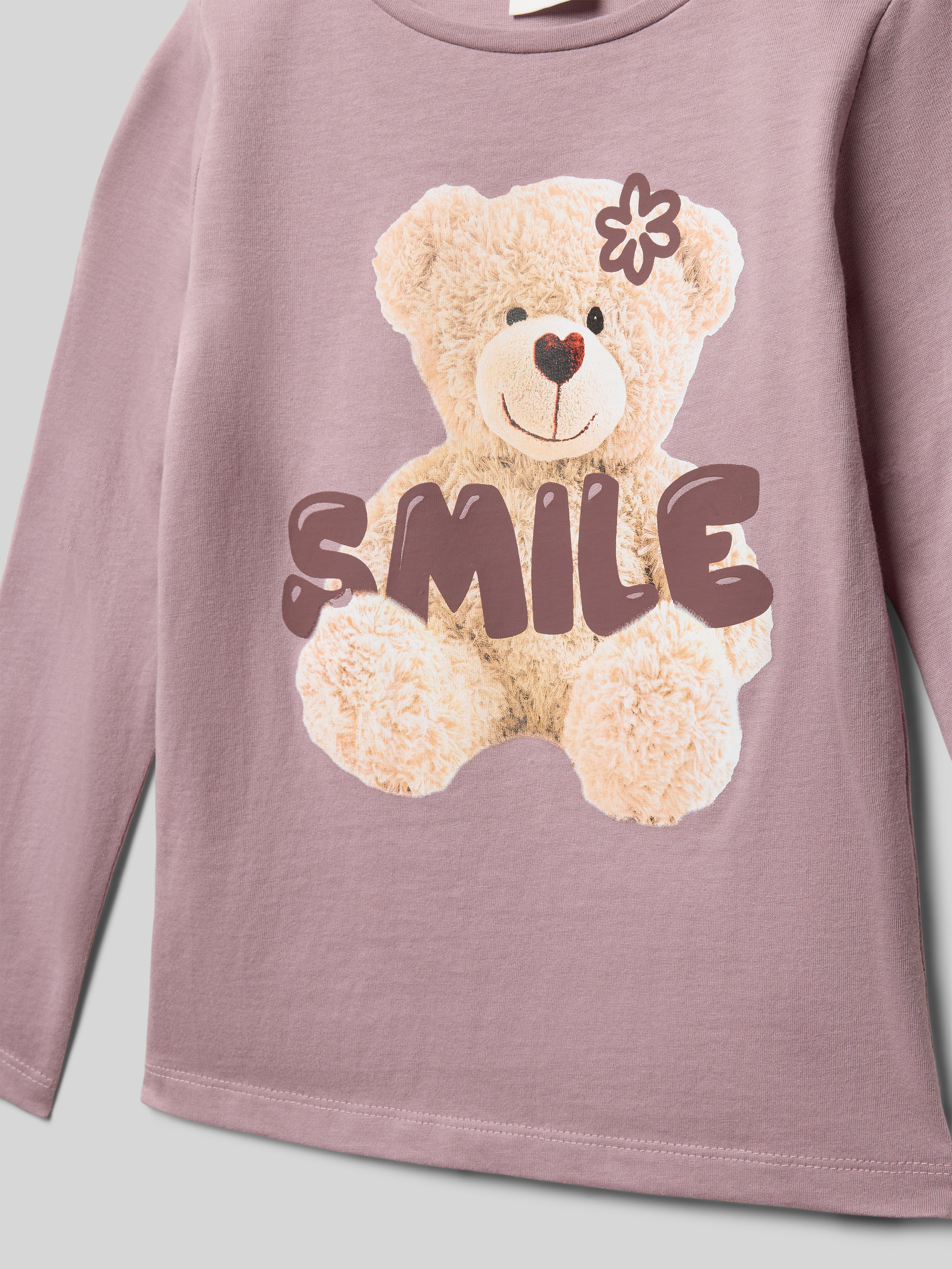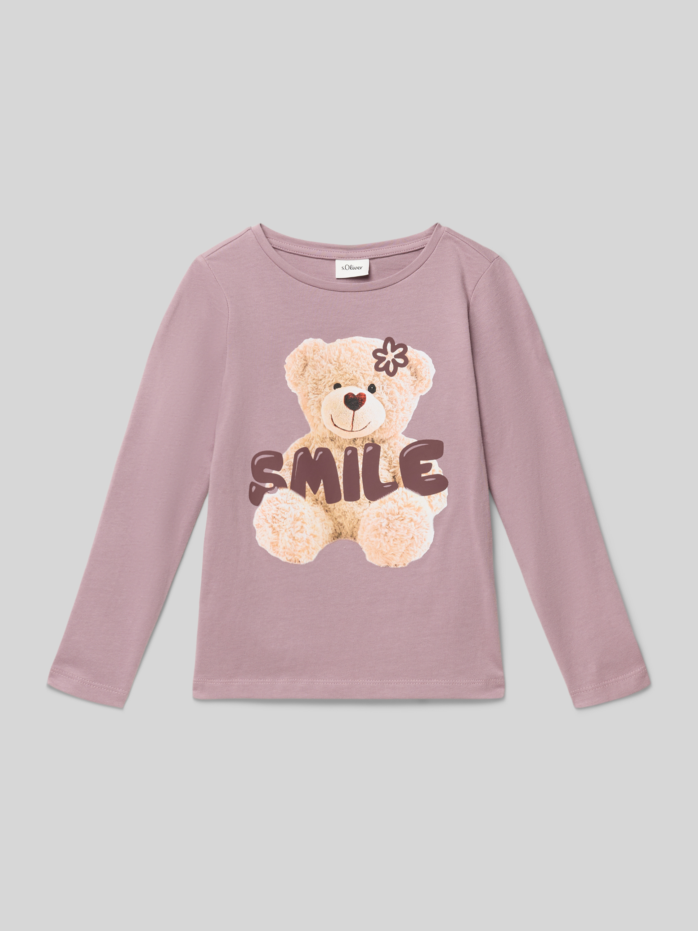 Bluzka z długim rękawem o kroju regular fit z mieszanki dżerseju i bawełny - fiołkoworóżowy