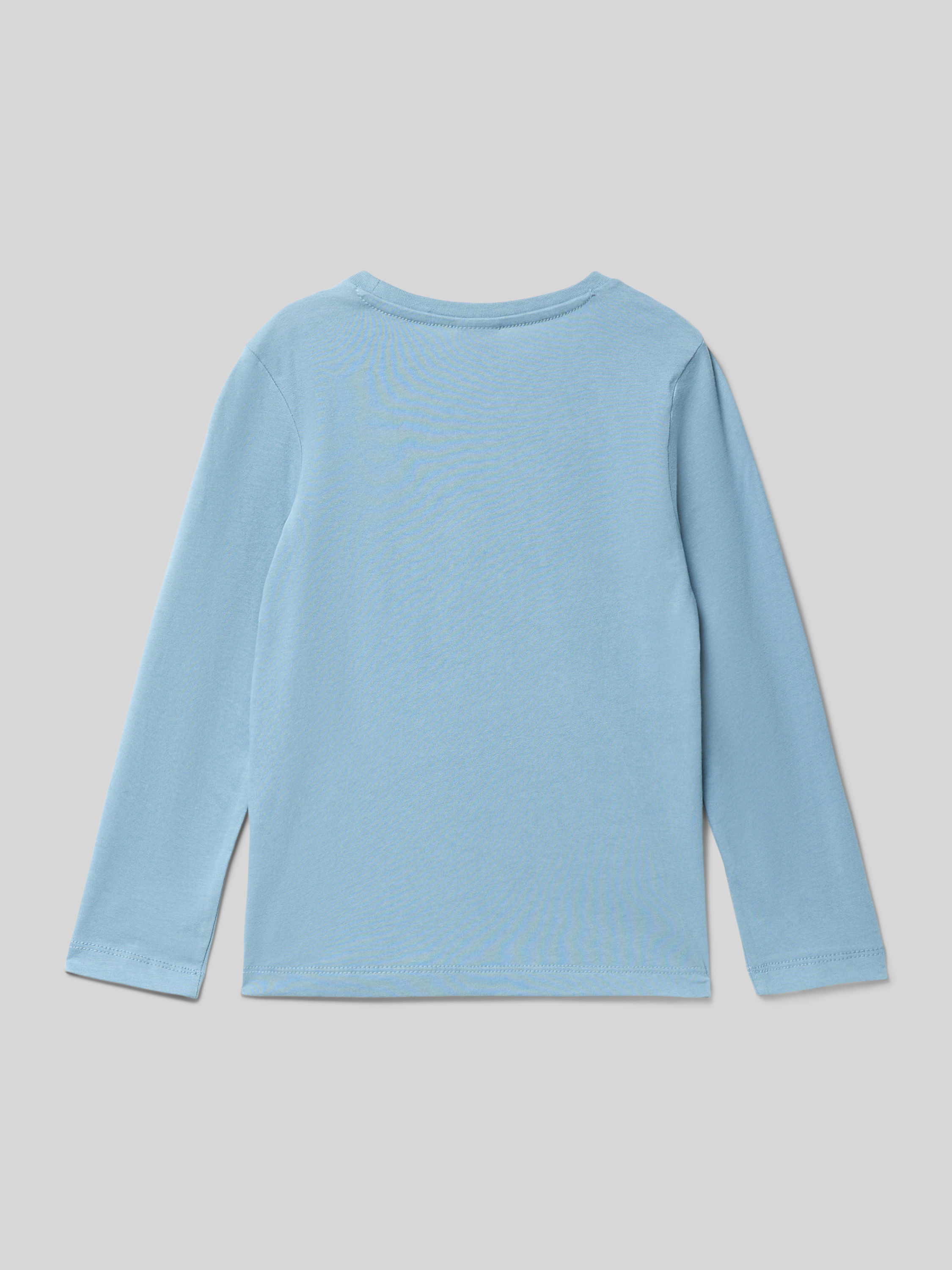 Bluzka z długim rękawem o kroju regular fit z mieszanki dżerseju i bawełny - szaroniebieski
