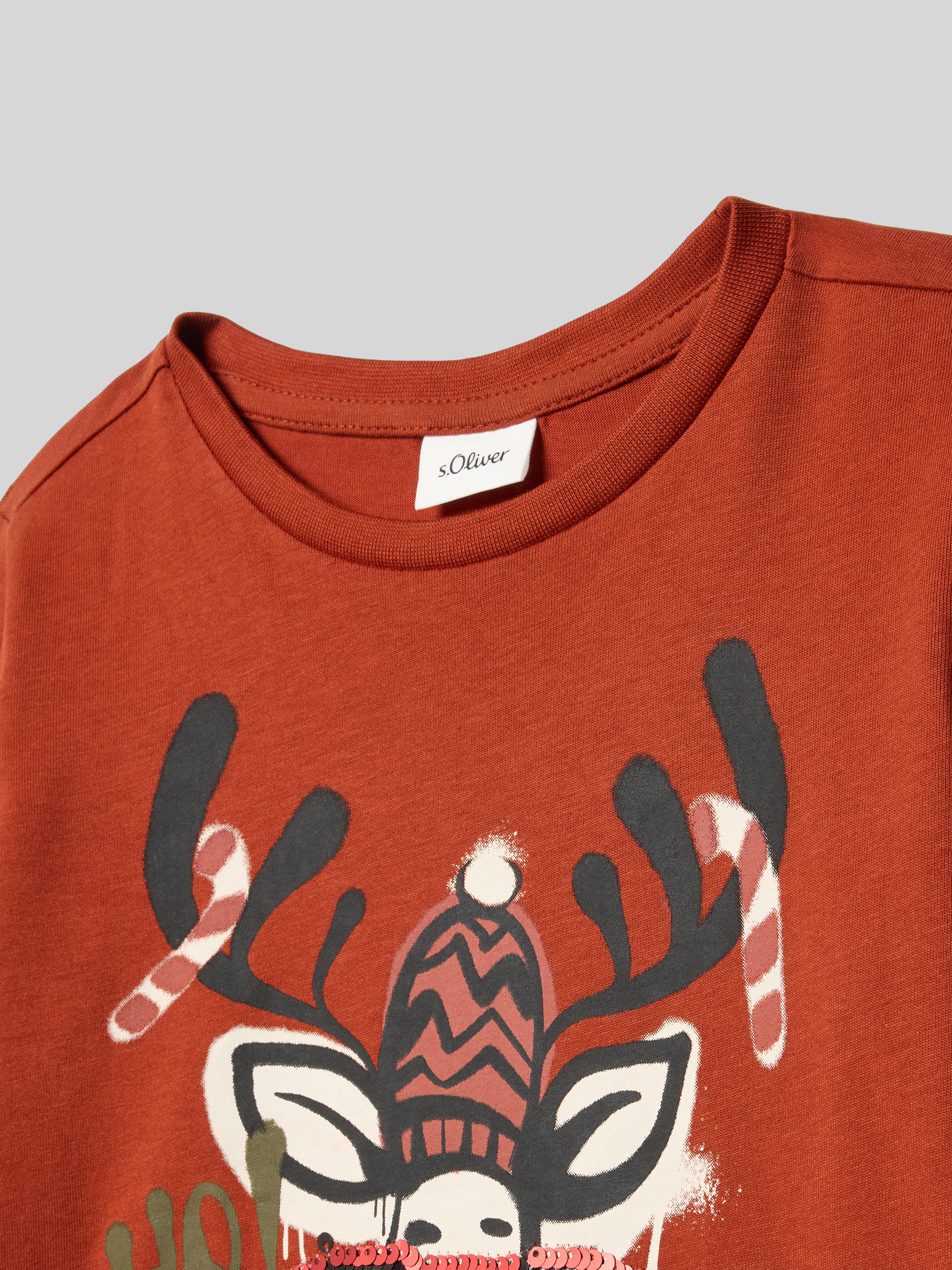 Bluzka z długim rękawem o kroju regular fit z mieszanki dżerseju i bawełny - terakotowy