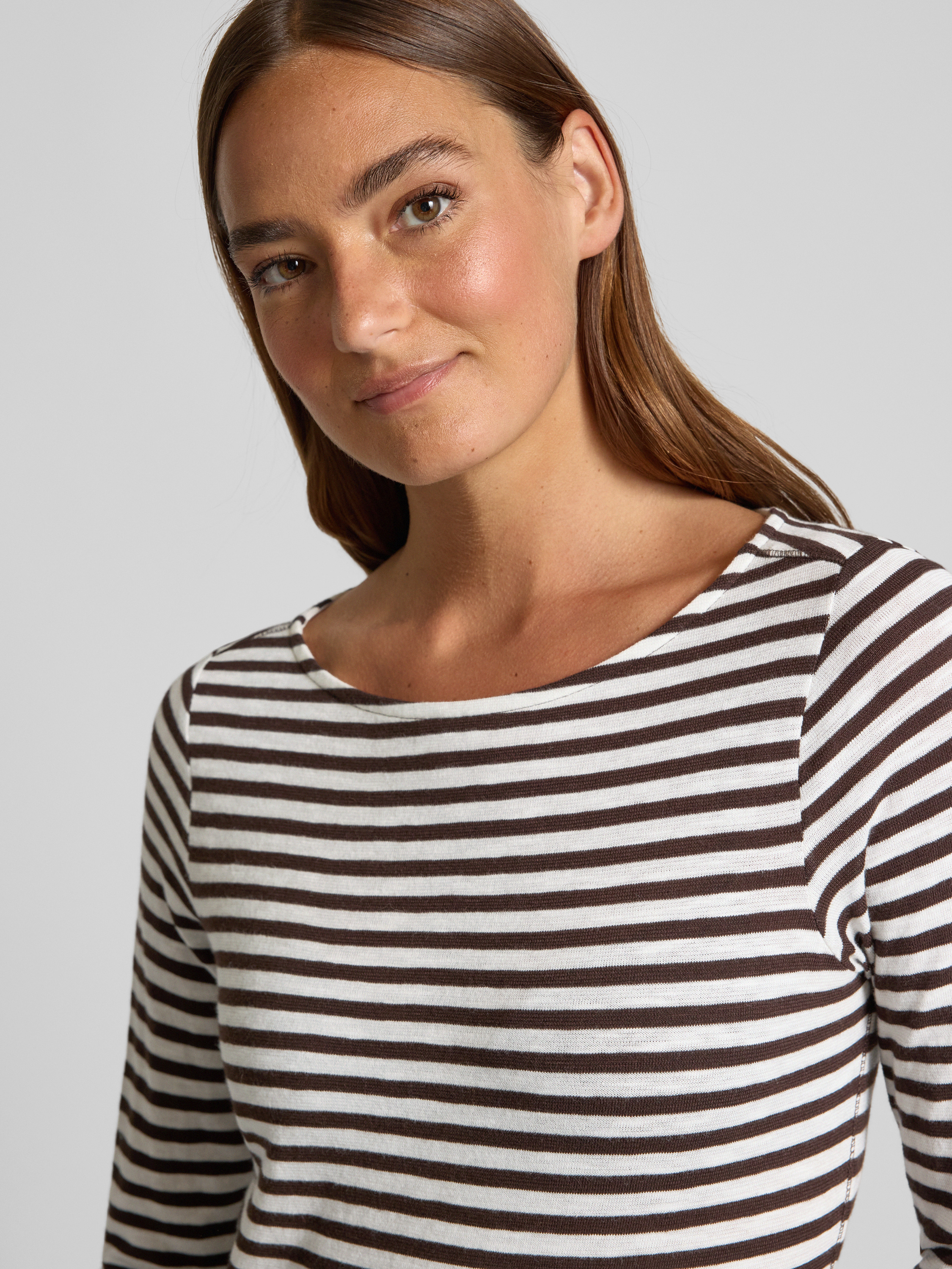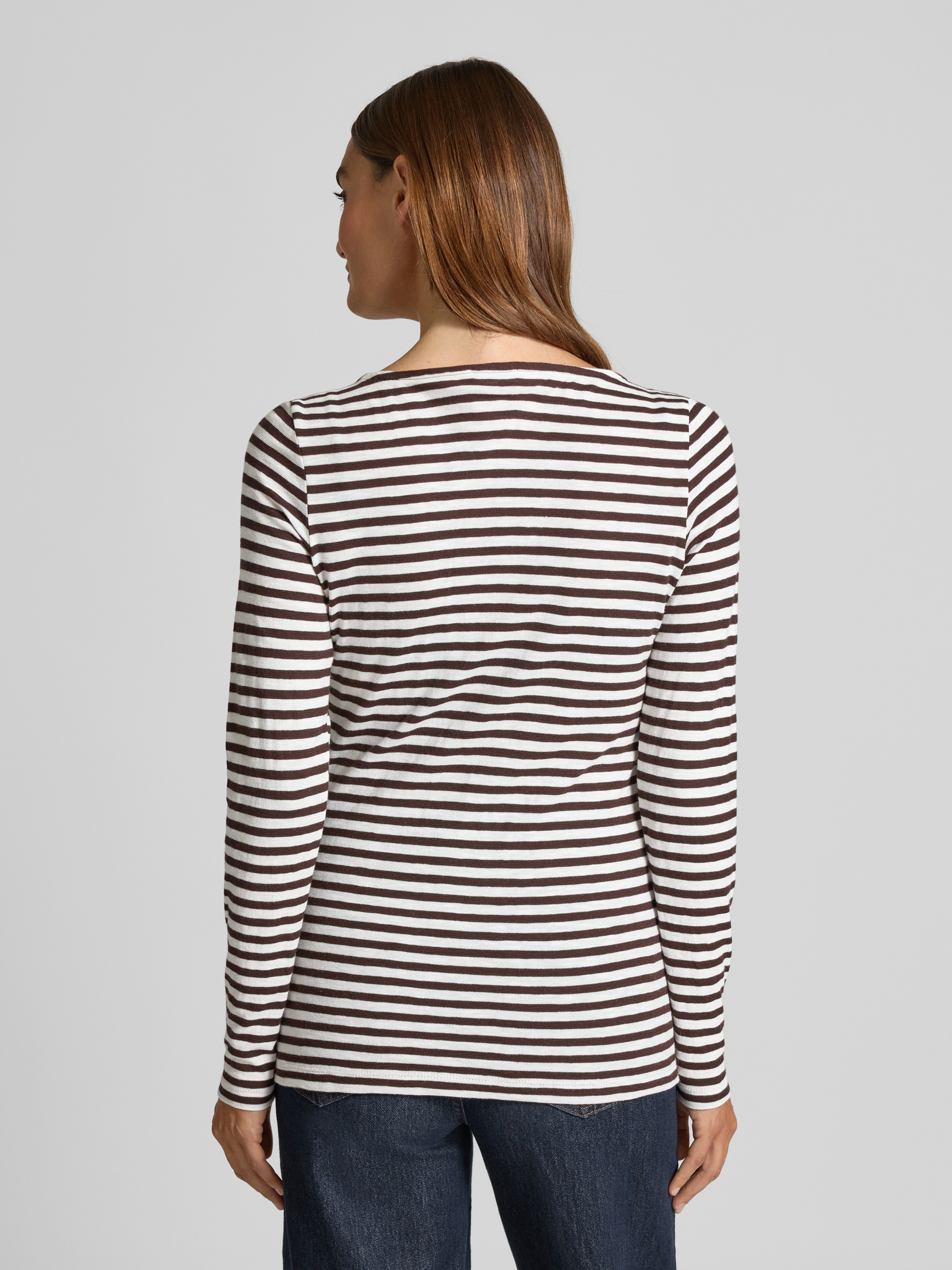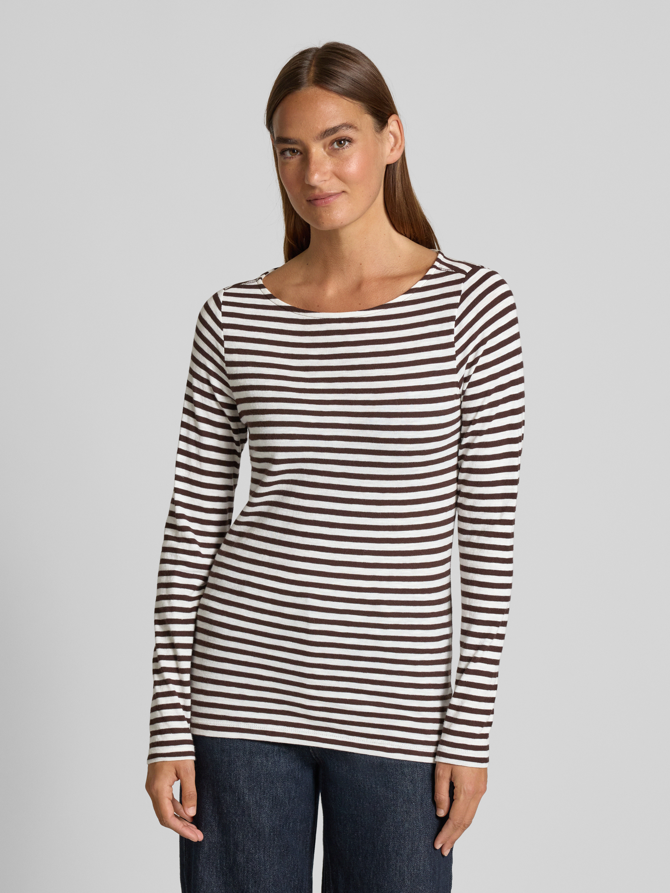 Bluzka z długim rękawem o kroju slim z czystej bawełny - ciemnobrązowy