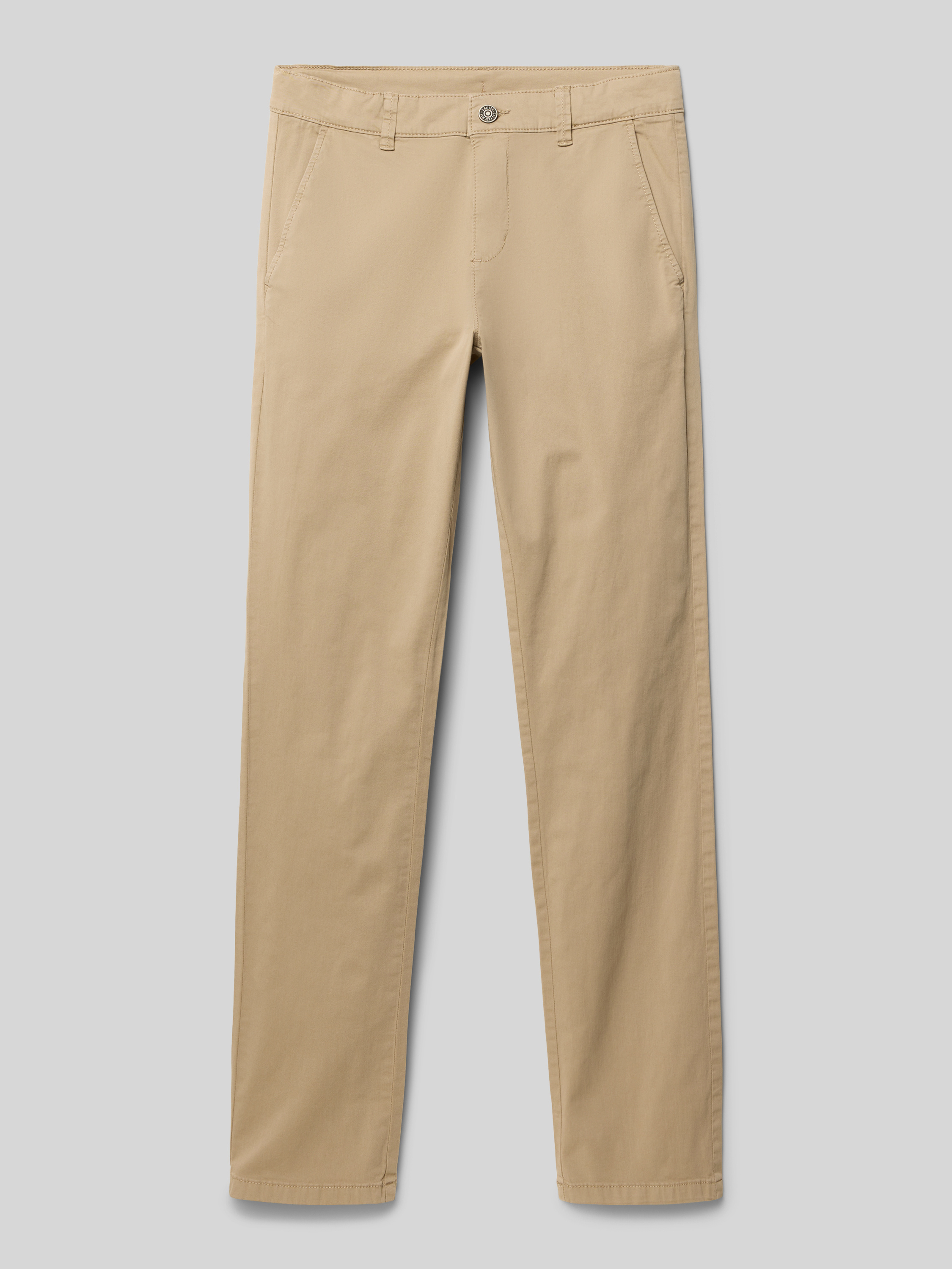 Chinosy o kroju regular fit z mieszanki bawełny - camel